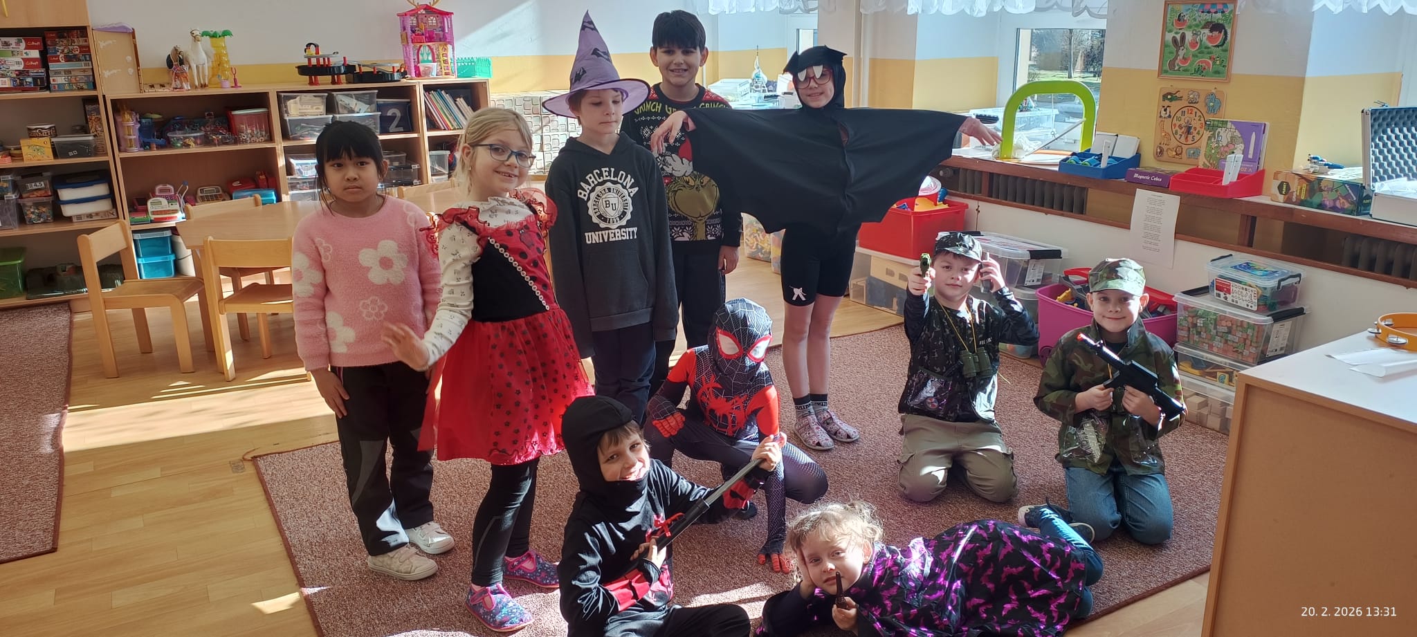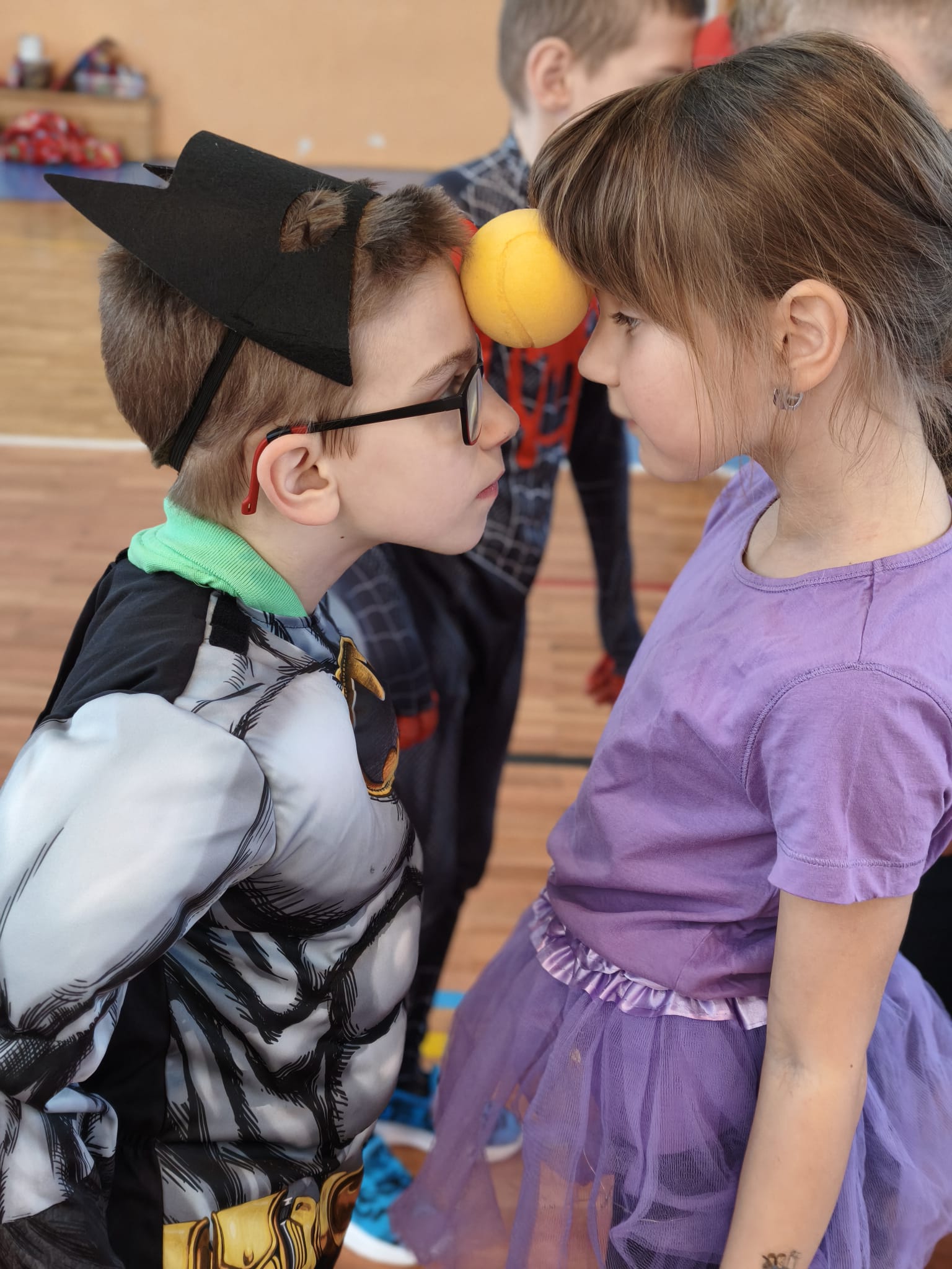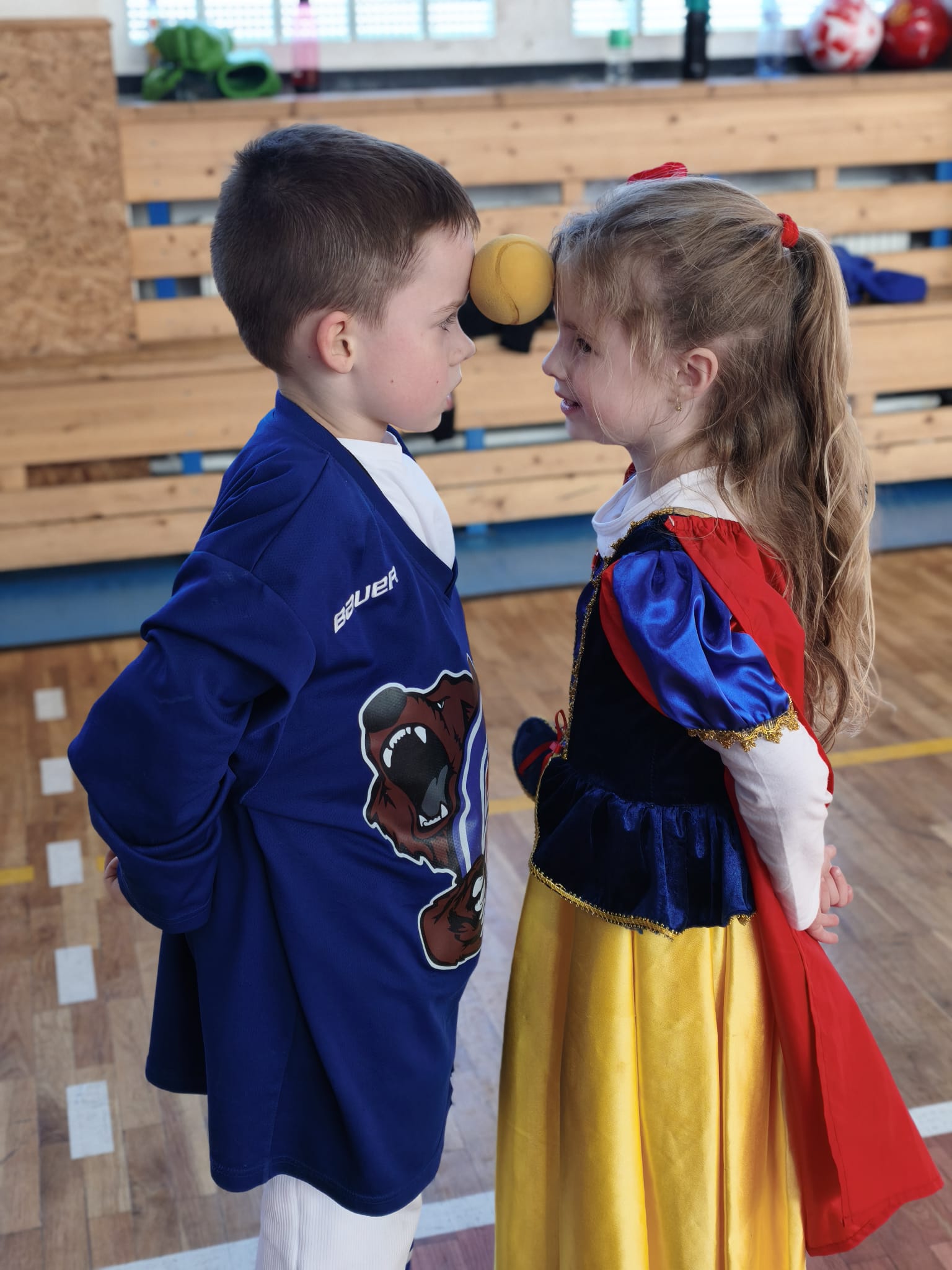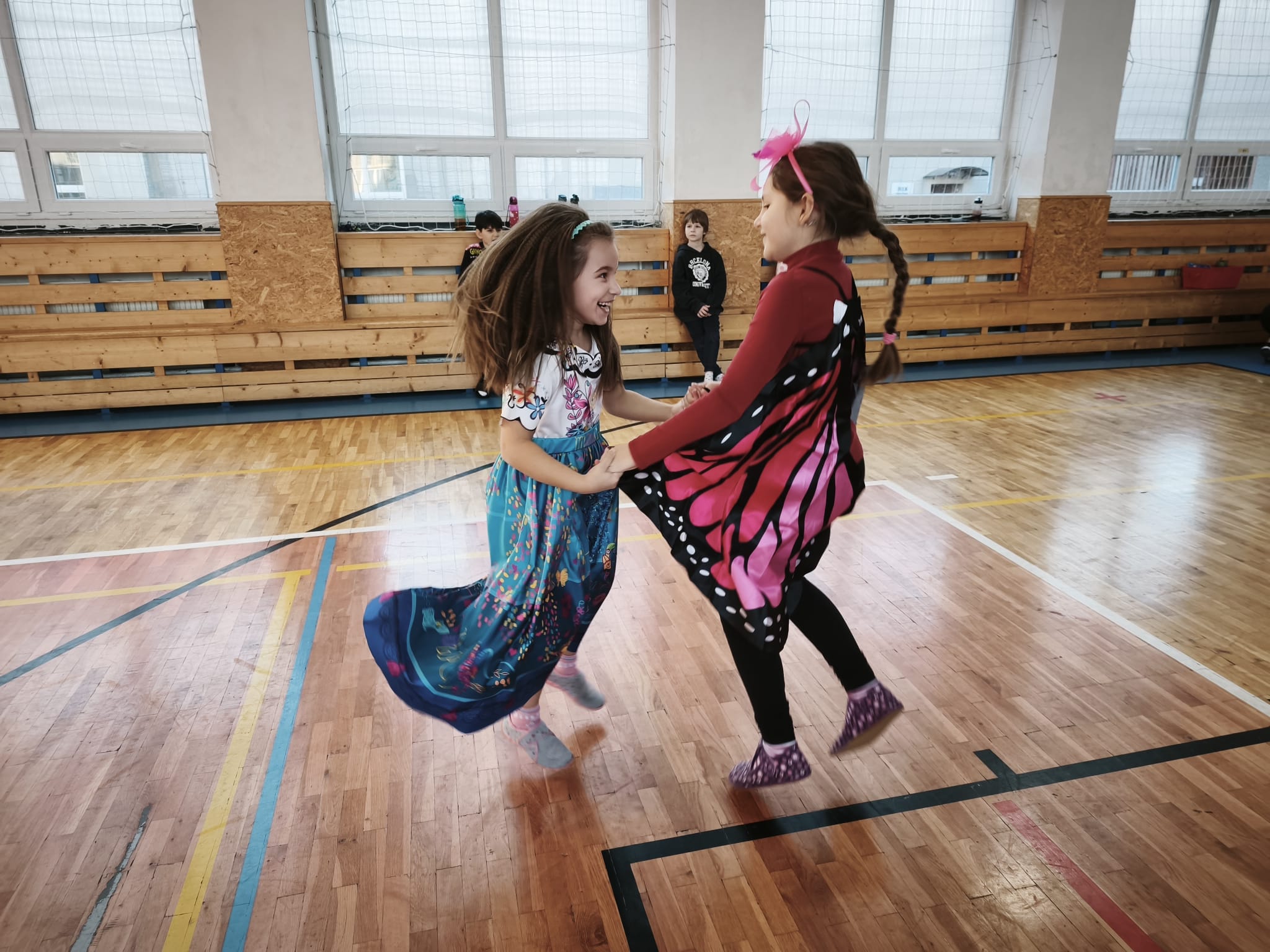 Školní tělocvična se proměnila v taneční sál plný pohádkových bytostí, zvířat, sportovců, princezen, víl, superhrdinů.