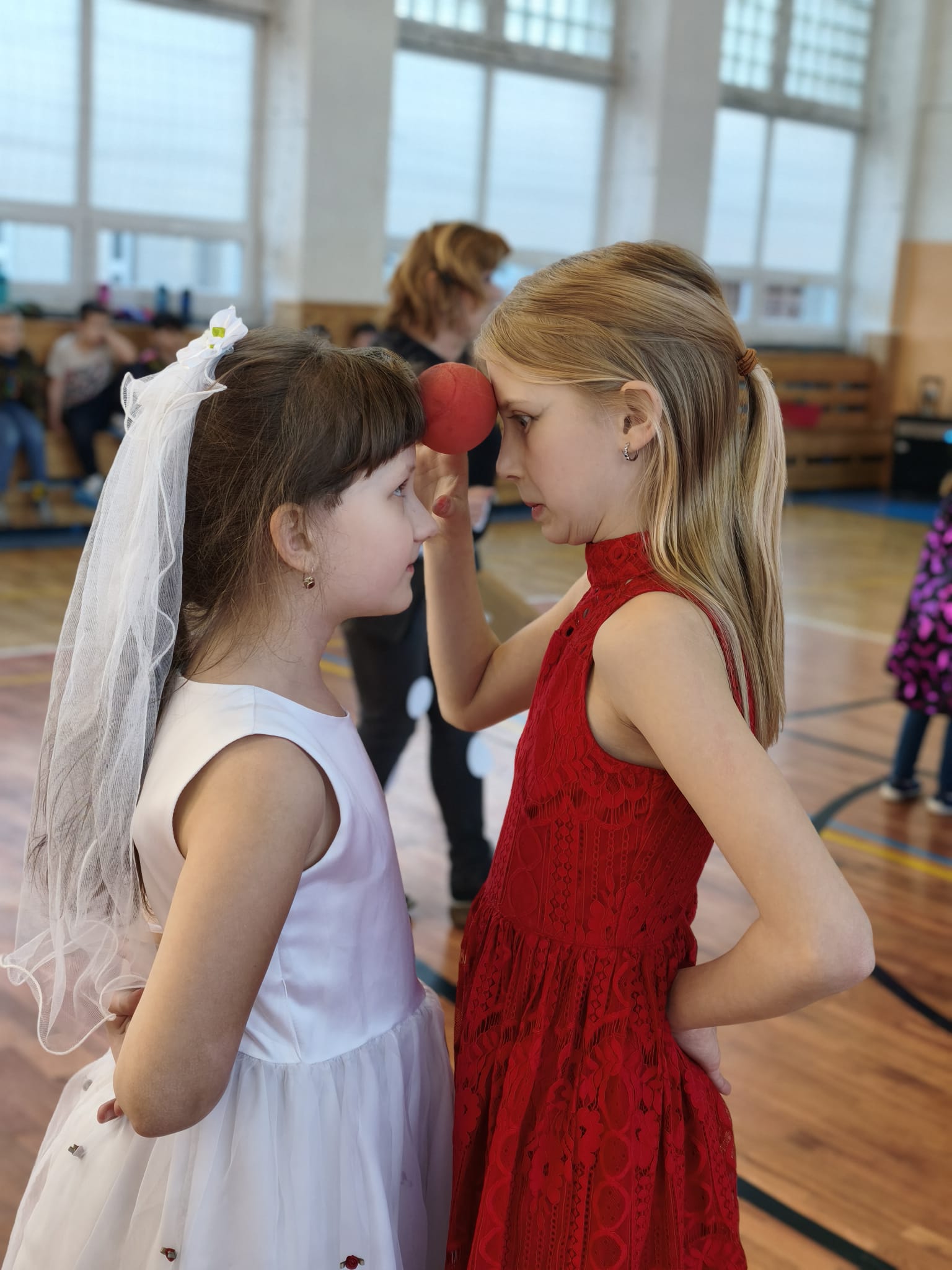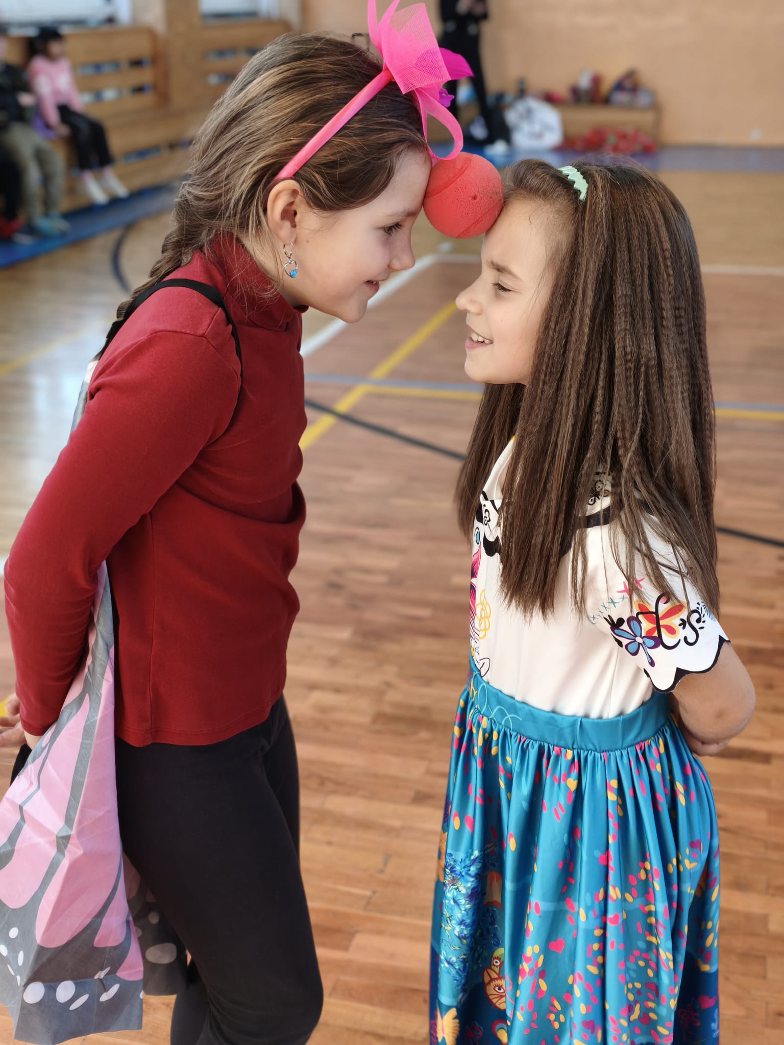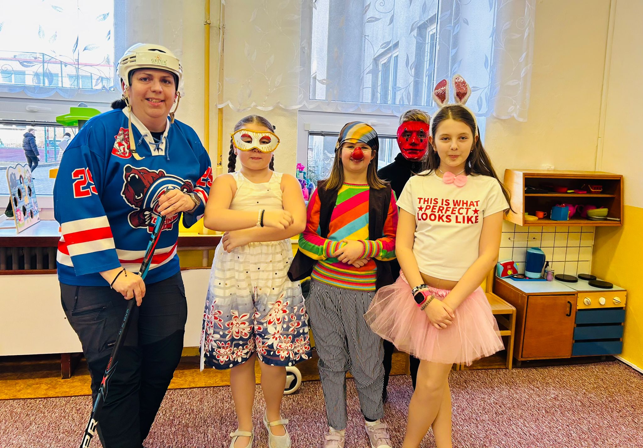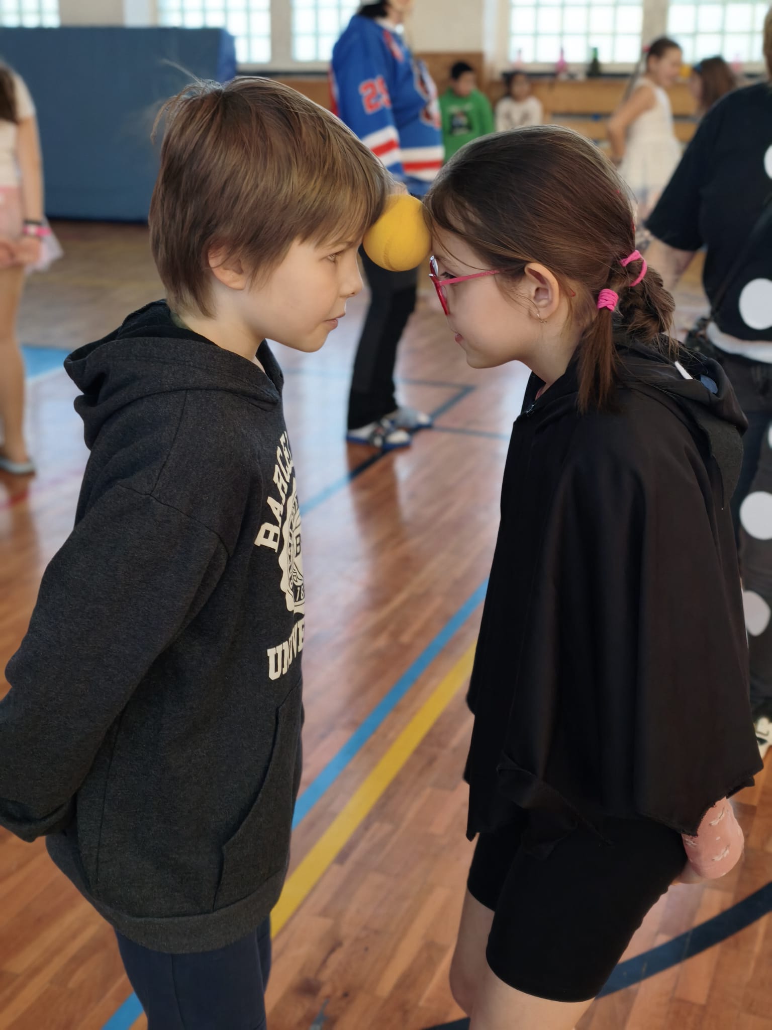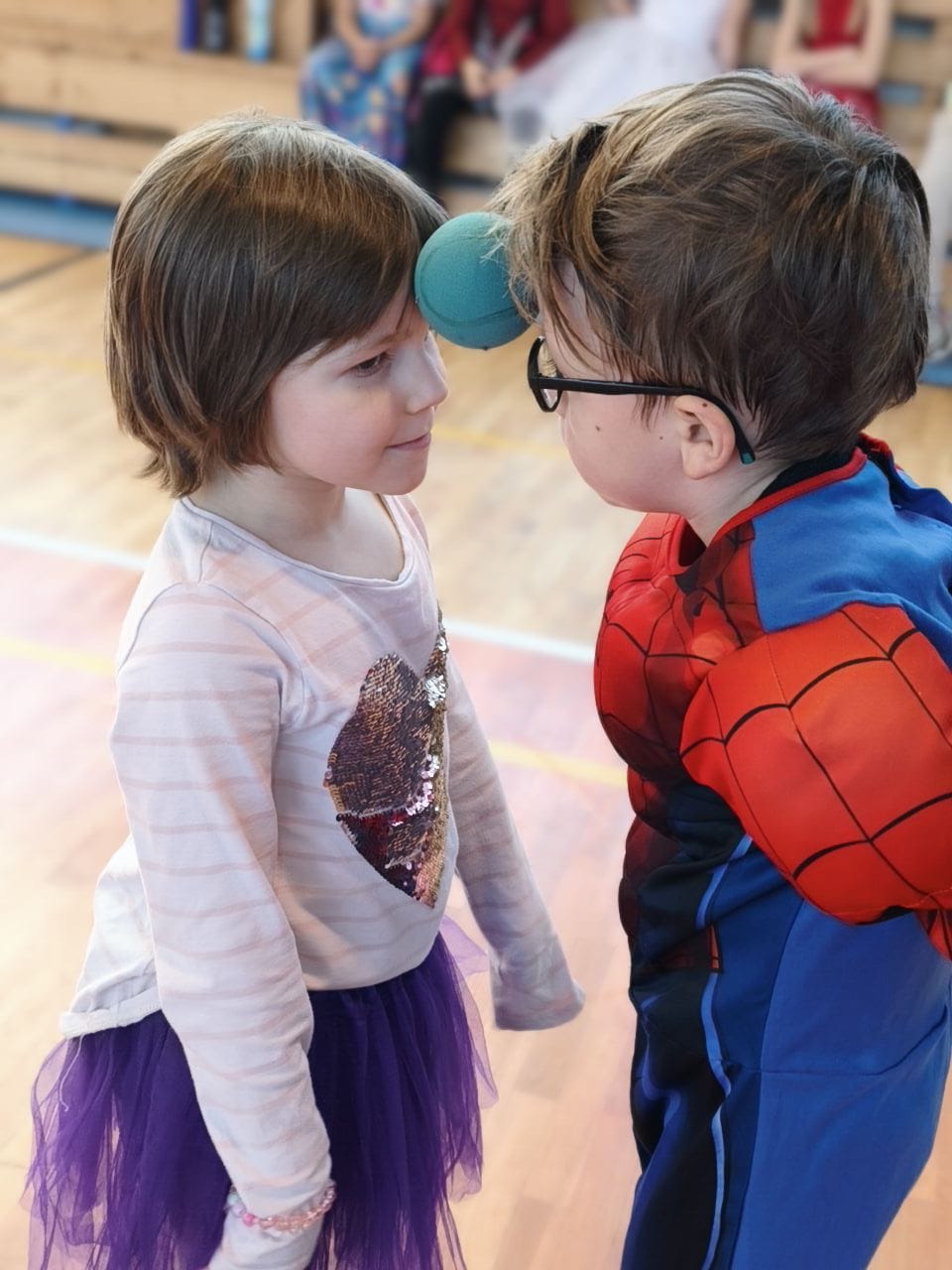 Školní tělocvična se proměnila v taneční sál plný pohádkových bytostí, zvířat, sportovců, princezen, víl, superhrdinů.