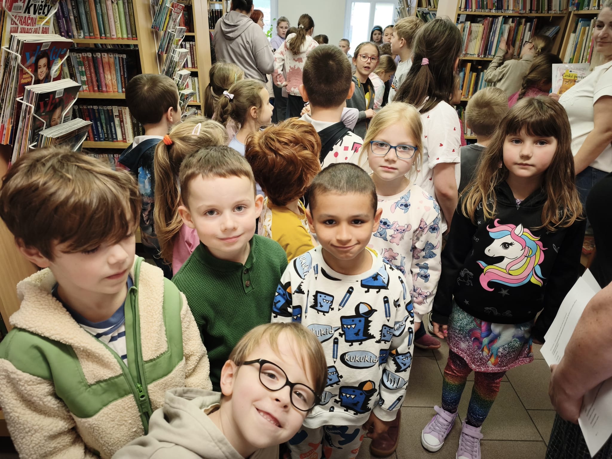 Ve středu 25. března jsme společně odnesli vypracované čtenářské karty a knížky do knihovny. Paní knihovnice děti seznámila s chodem knihovny a umožnila dětem, aby si prohlédly knihy a časopisy dle jejich zájmu. Také si pro děti připravila kvízové otázky k četbě zapůjčených knih.