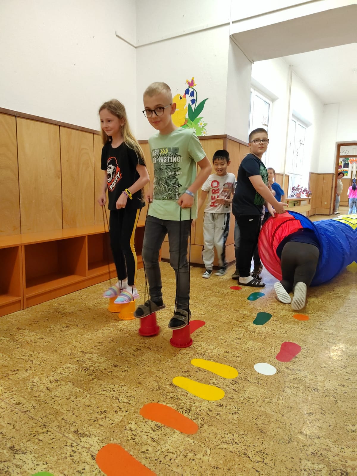 Ve dnech 30. 5. - 1. 6. proběhla ve školní družině oslava mezinárodního dne dětí. V pondělí a úterý děti sbíraly body za soutěže, kvízy, rébusy, sportovní úkoly a další aktivity. Činnosti se odehrály v odděleních, na chodbě u ŠD, na školním dvoře a hřišti, kde si děti vybíraly z různých aktivit - tanec a zpěv při hudbě, házení pytlíků a kroužků, prolézání tunelem, malování křídami, skákání v žebříku a pytlích, chůze na chůdách, kladině, hra minigolf, kopaná. Ve středu si děti mohly  podle získaných bodů  vybrat pěkné ceny nebo sladkosti v obchůdku, kdy se získané body proměnily v peníze.