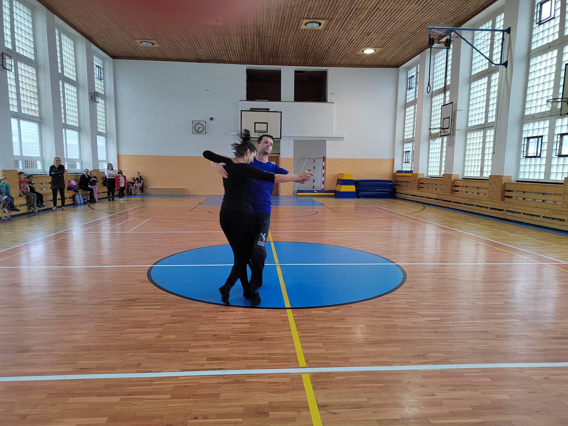 BELLA DANZA je taneční škola v Děčíně. Po domluvě v pátek 3. března navštívili její zástupci naší školní družinu. V tělocvičně si děti mohly pod vedením zkušených trenérů nacvičit základní kroky společenského tance Salsa. Nejprve jednotlivě, posléze ve dvojici.