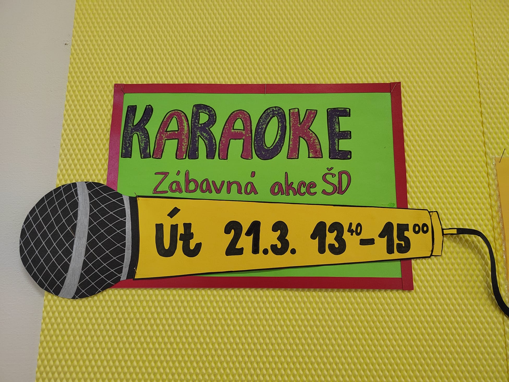 V úterý 21. března jsme připravili pro děti ve školní družině zábavné hudební odpoledne. Na KARAOKE si děti vybraly píseň z předem připraveného seznamu, na kterém byly lidové, pohádkové a populární písničky. Úvodem jsme si společně zazpívali písně Když nemůžeš..., Nafrněná..., Saxana... a další. Poté dostali možnost si zazpívat jednotlivci či skupinky své oblíbené písně. Na závěr jsme si opět společně zazpívali například Buchet je spousta...,Já jsem muzikant..., Já do lesa nepojedu...