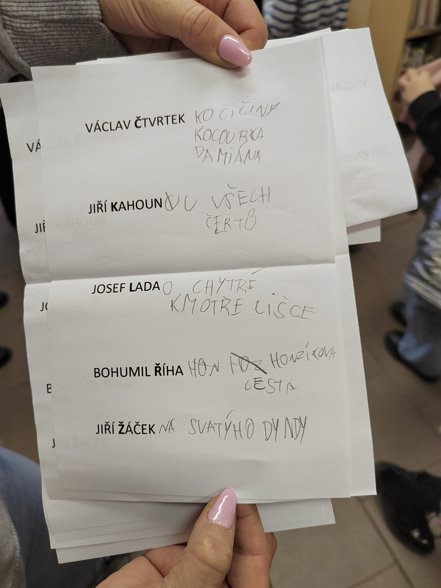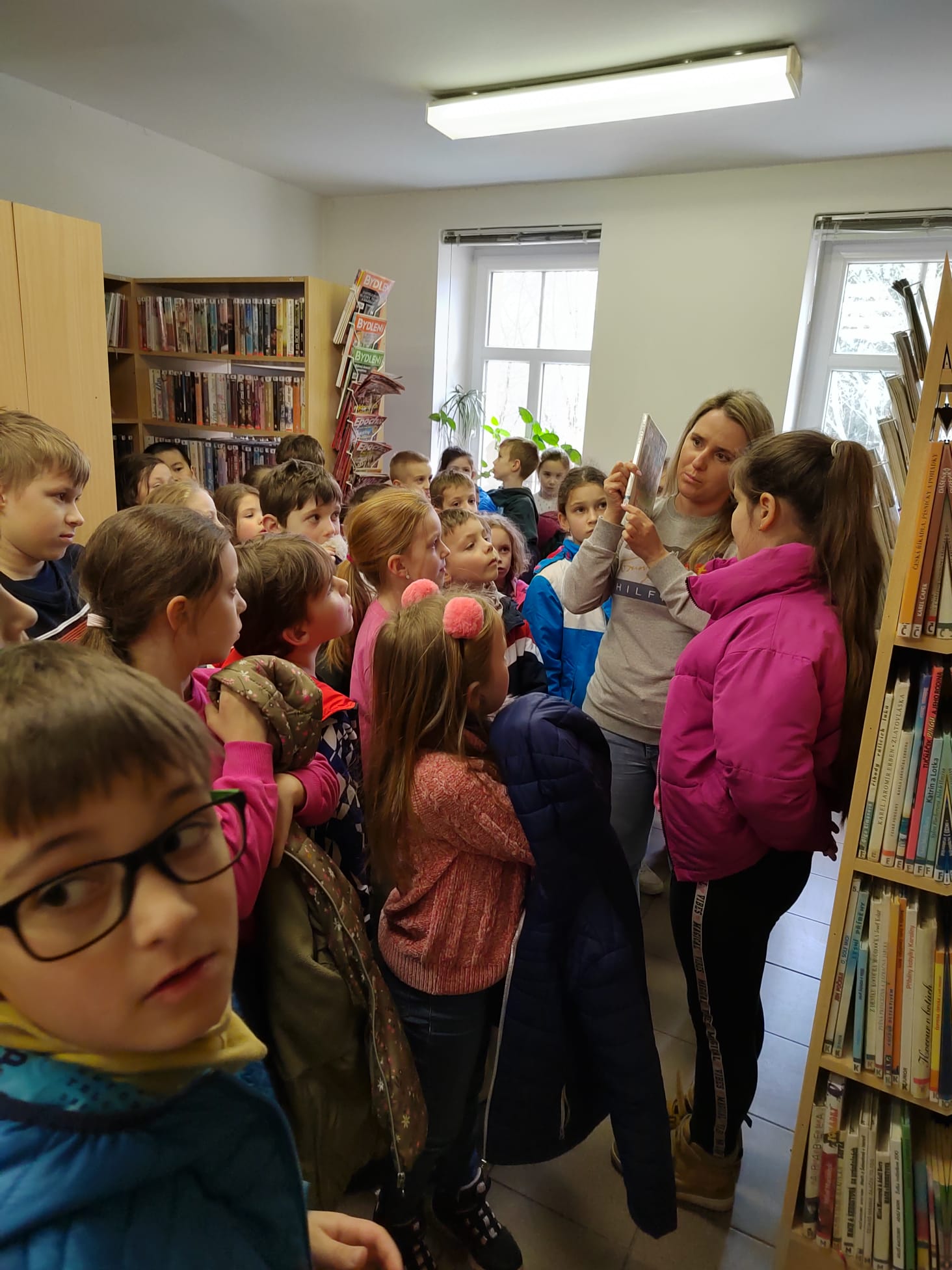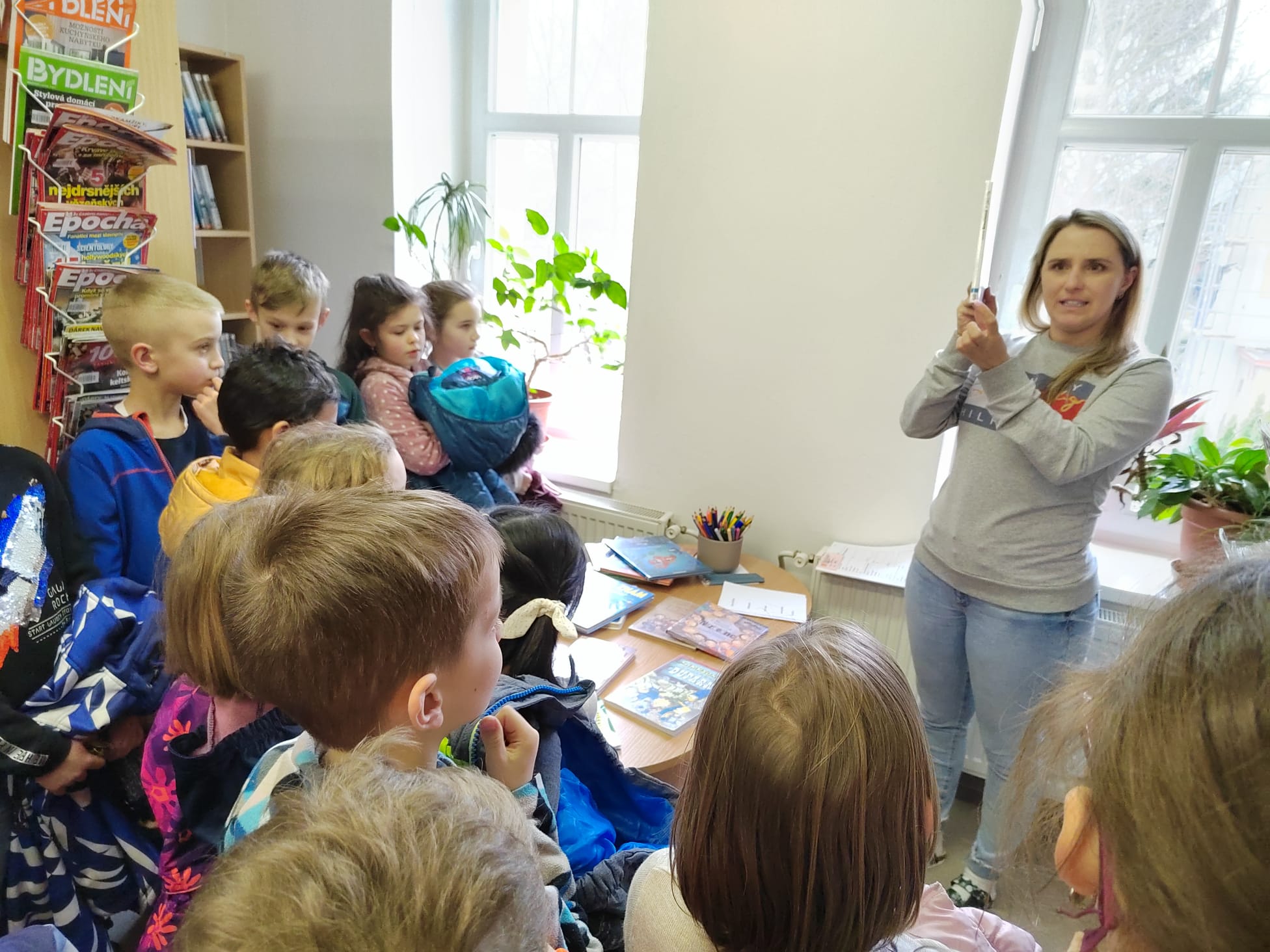 Ve středu 29. března jsme všechny ilustrace a zapůjčené knihy odnesli do již zmiňované knihovny. Paní knihovnice dětem vysvětlila chod knihovny a ochotně odpovídala na jejich otázky. Děti si se zájmem prohlížely knihy, časopisy a mohly vyplnit čtenářský kvíz.