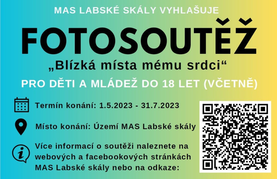 rádi bychom Vás pozvali k účasti na fotosoutěži s názvem "Blízká místa mému srdci", kterou pořádá MAS Labské skály na svém území. Tato soutěž je určena pro všechny z Vás, kteří máte rádi fotografii a místo, kde žijete. Nyní máte šanci ukázat svůj talent a zároveň získat skvělé ceny!