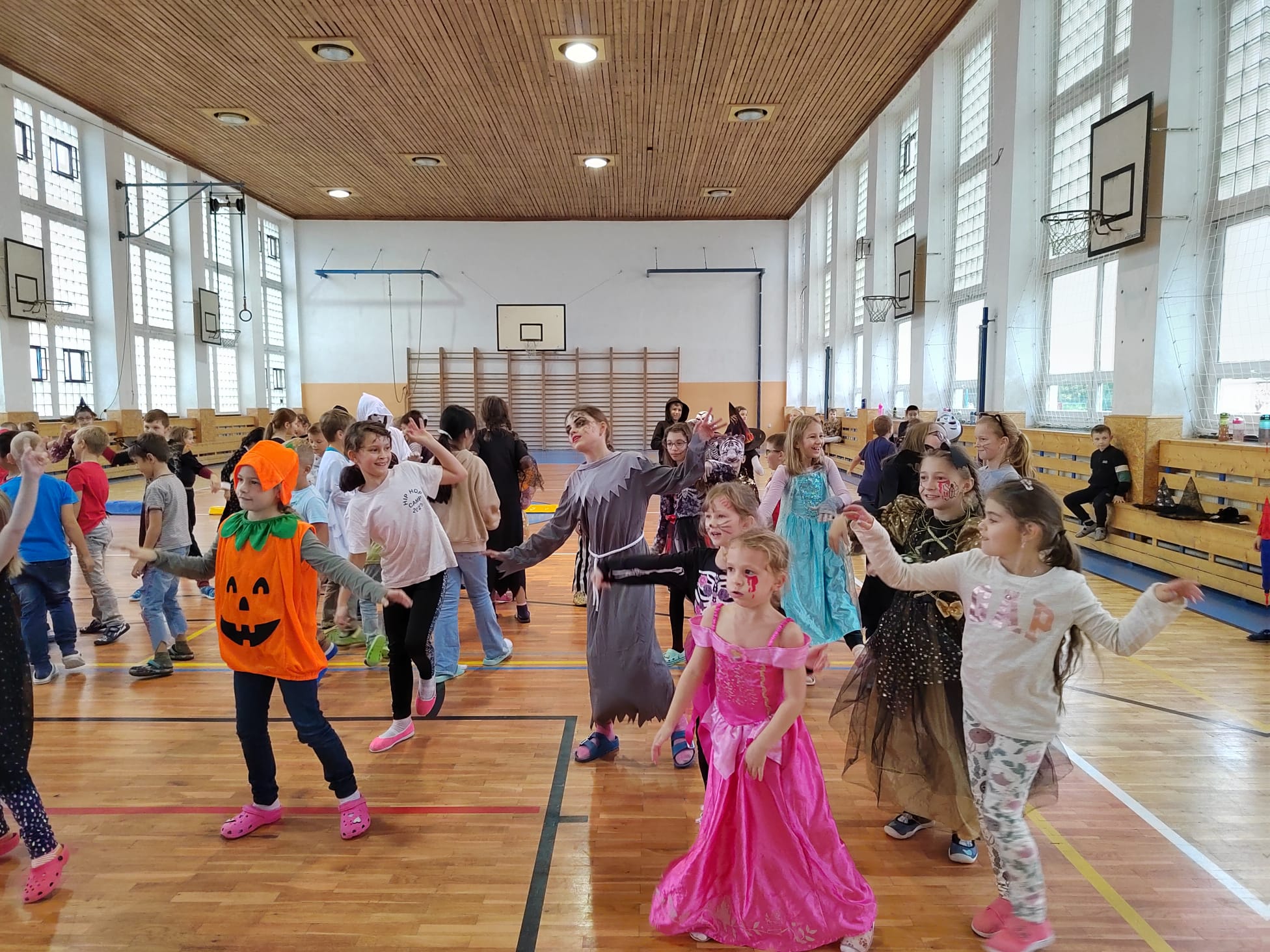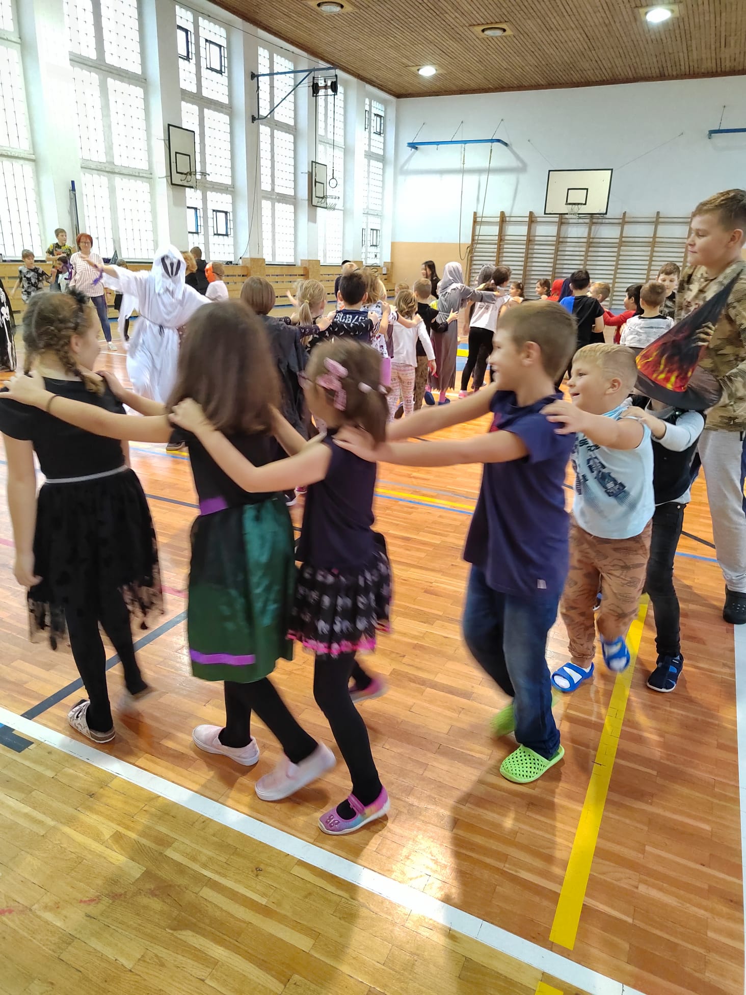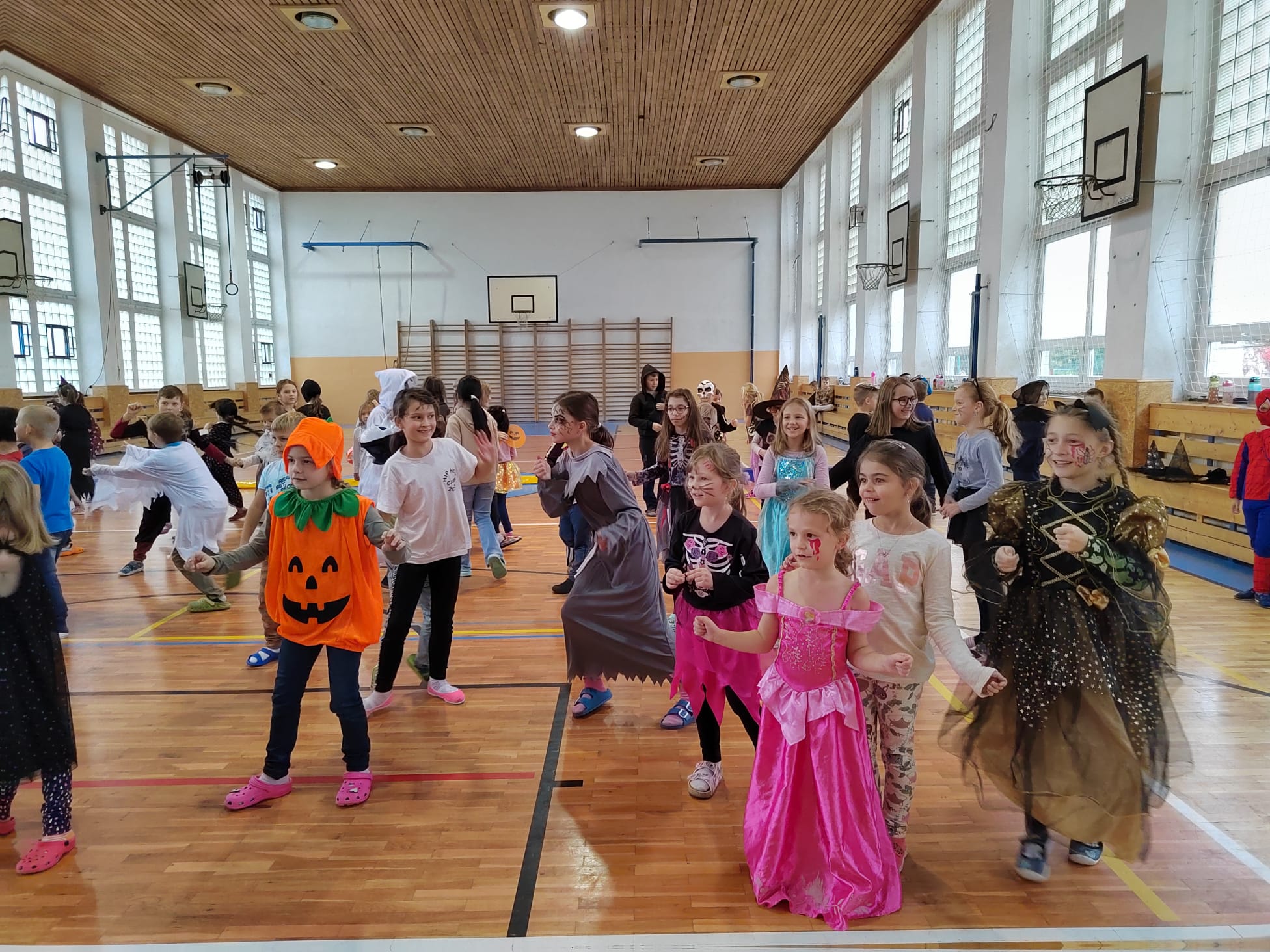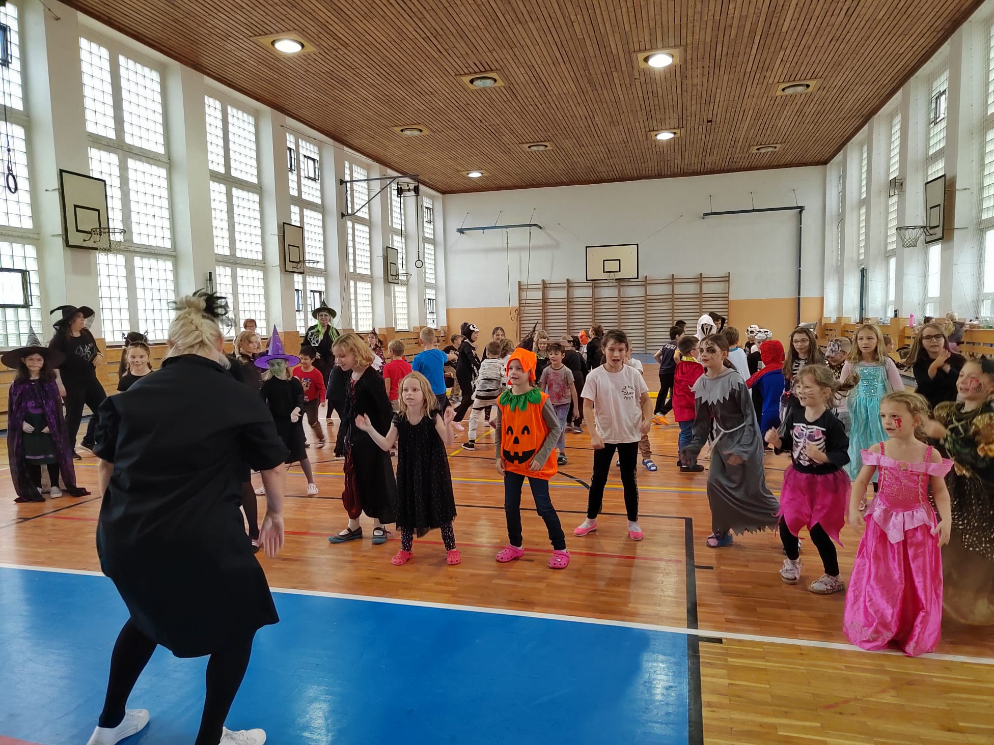Vše vyvrcholilo páteční Dušičkovou diskotékou v halloweenských kostýmech. V tělocvičně plné strašidel, zombíků, mumií, čarodějnic, kostlivců a další havěti vládla dobrá nálada, tanec a zpěv. Nesměla chybět také soutěž - počítání dýniček a sladké odměny.