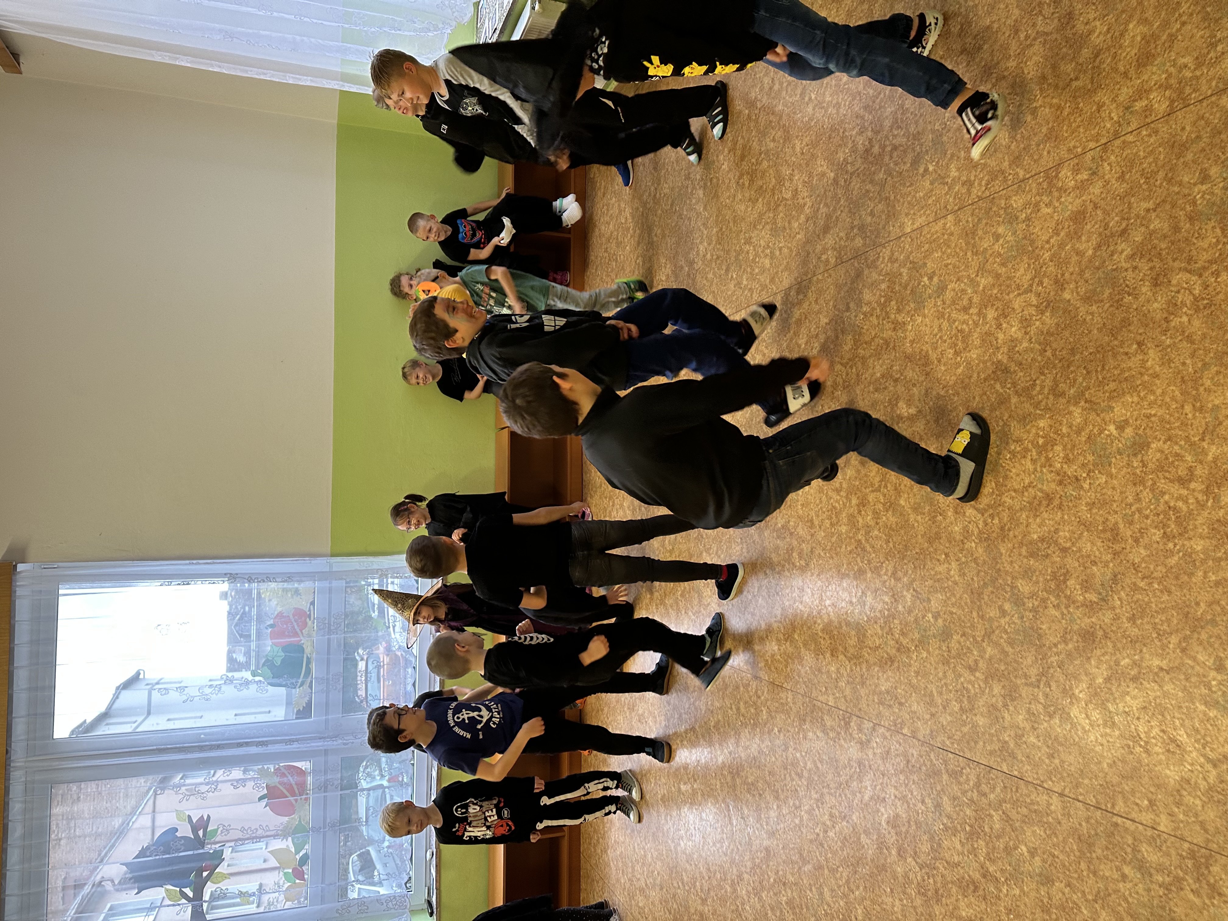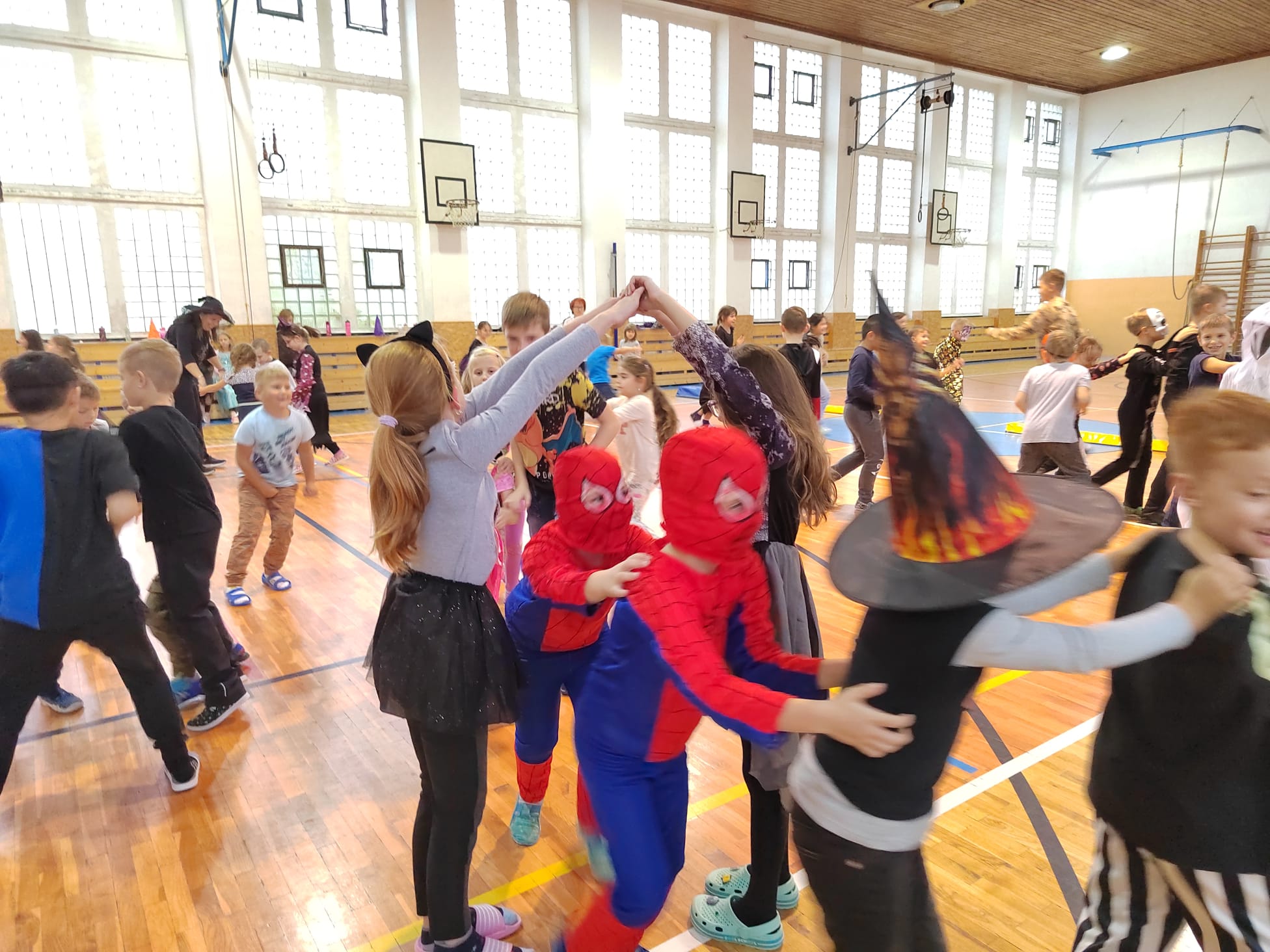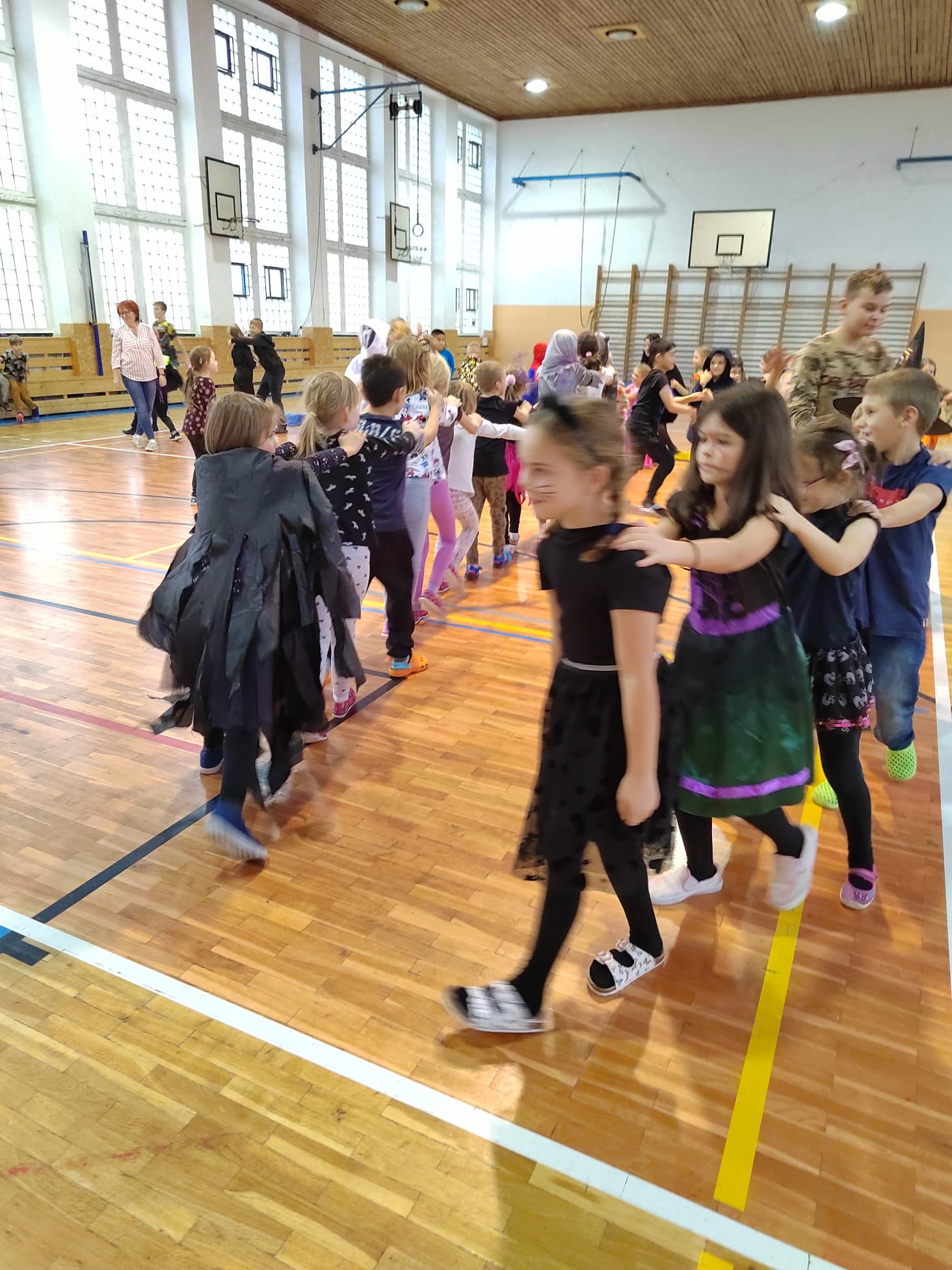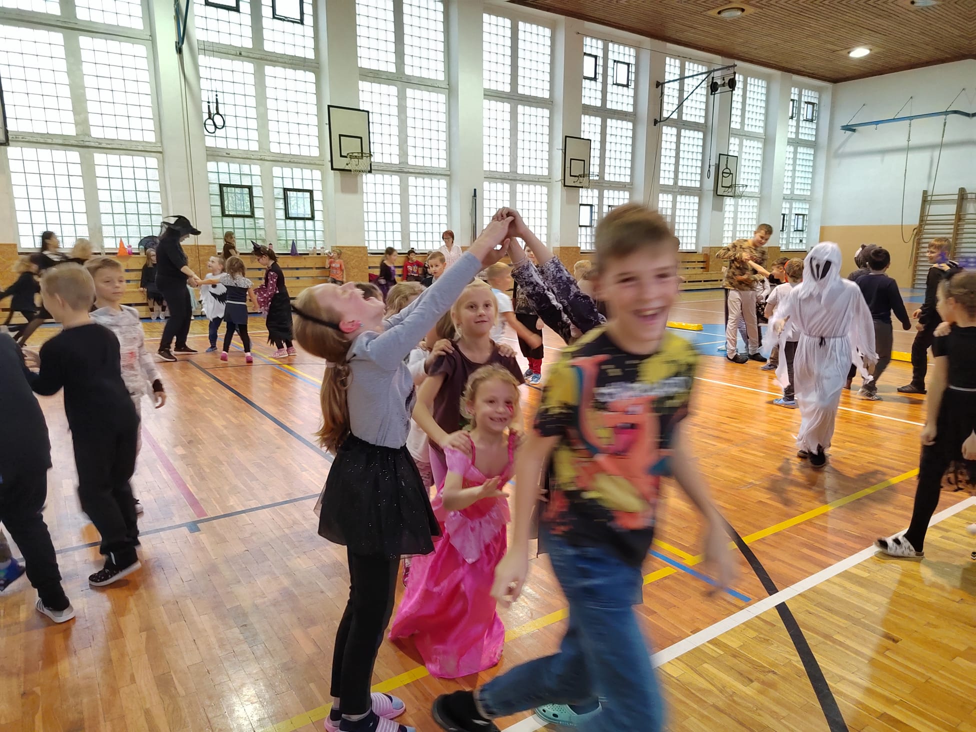 Vše vyvrcholilo páteční Dušičkovou diskotékou v halloweenských kostýmech. V tělocvičně plné strašidel, zombíků, mumií, čarodějnic, kostlivců a další havěti vládla dobrá nálada, tanec a zpěv. Nesměla chybět také soutěž - počítání dýniček a sladké odměny.