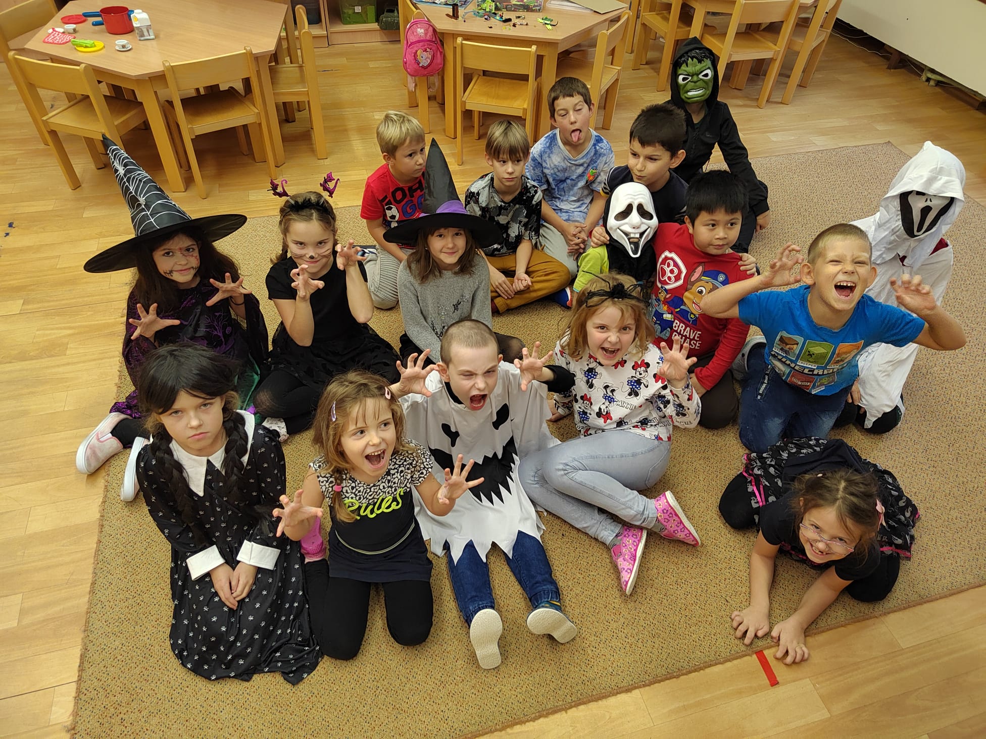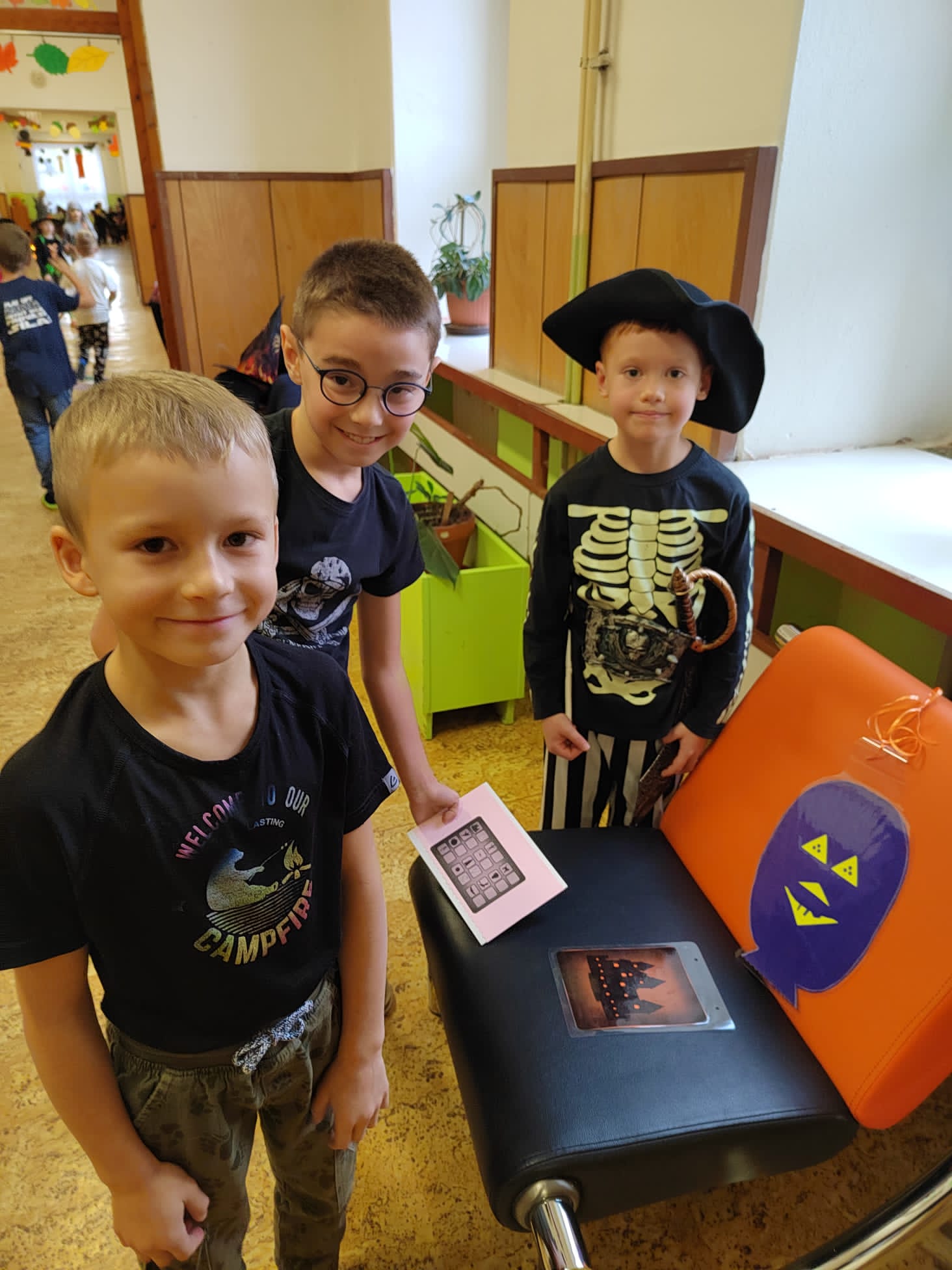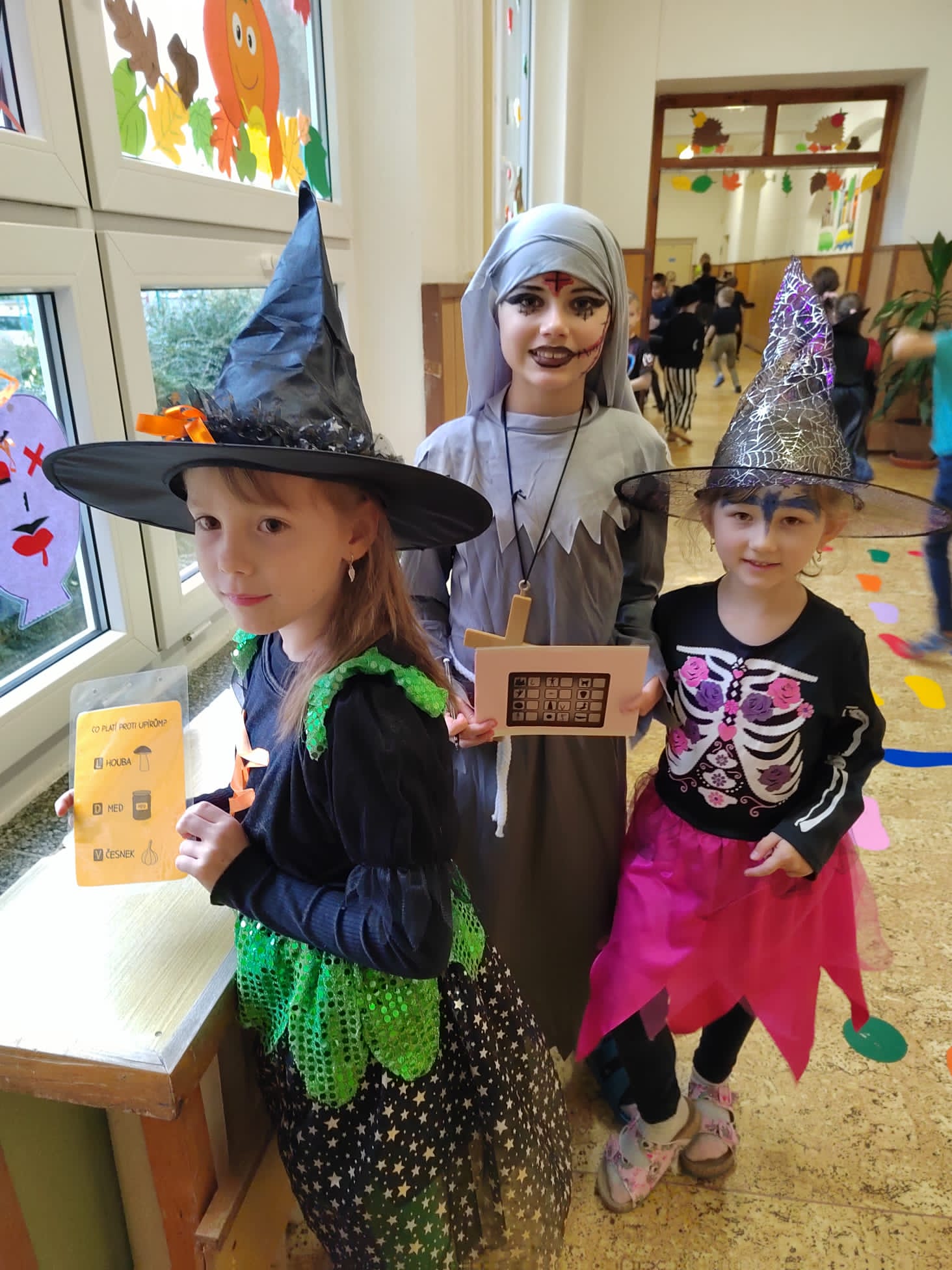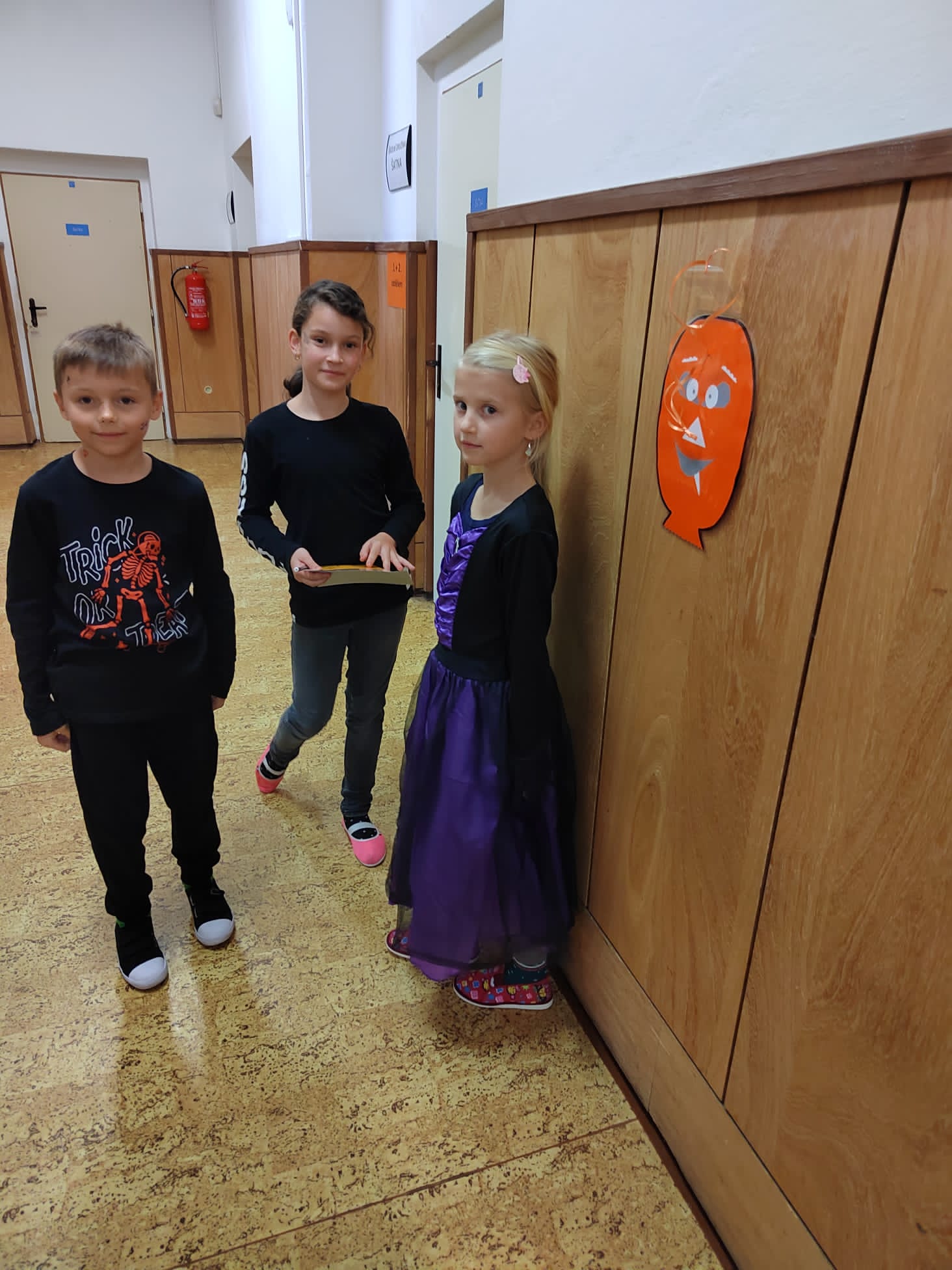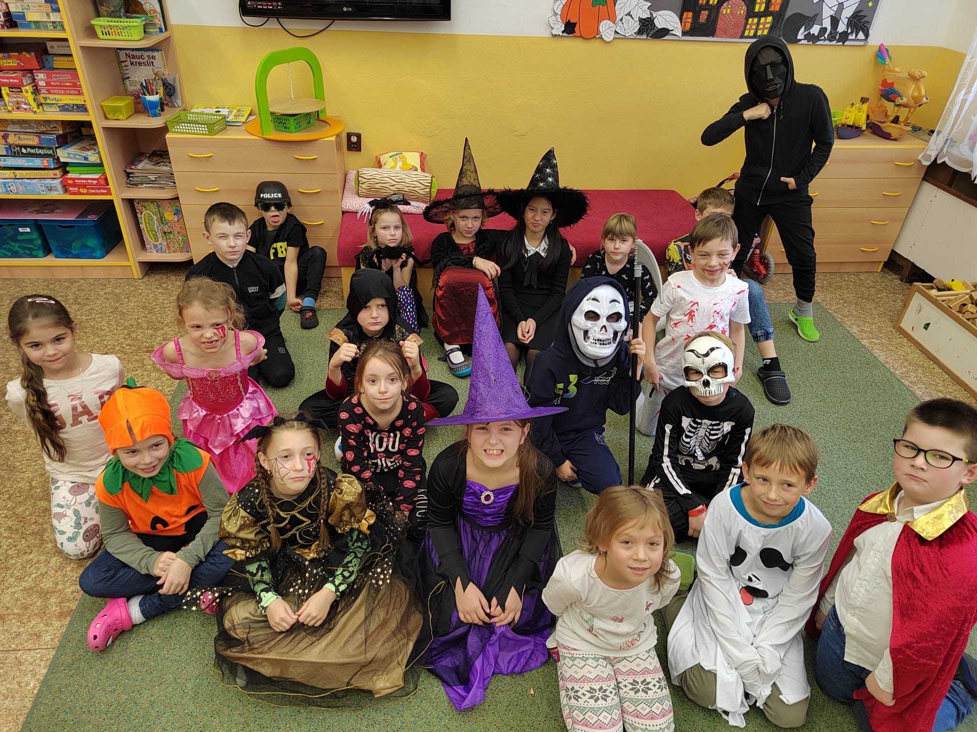V úterý 31.10. se děti ve strašidelných převlecích zabavily kvízem či Halloweenskou stezkou, kdy v prostorech naší chodby plnily ve skupinkách zašifrované úkoly a poté musely daný rébus doplnit do tajenky.
