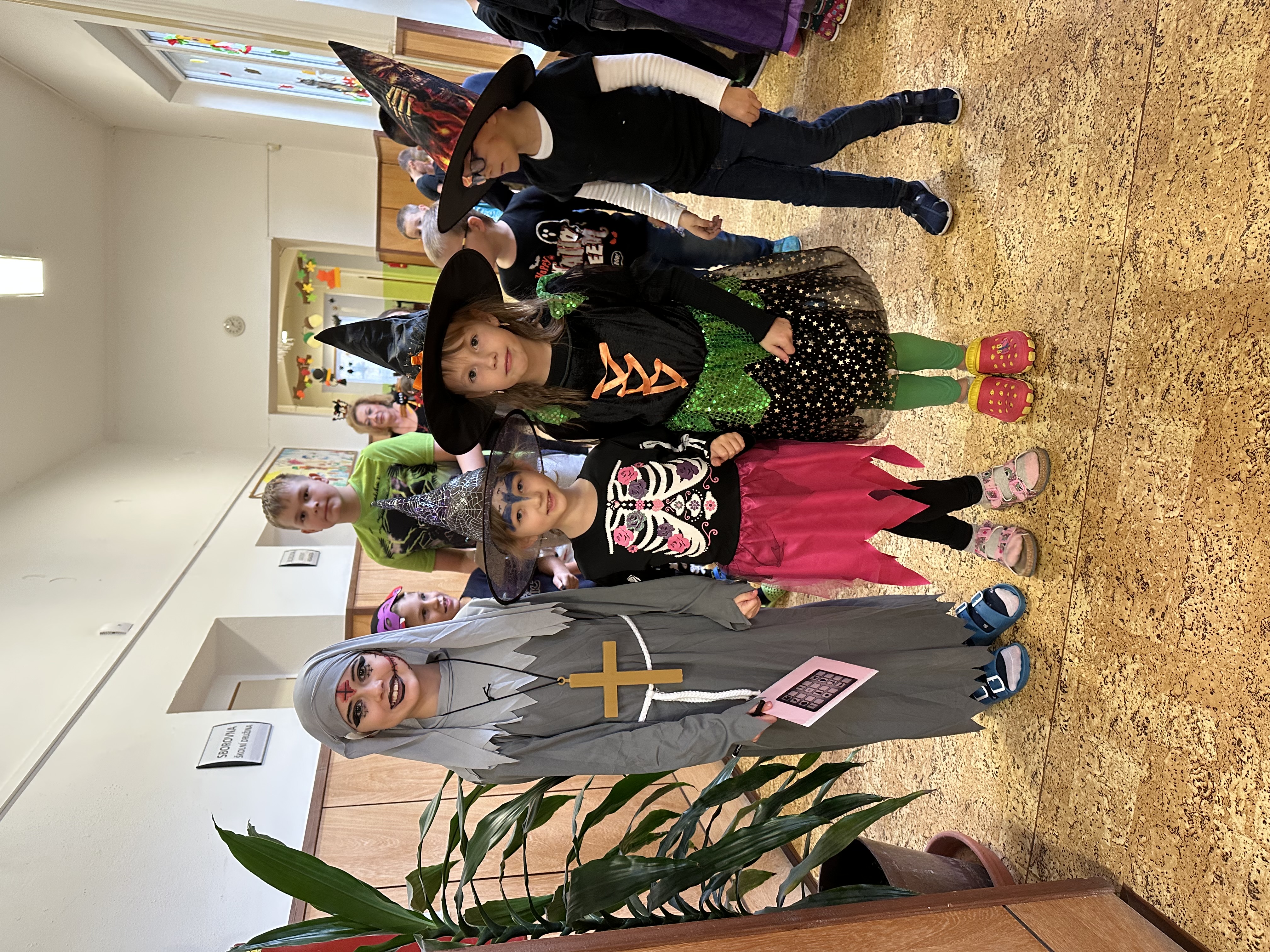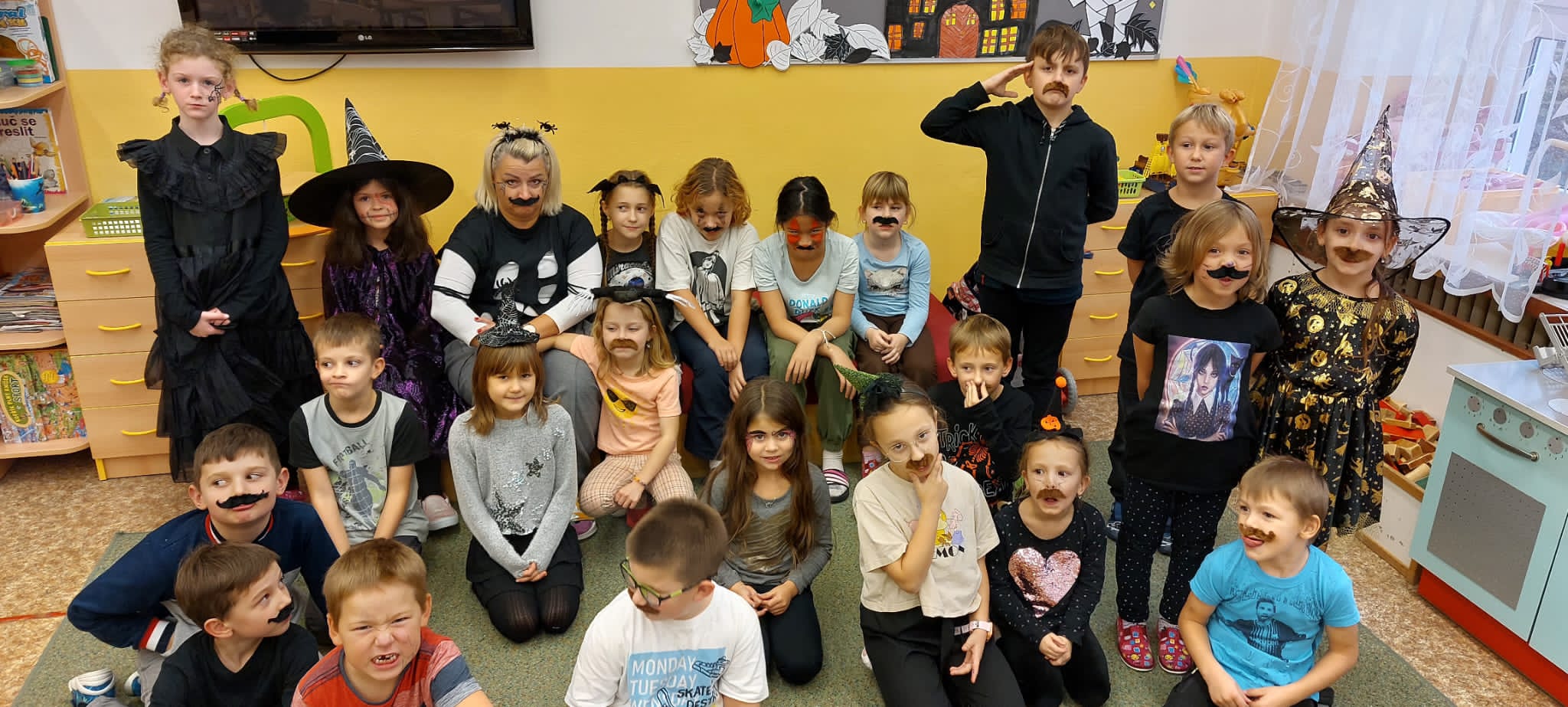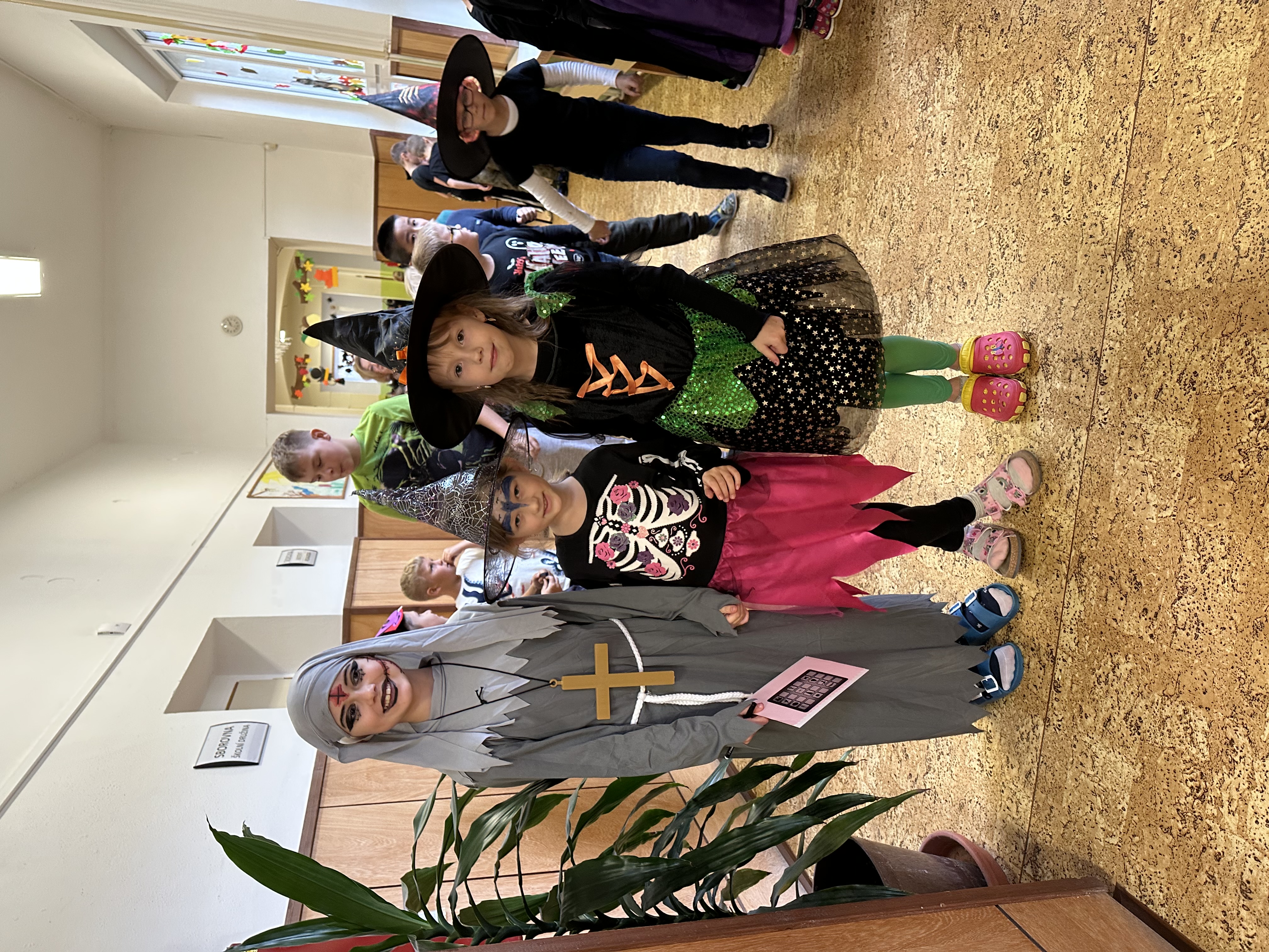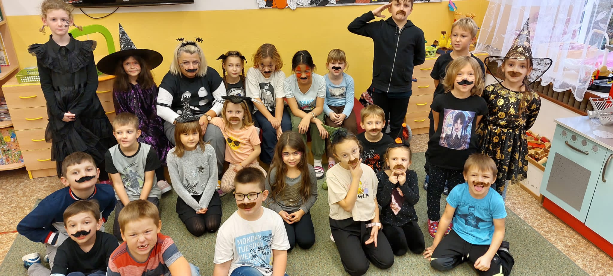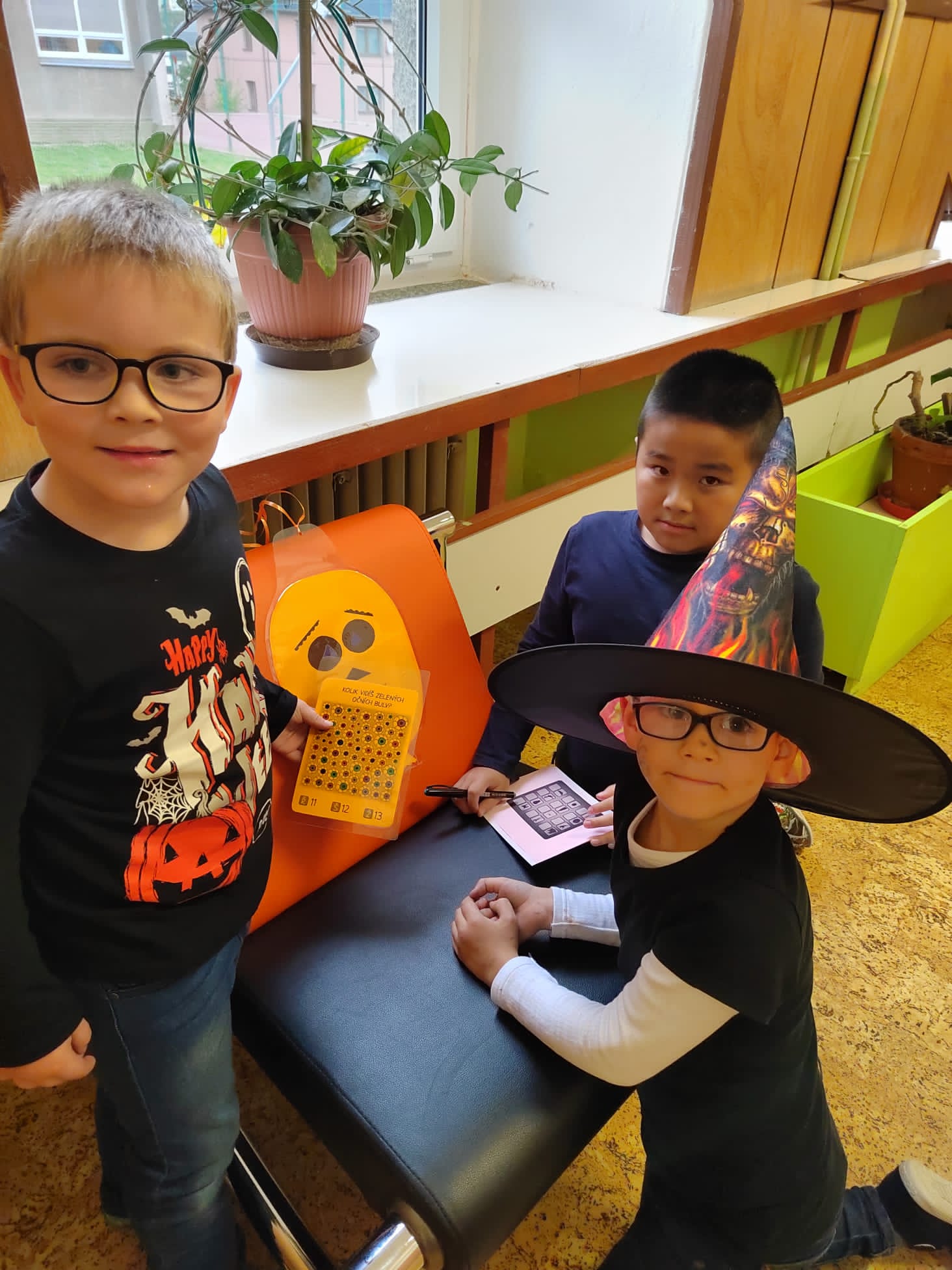 V úterý 31.10. se děti ve strašidelných převlecích zabavily kvízem či Halloweenskou stezkou, kdy v prostorech naší chodby plnily ve skupinkách zašifrované úkoly a poté musely daný rébus doplnit do tajenky.