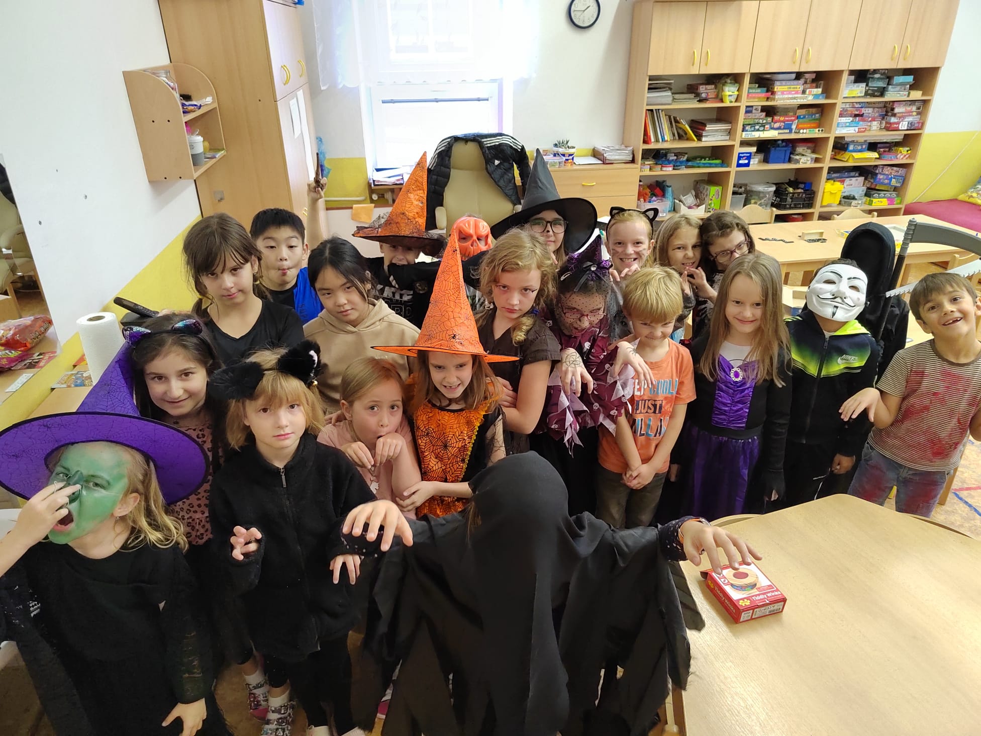 Pro děti je to zábavné období plné strašidelných záhad. Zásadní bylo tematicky vyzdobit prostory a oddělení školní družiny. V tom přispěly děti svými výrobky a obrázky a také výtvory z dobrovolné rukodělné soutěže - viz článek HALLOWEENSKÁ STRAŠIDLA.