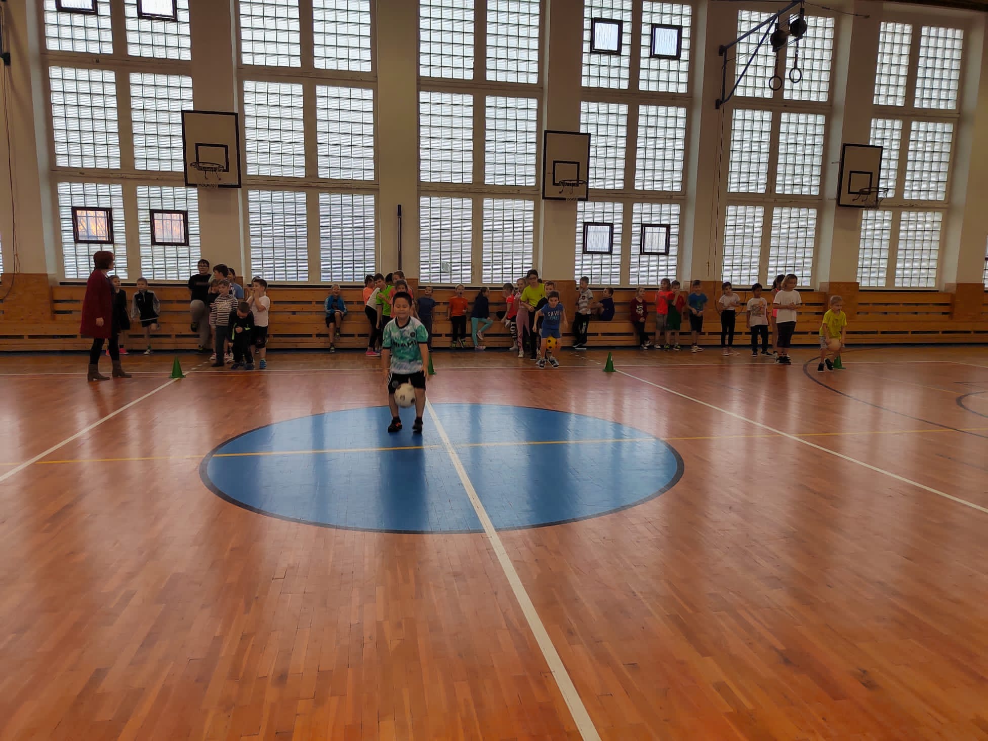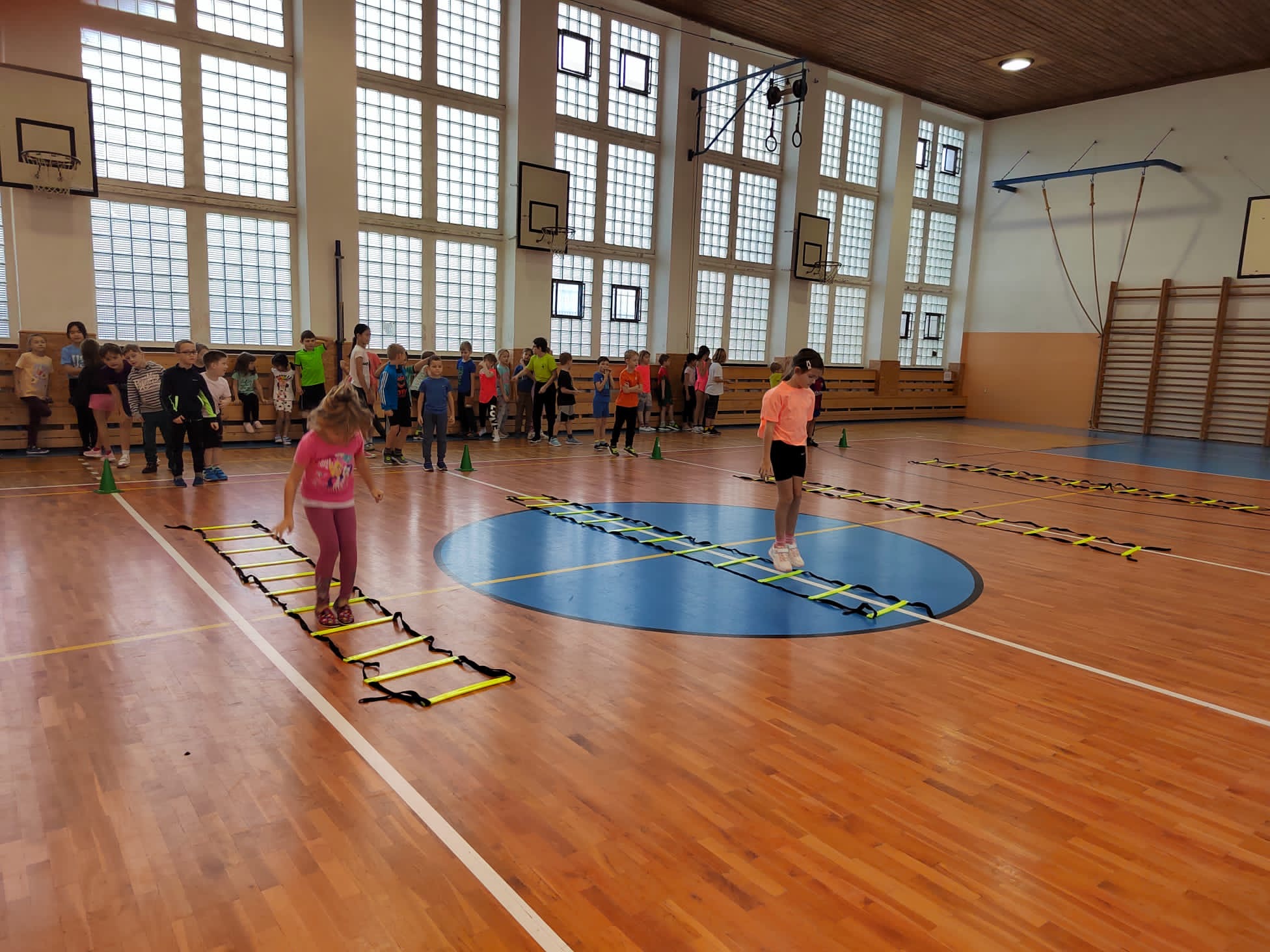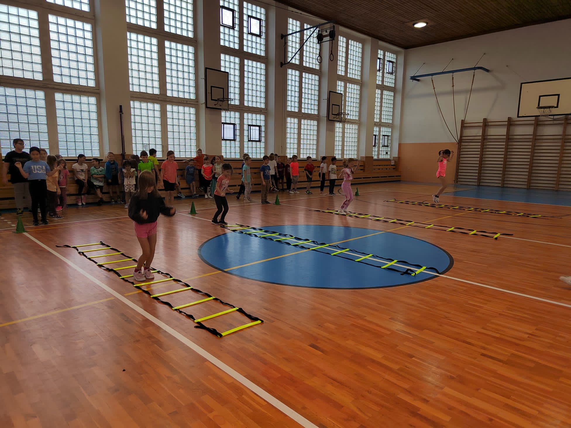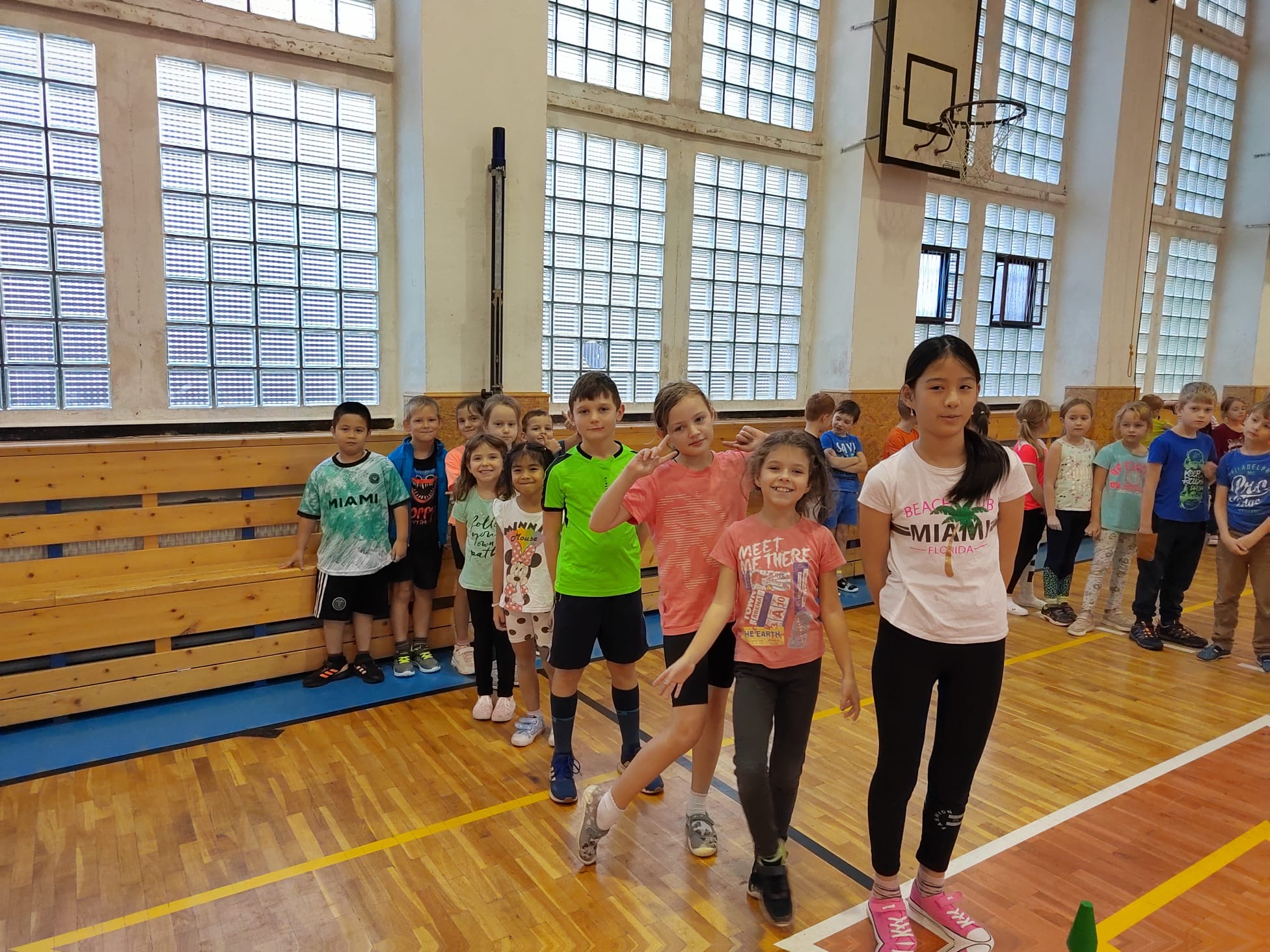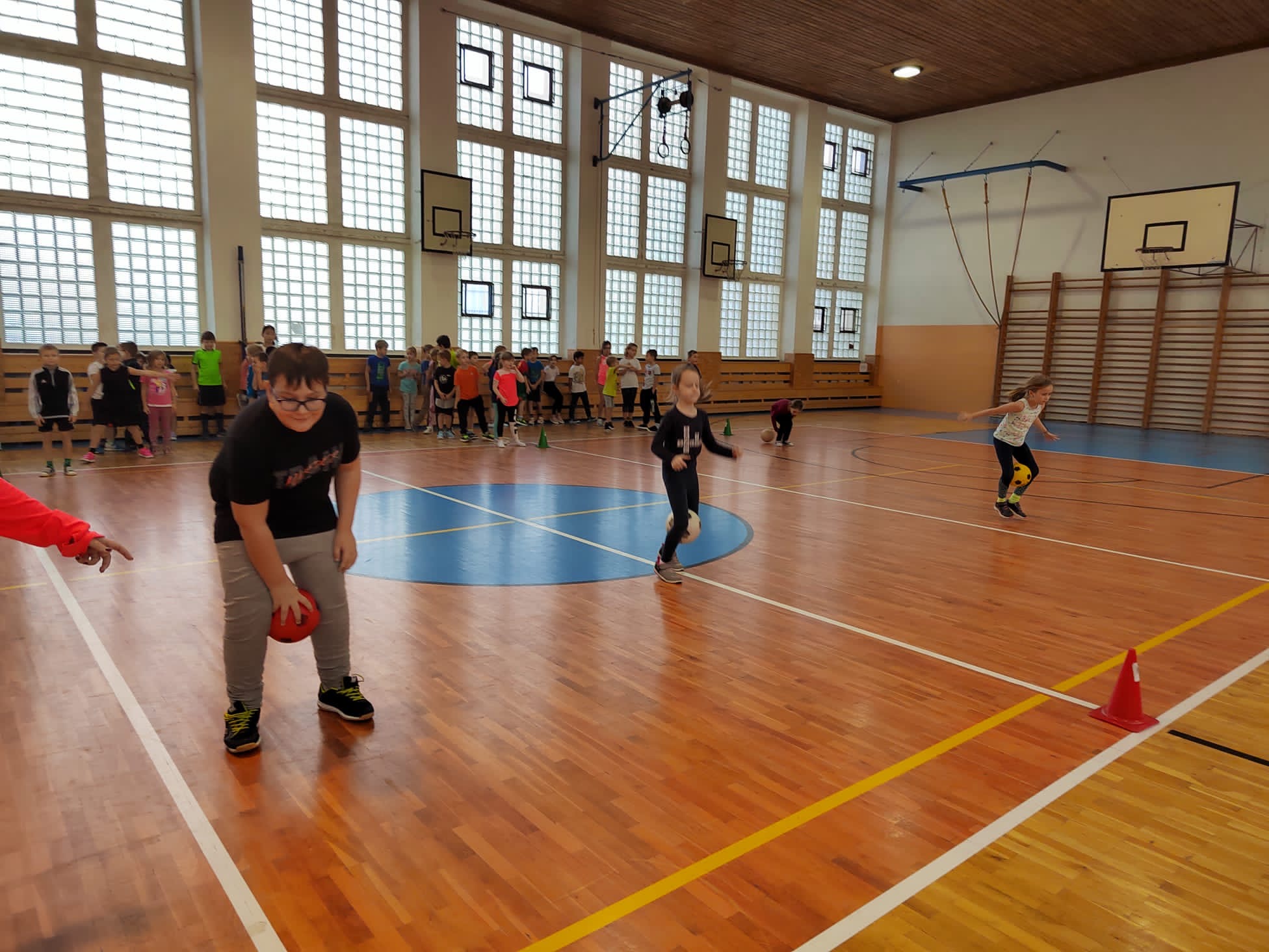 Po příchodu do tělocvičny, vychovatelky rozdělily děti do čtyř smíšených družstev. Sportovci soutěžili v sedmi disciplínách s míči, kužely, obručemi, využili jsme žebříky a další sportovní pomůcky.