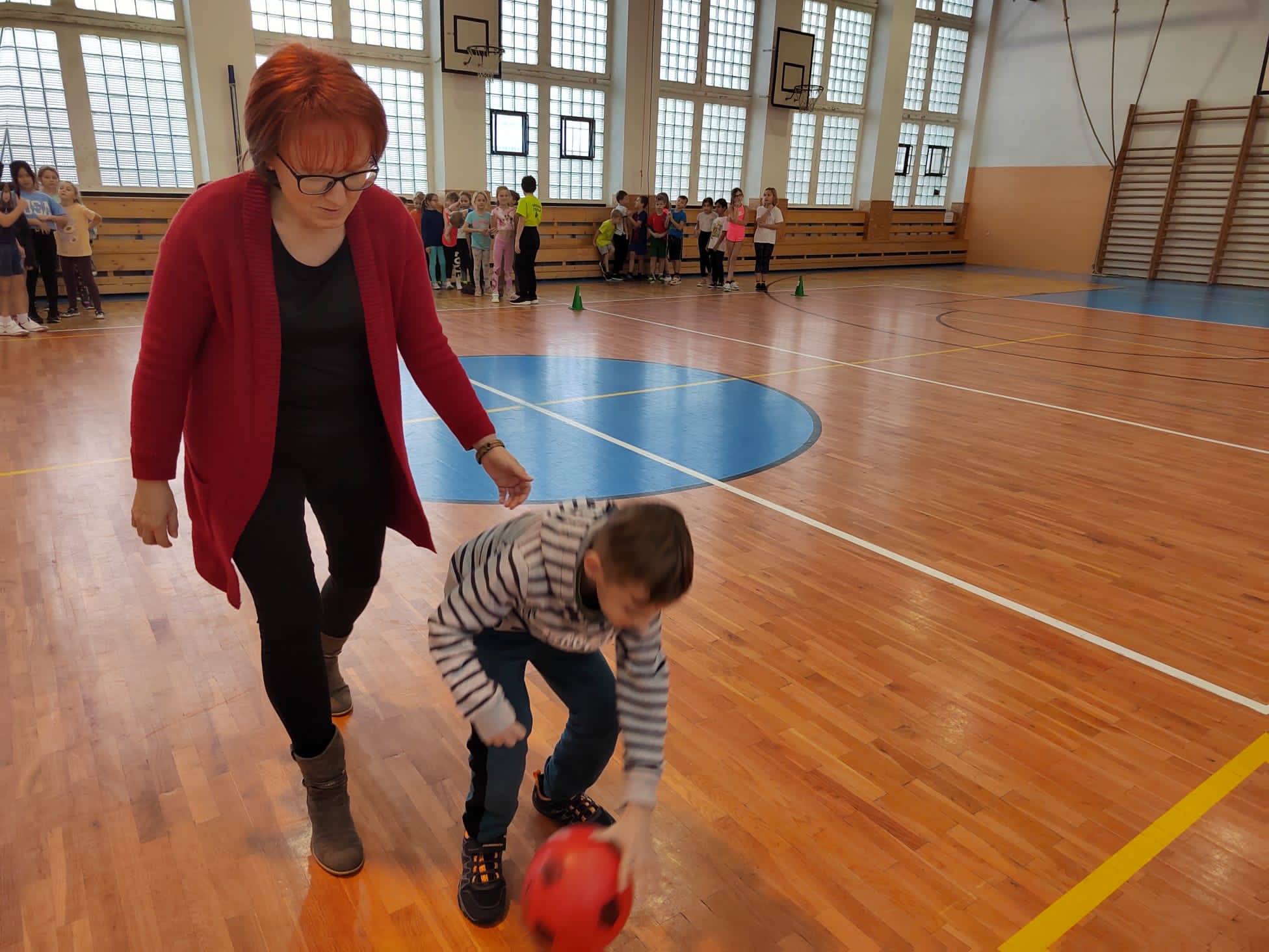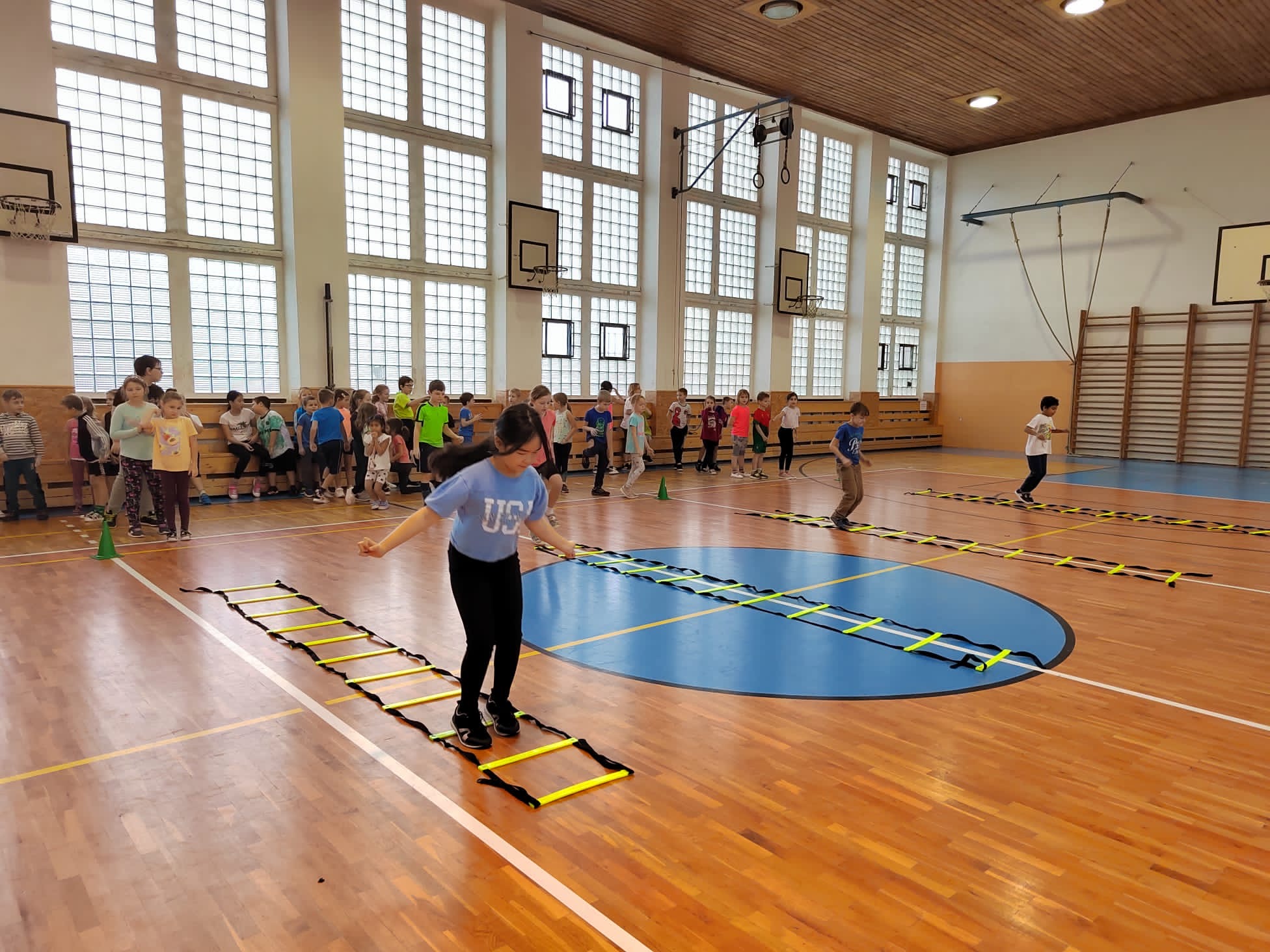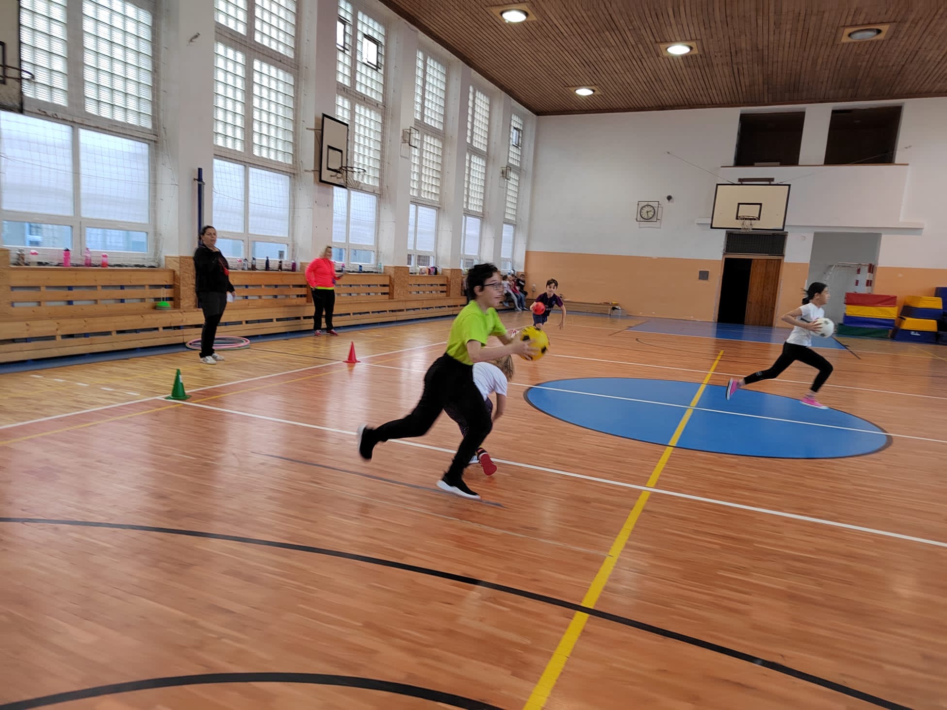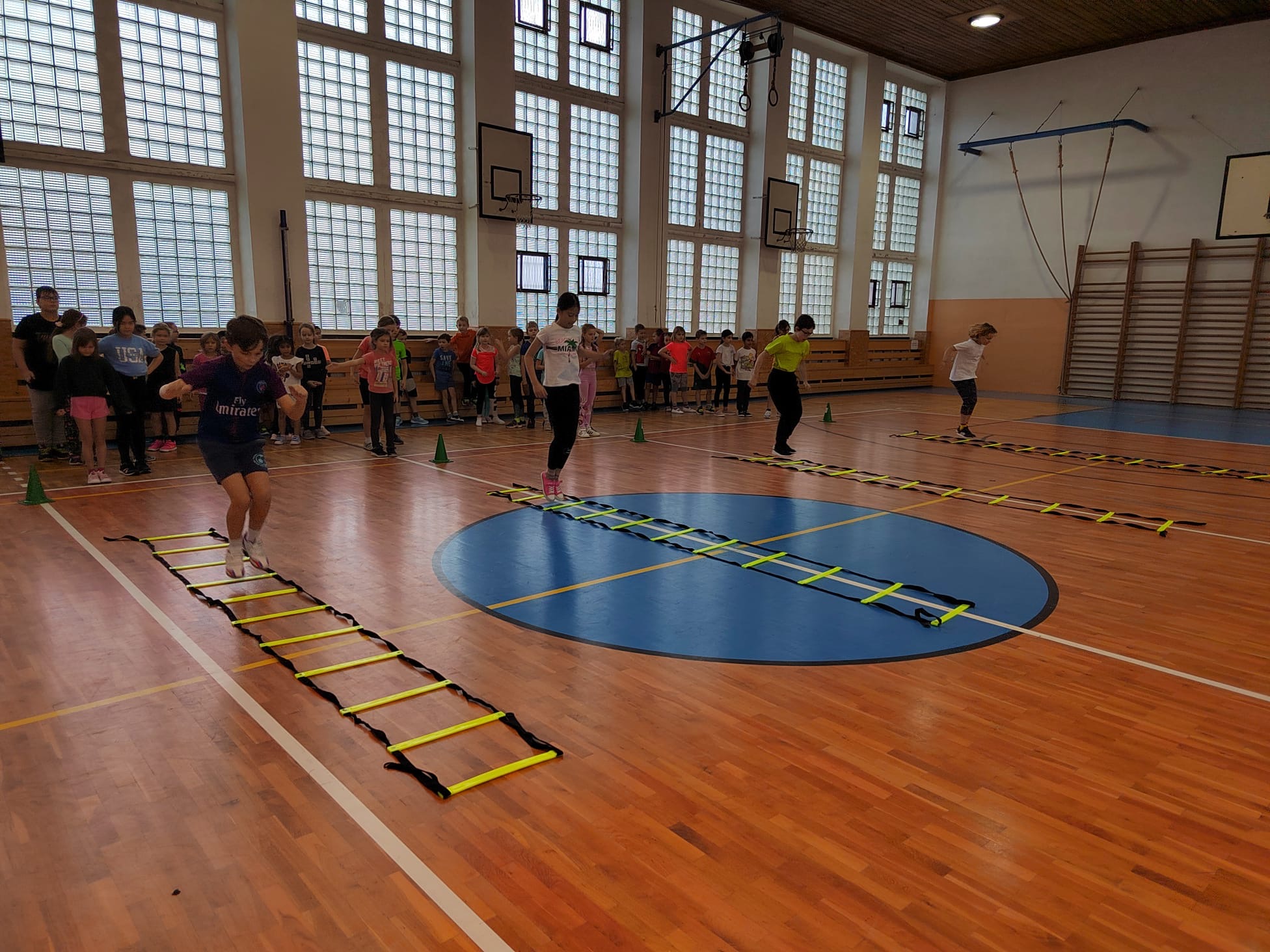 Po příchodu do tělocvičny, vychovatelky rozdělily děti do čtyř smíšených družstev. Sportovci soutěžili v sedmi disciplínách s míči, kužely, obručemi, využili jsme žebříky a další sportovní pomůcky.