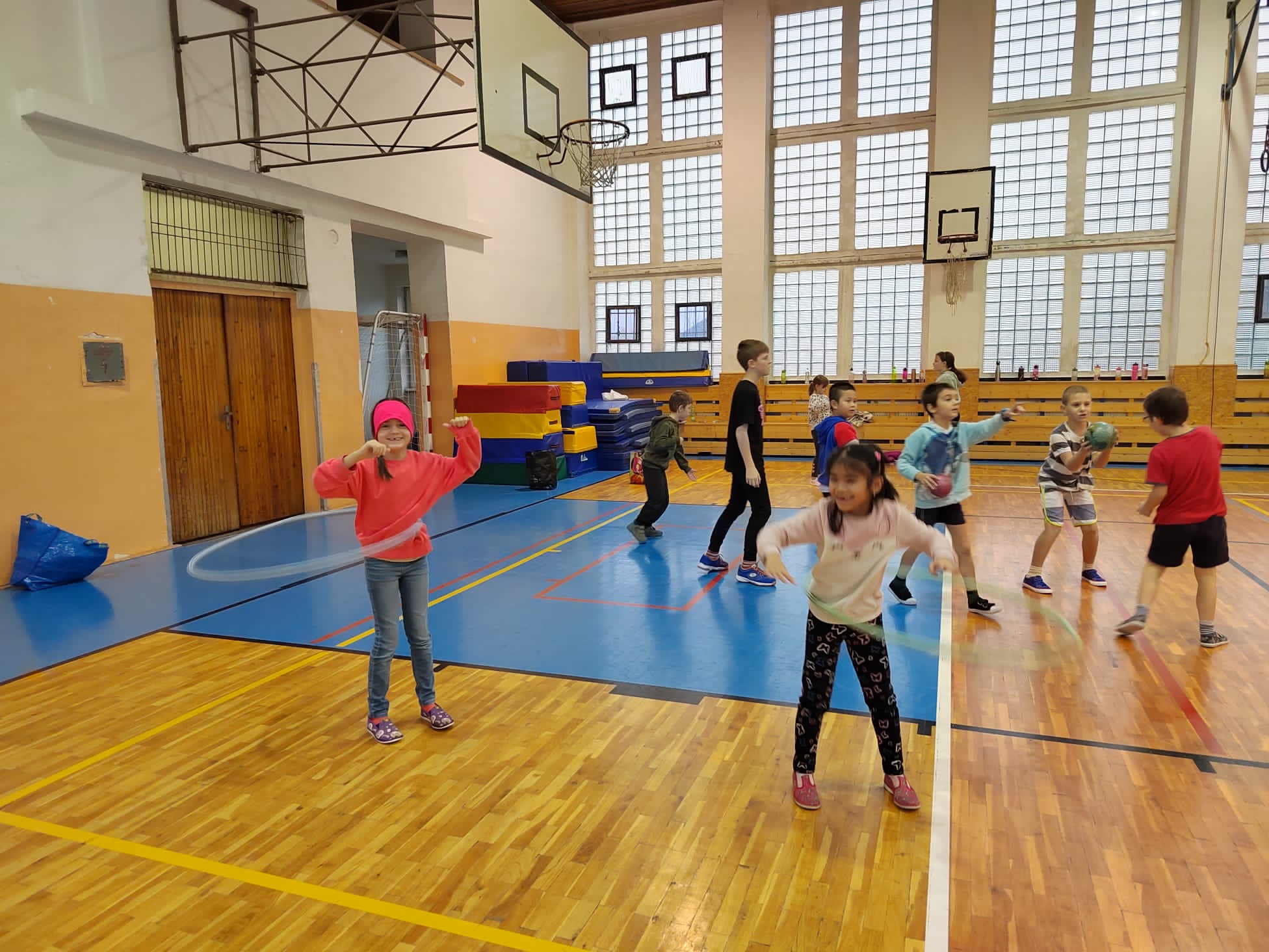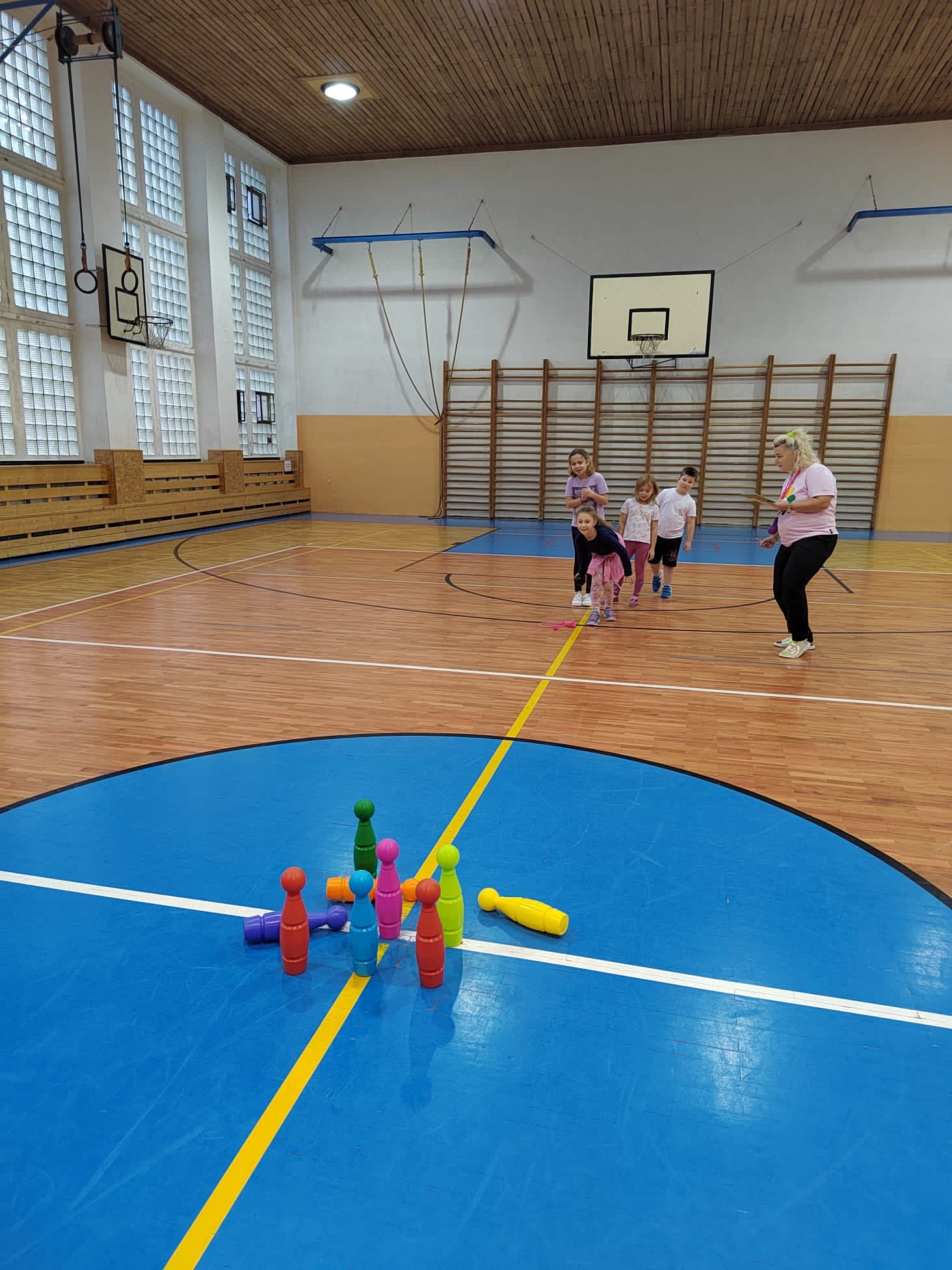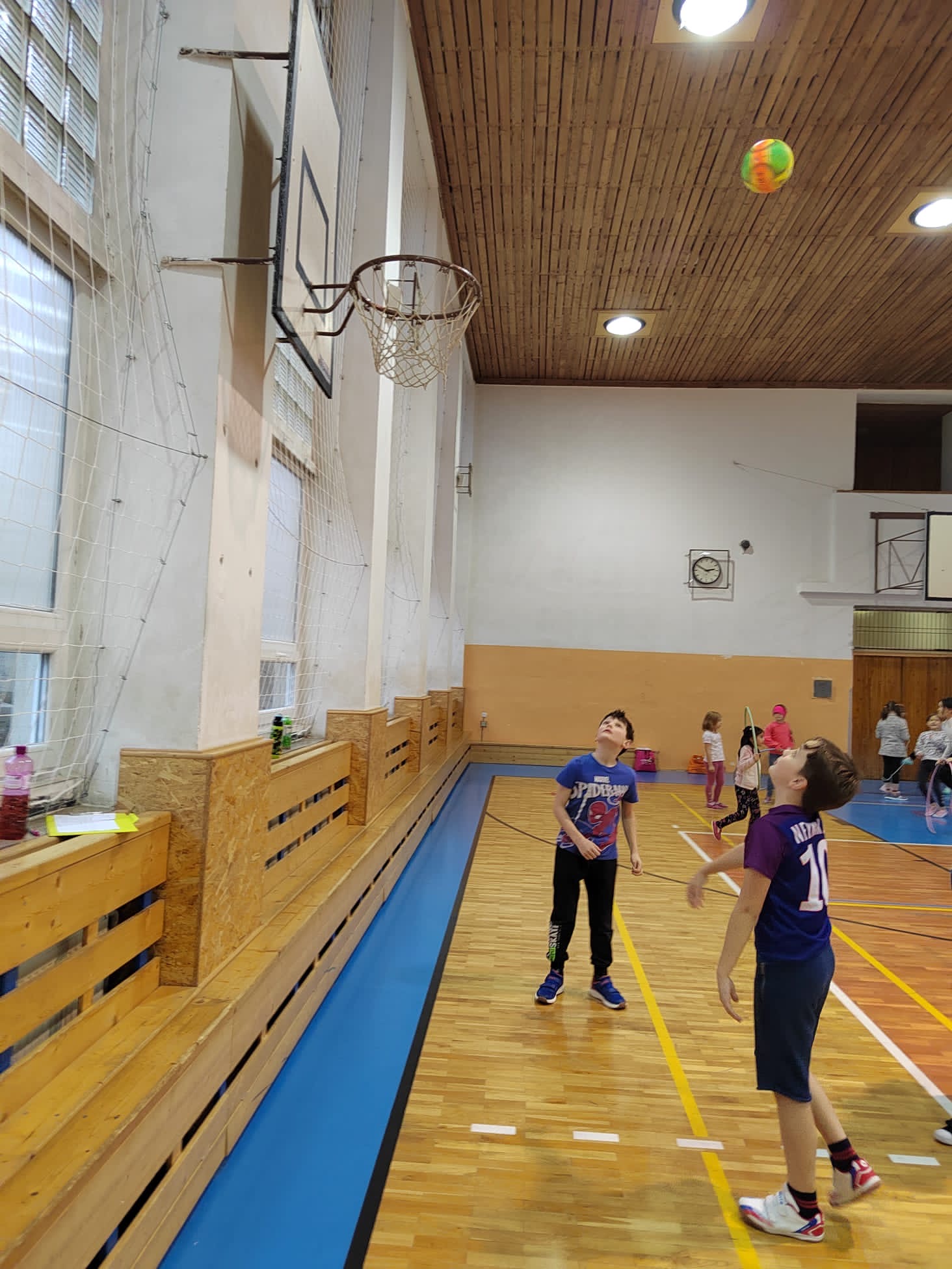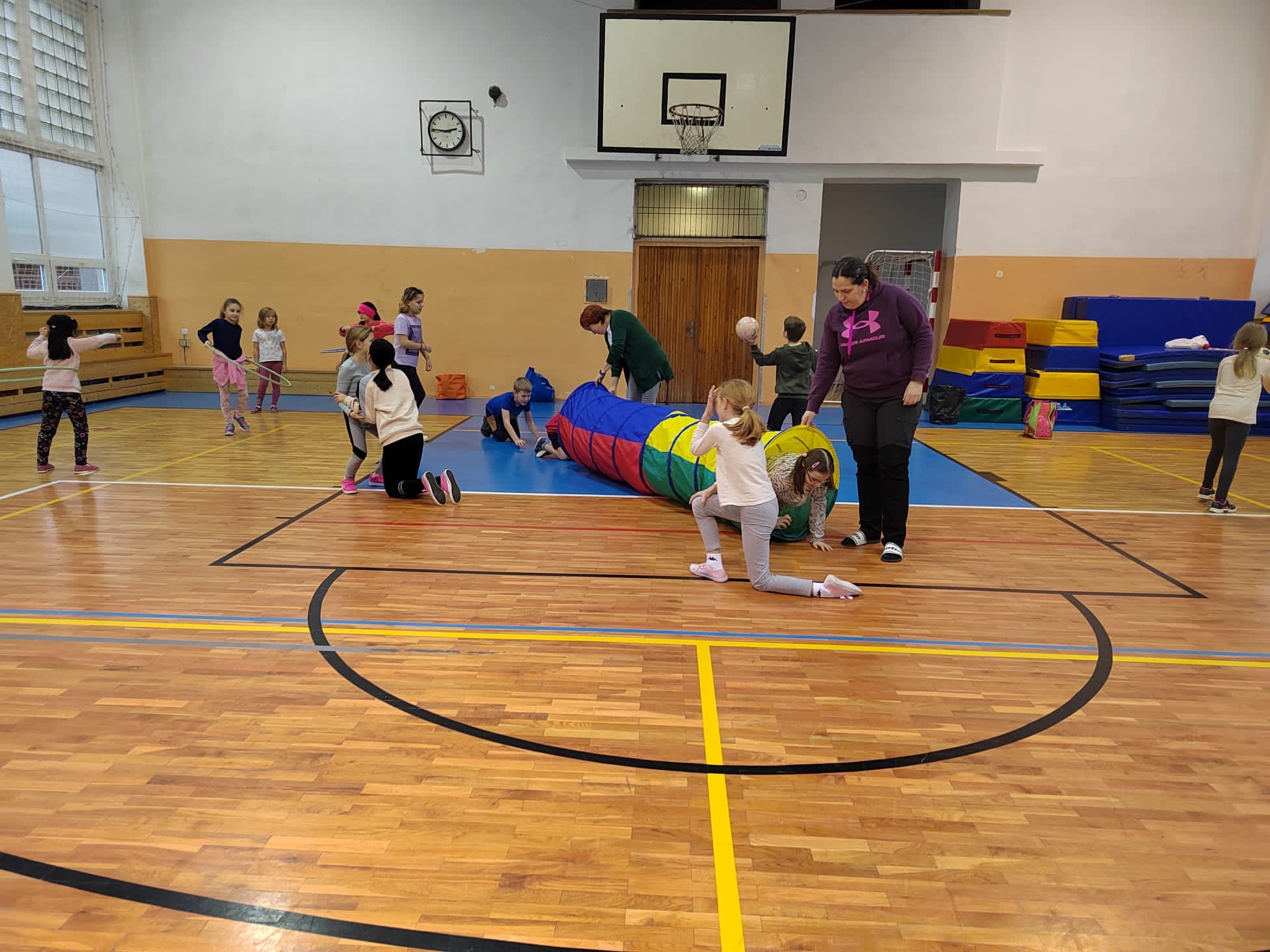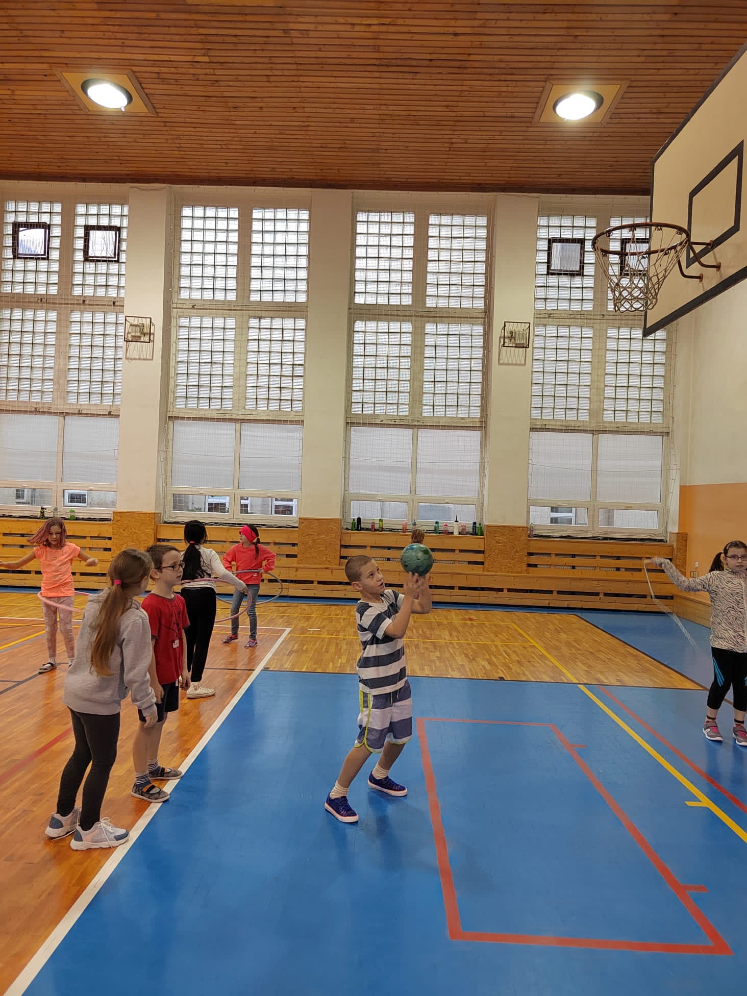 Poté se děti rozdělily do skupin a vybraly si míče, švihadla, obruče, zahrály si vybíjenou, házely na koš nebo využily prolézací tunel.