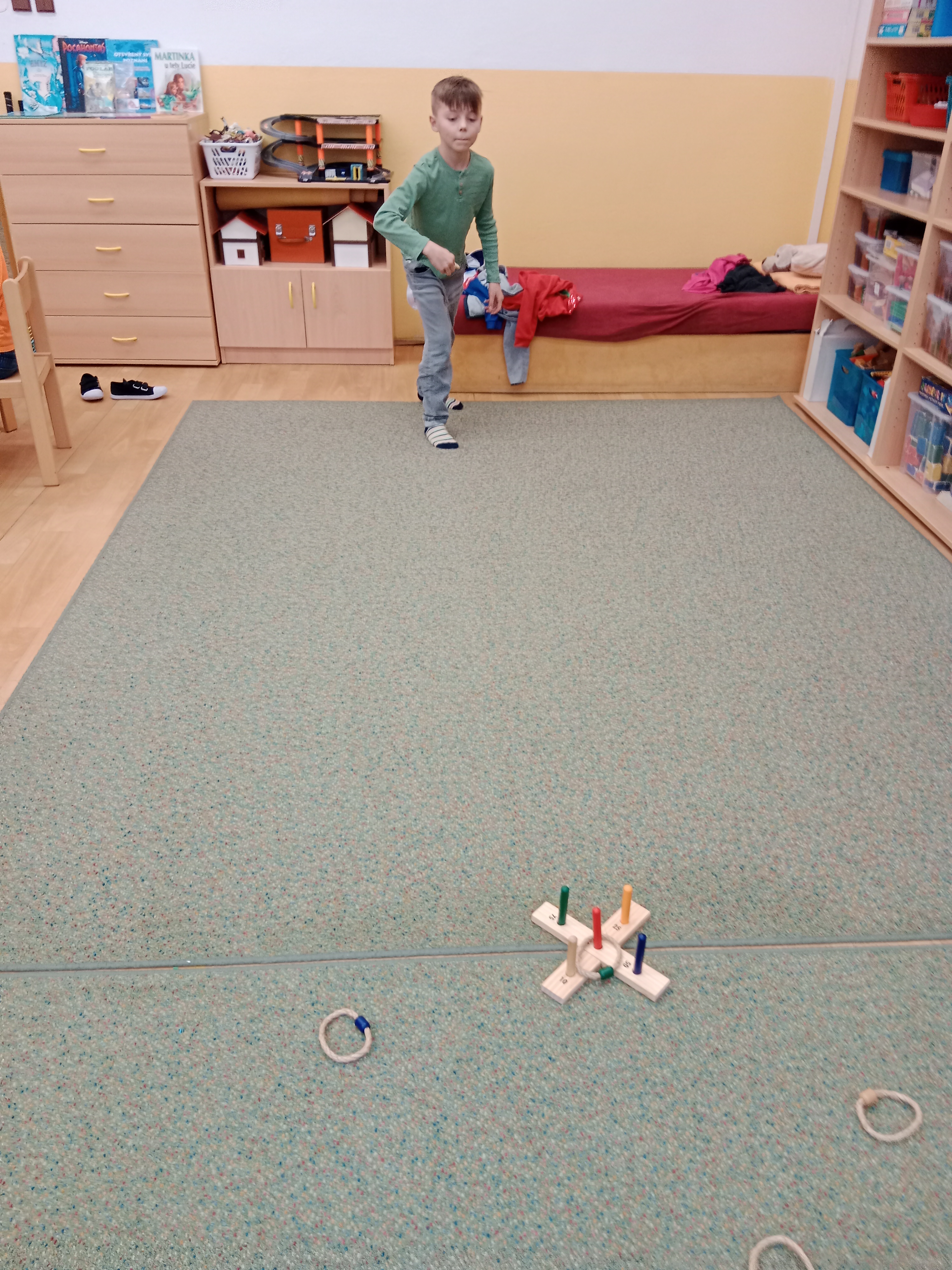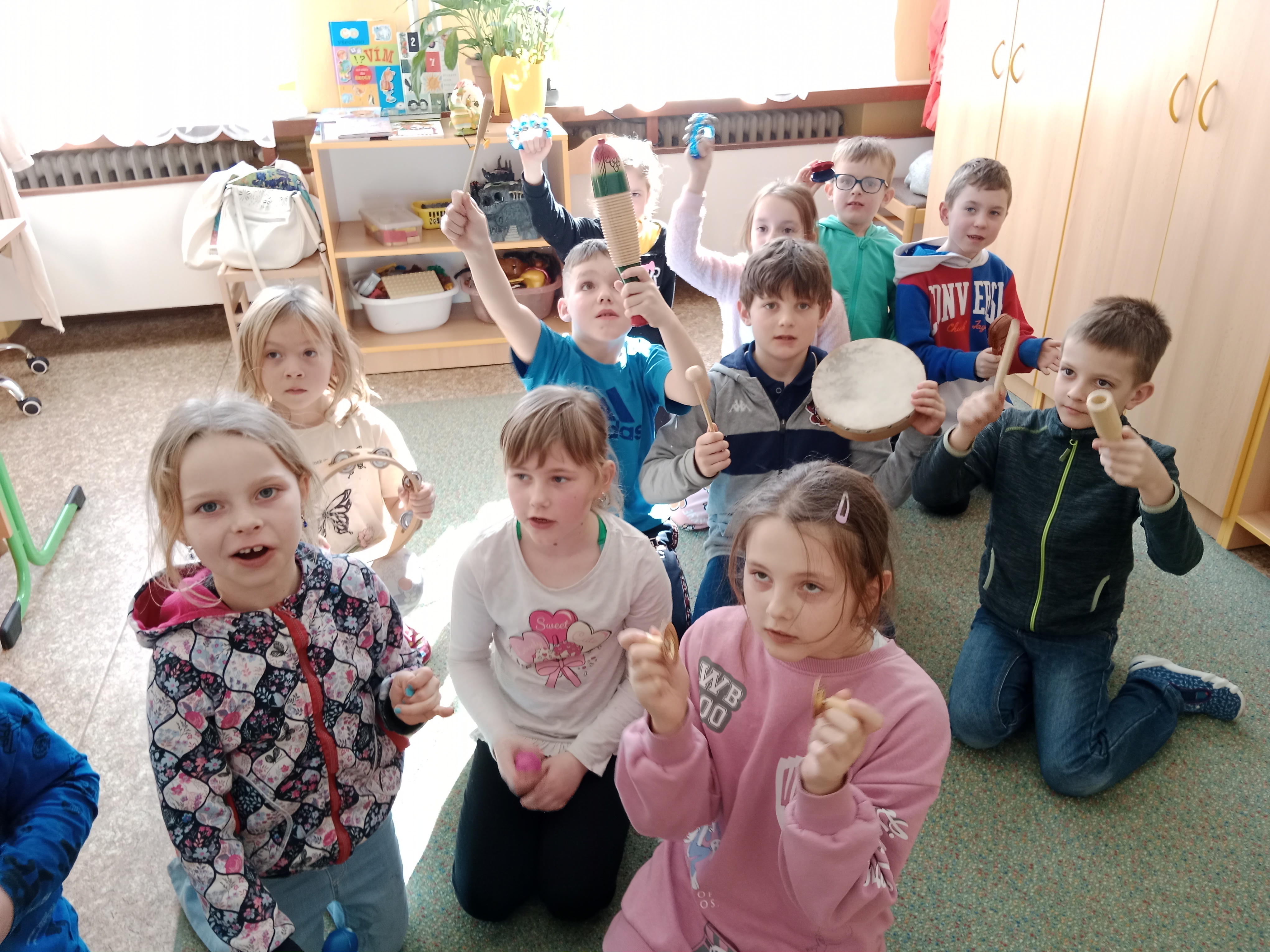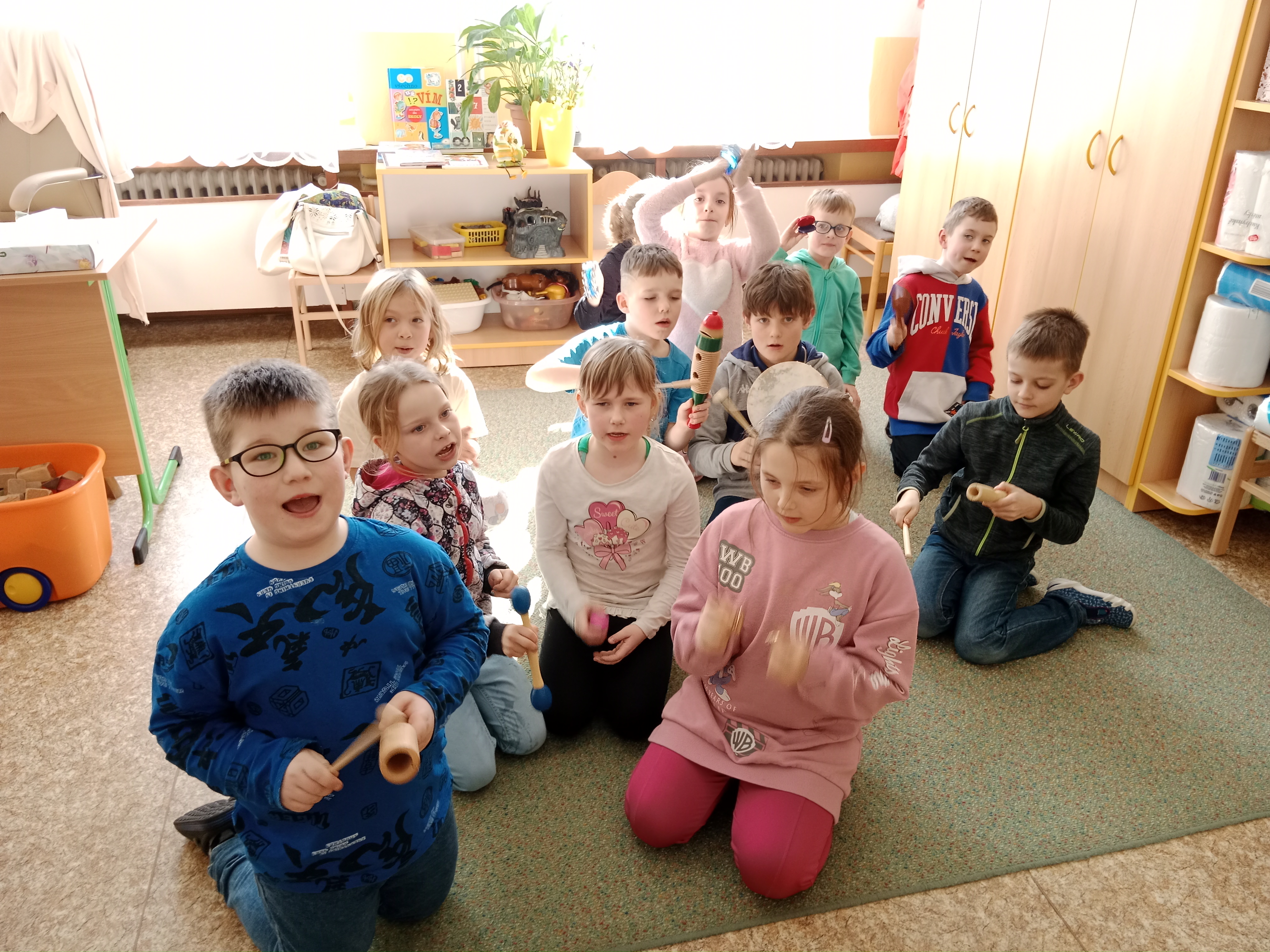 Nezapomínáme ani na zpěv a tanec, pohybové hry, zkoušeli jsme koordinační cviky.