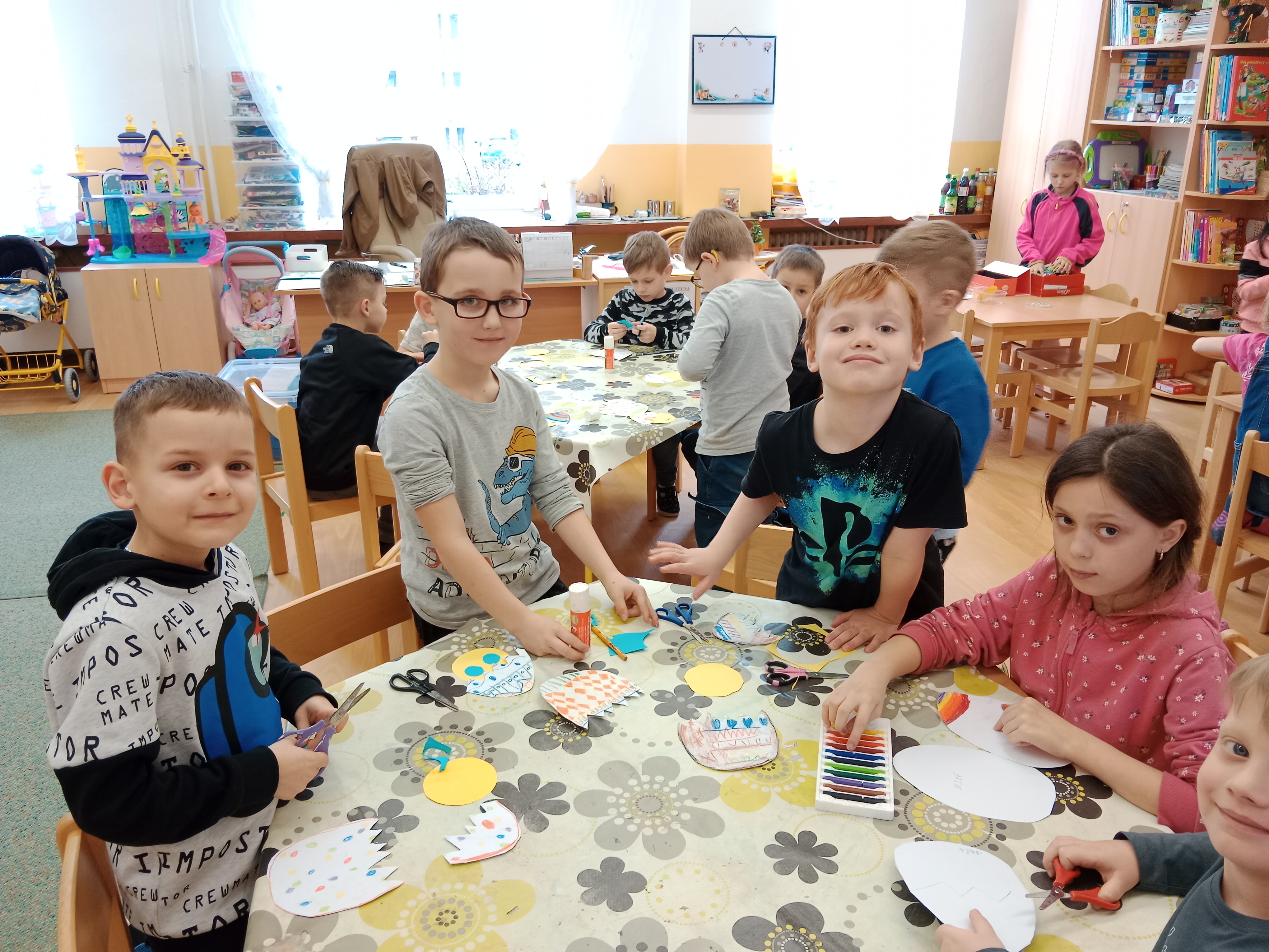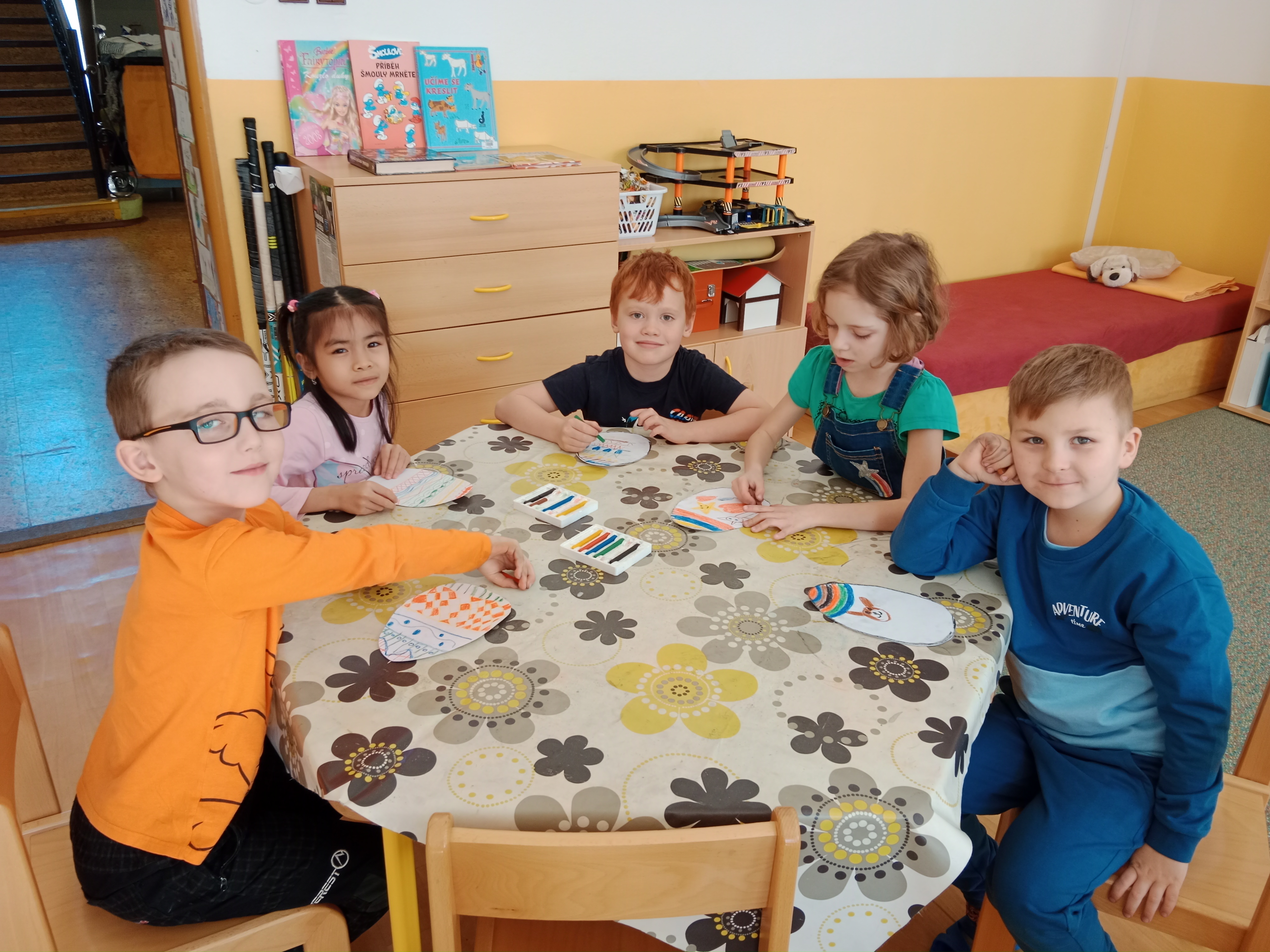 Předjaří a jaro jsme vítali spoustou aktivit v odděleních i venku.- opět při tvoření, řešení rébusů, při společných hrách například Živé pexeso, malovaná tichá pošta, Zrcadlo, Kimovka nebo Jméno, město,....a jiné.