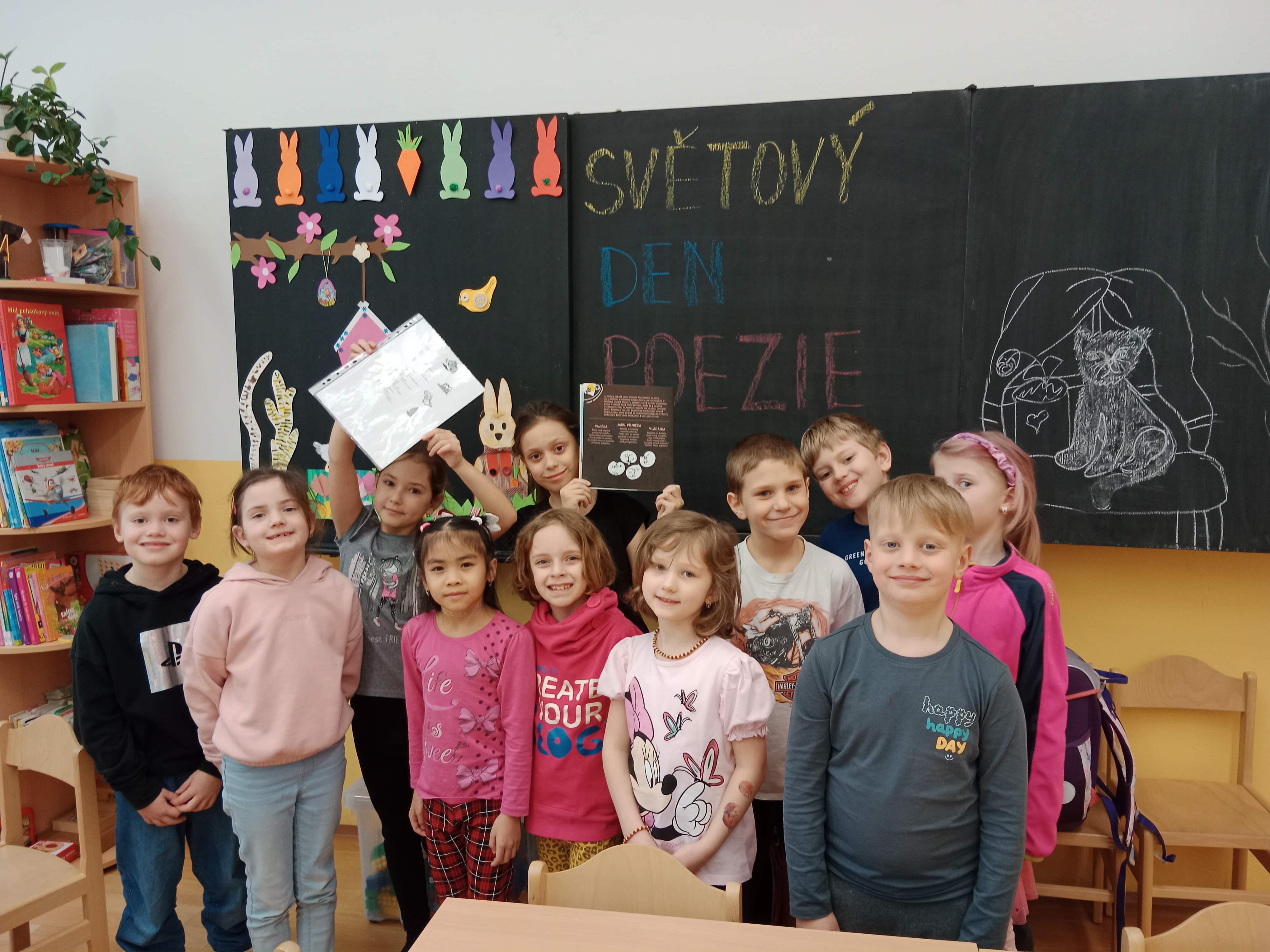 Březen vždy patří převážně knihám, spisovatelům, ilustrátorům, četbě a poezii. Využíváme knihy z naší knihovny, připravujeme výstavky v odděleních, děti nosí ukázat své oblíbené knihy z domova. Nechybí ani dramatizace známých pohádek, tematické křížovky, kvízy.