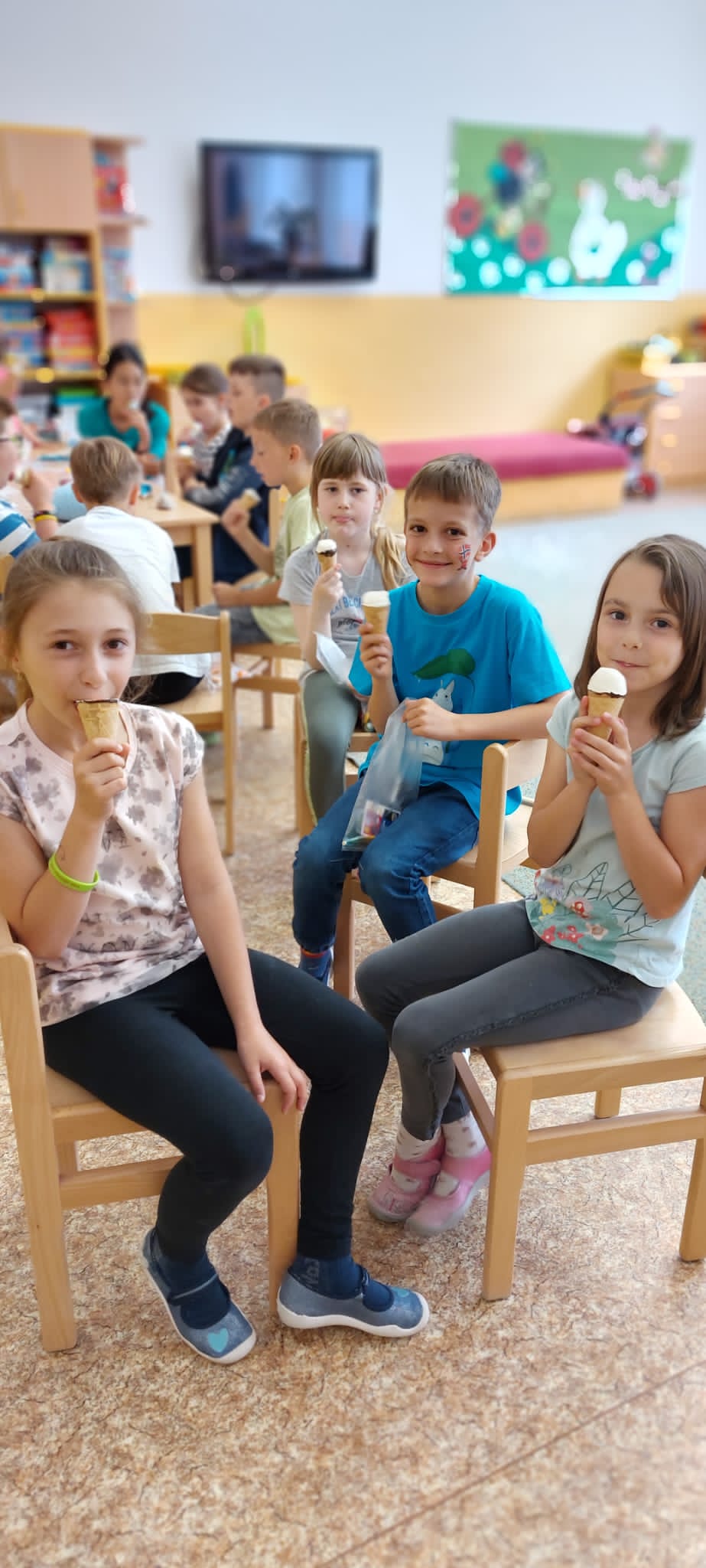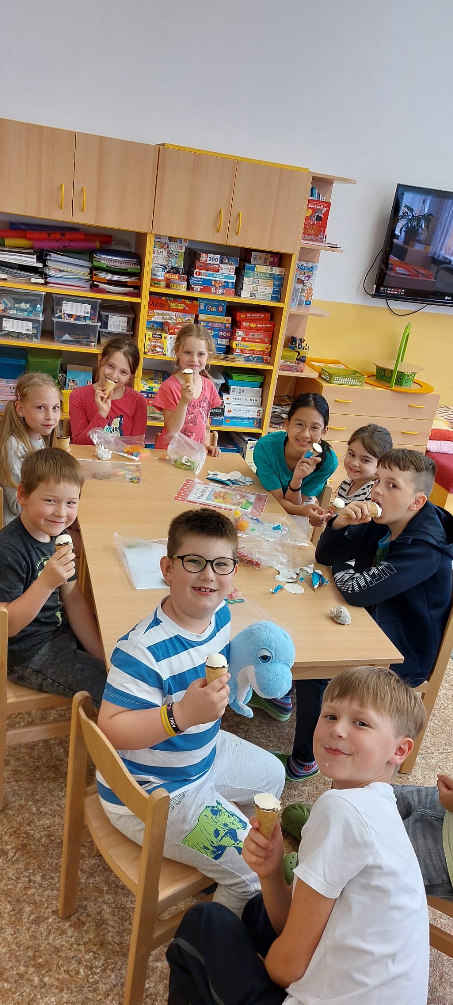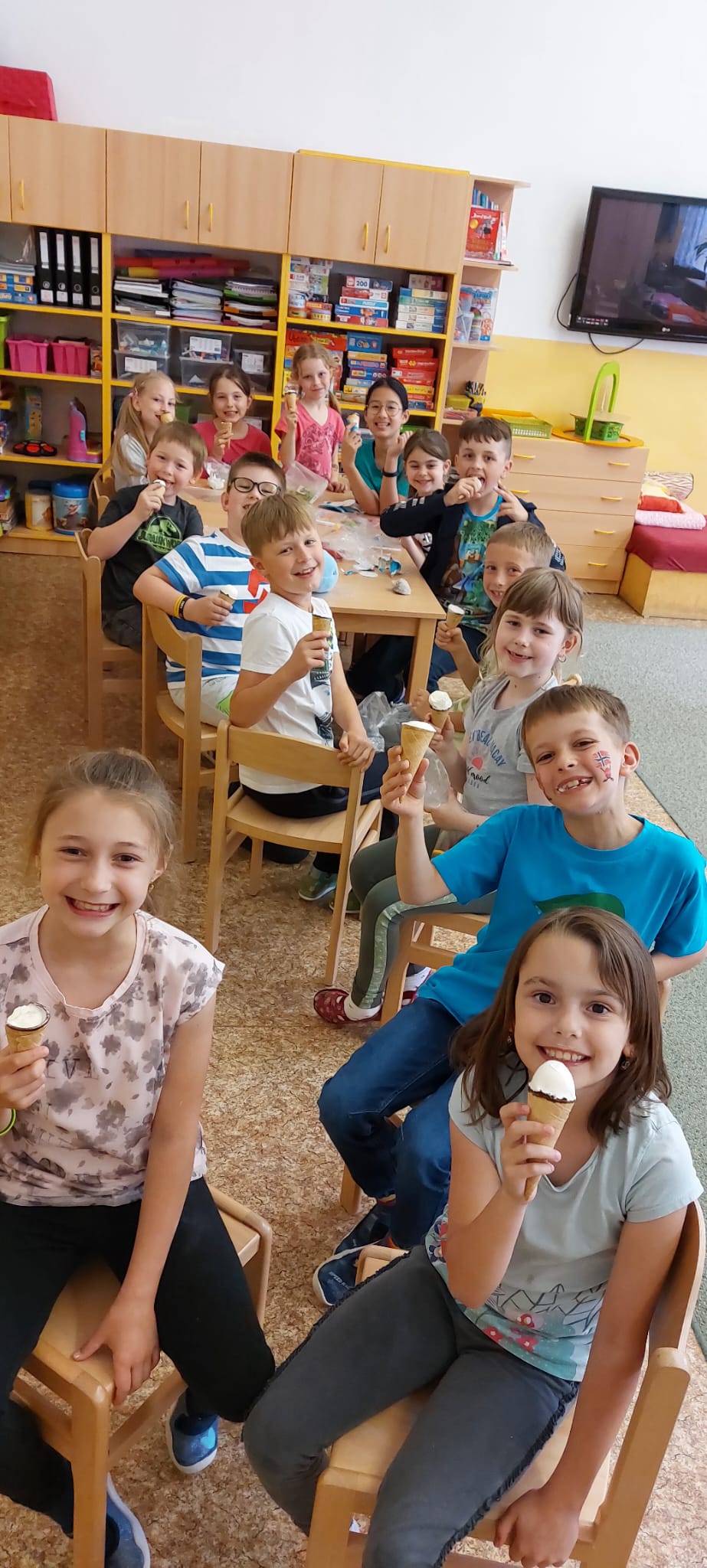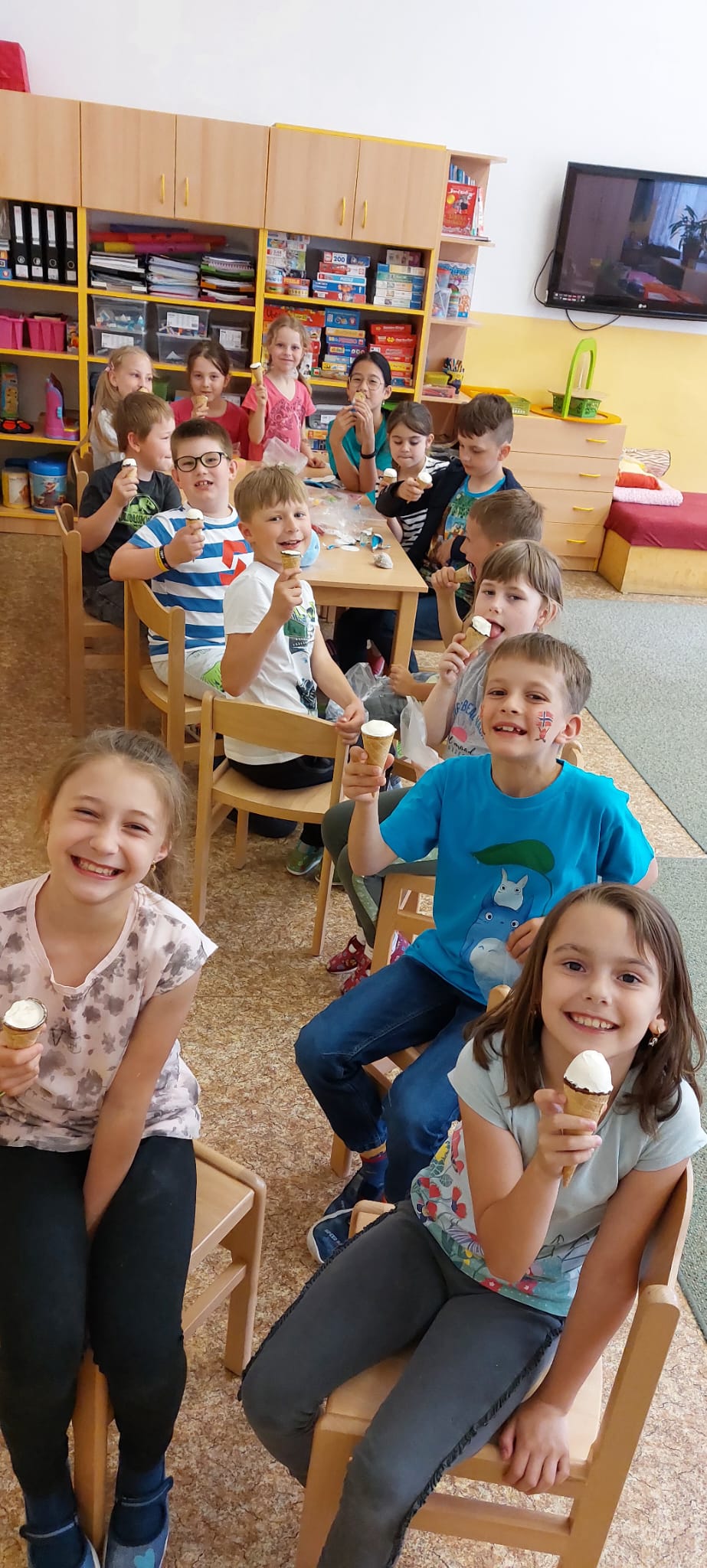 Ve čtvrtek si své nasbírané body proměnily v takzvaném krámku za pěkné věcné ceny nebo sladkosti. Nečekaným vyvrcholením oslav byla zmrzlina v kornoutku, kterou se všichni společně osvěžili.