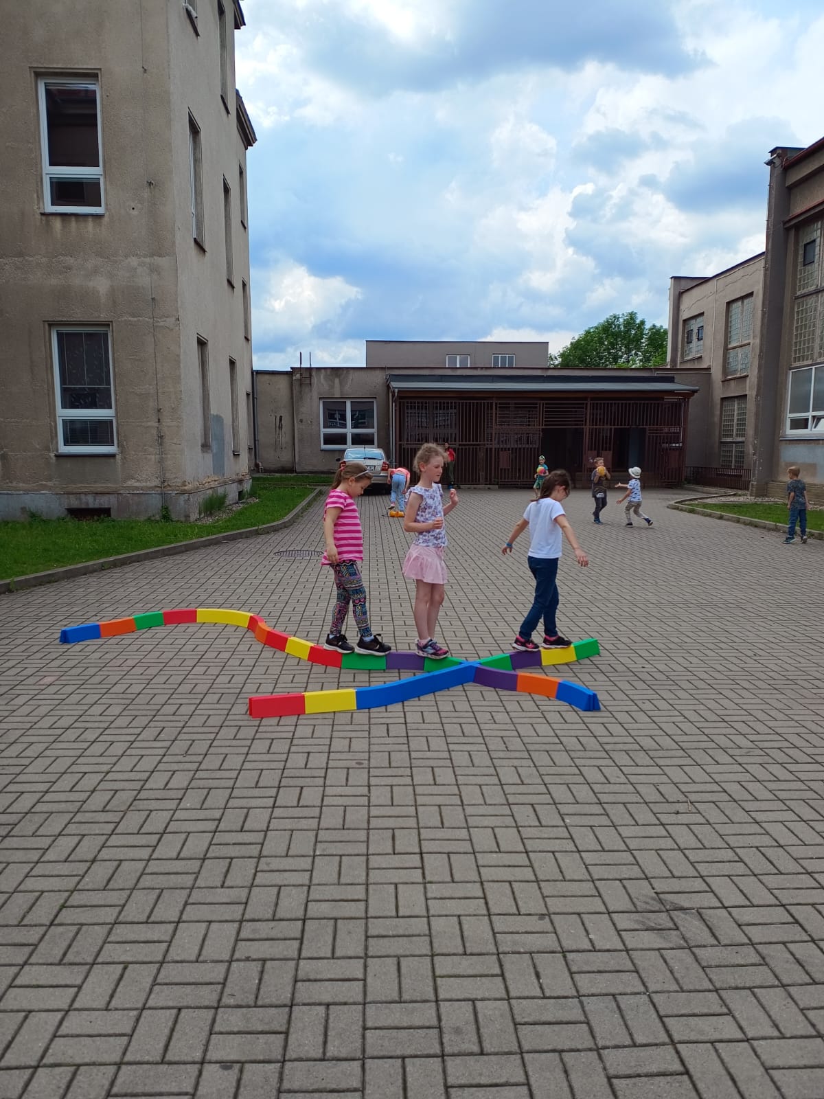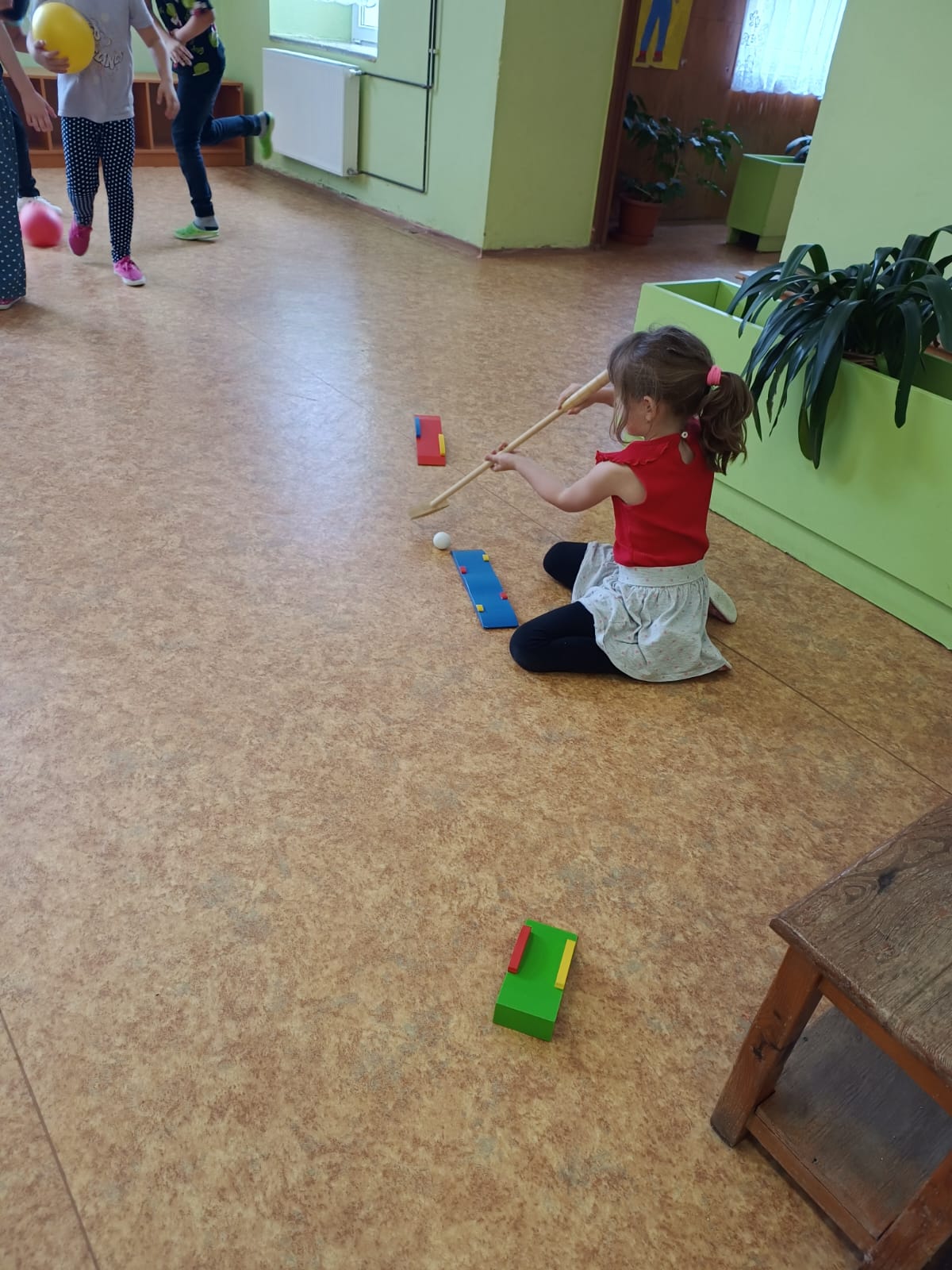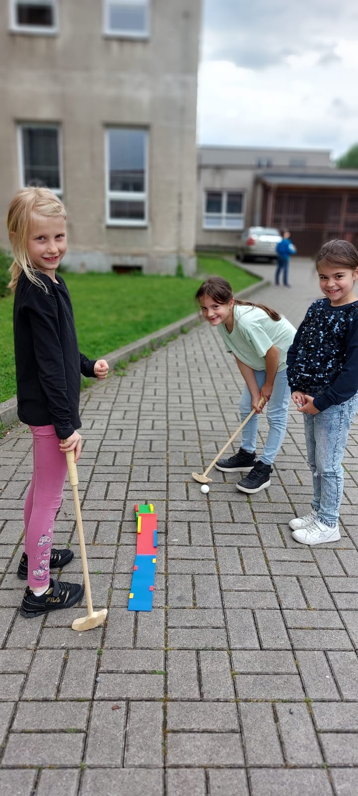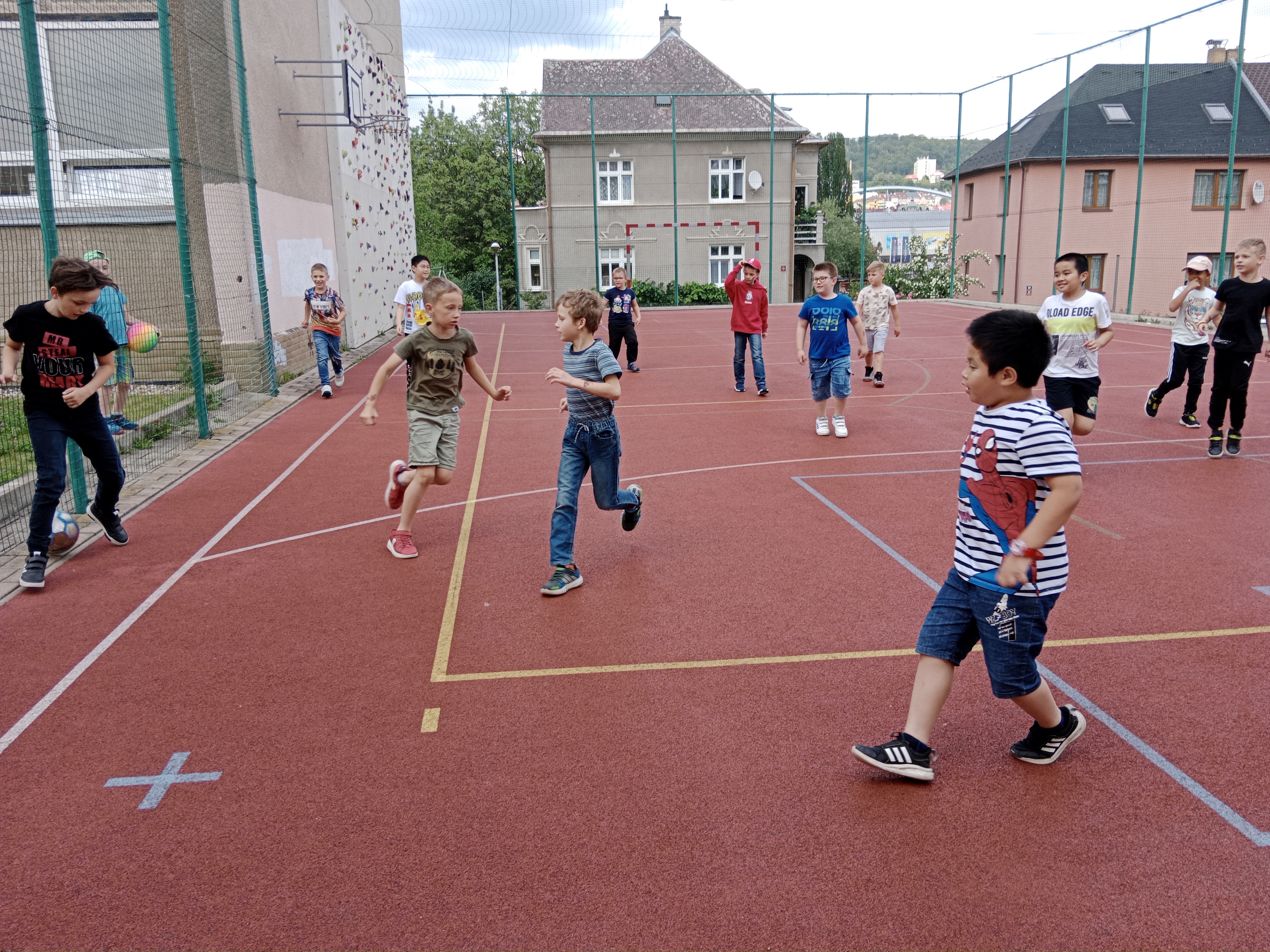 Děti si užívaly oslavy také venku, kde měly na výběr plno možností vyžití, například kopaná, chůze po kladině, na chůdách, hra Golf, kuželky, naše další sportovní vybavení, také tanec a zpěv při hudbě.
