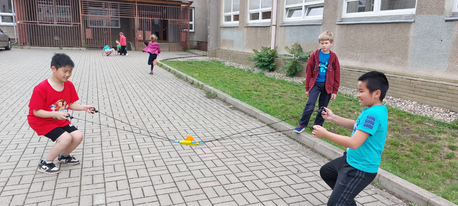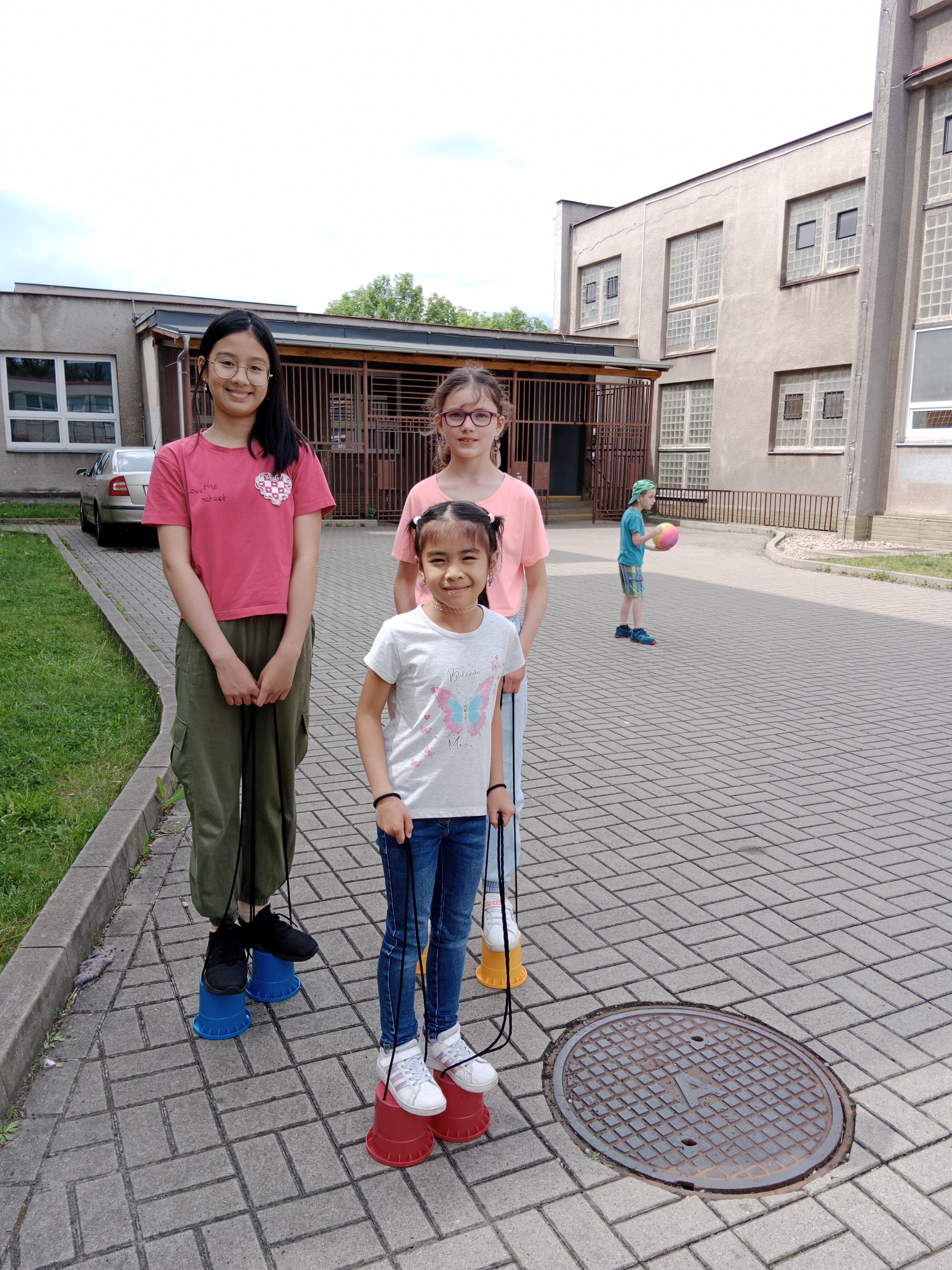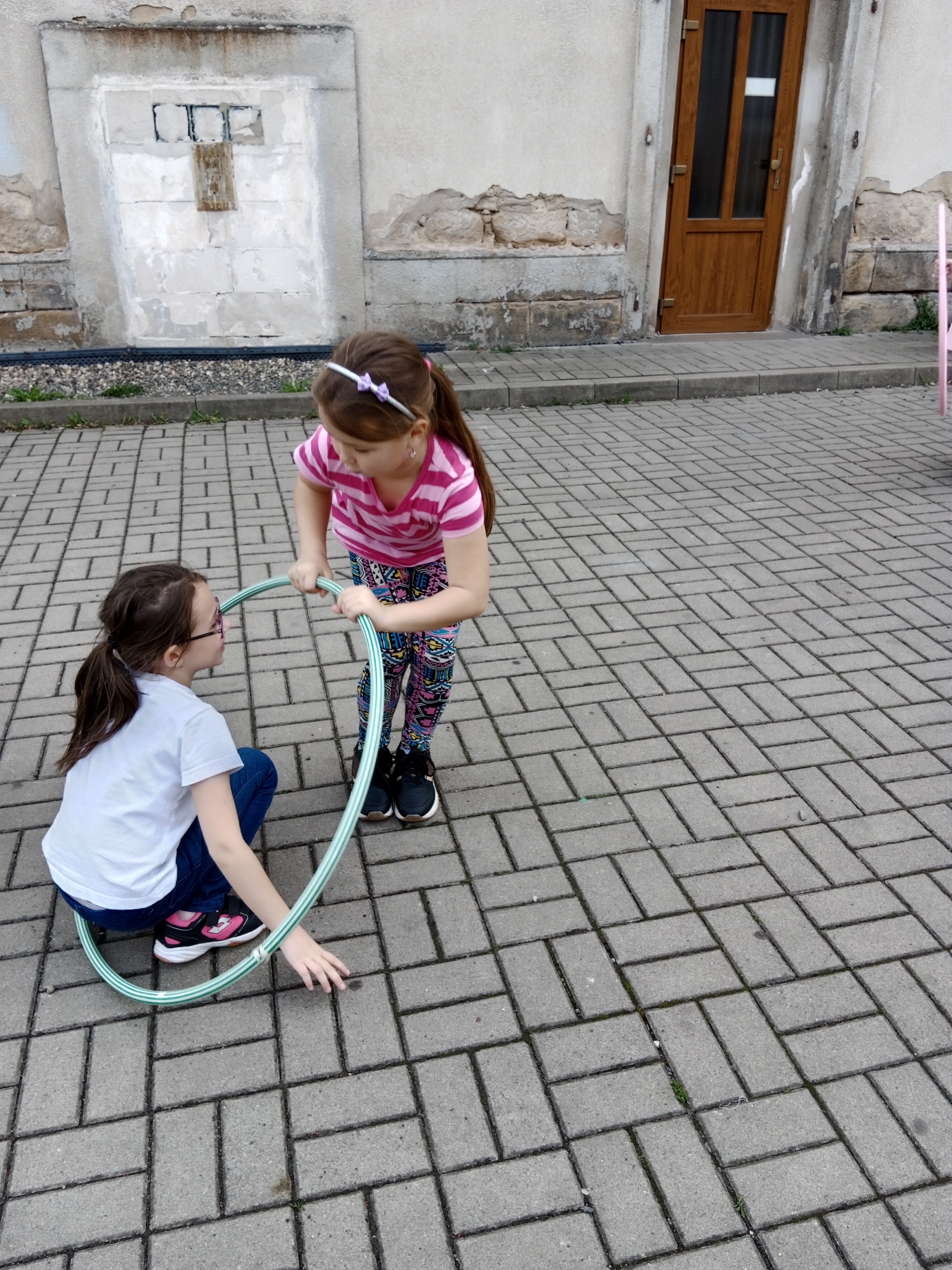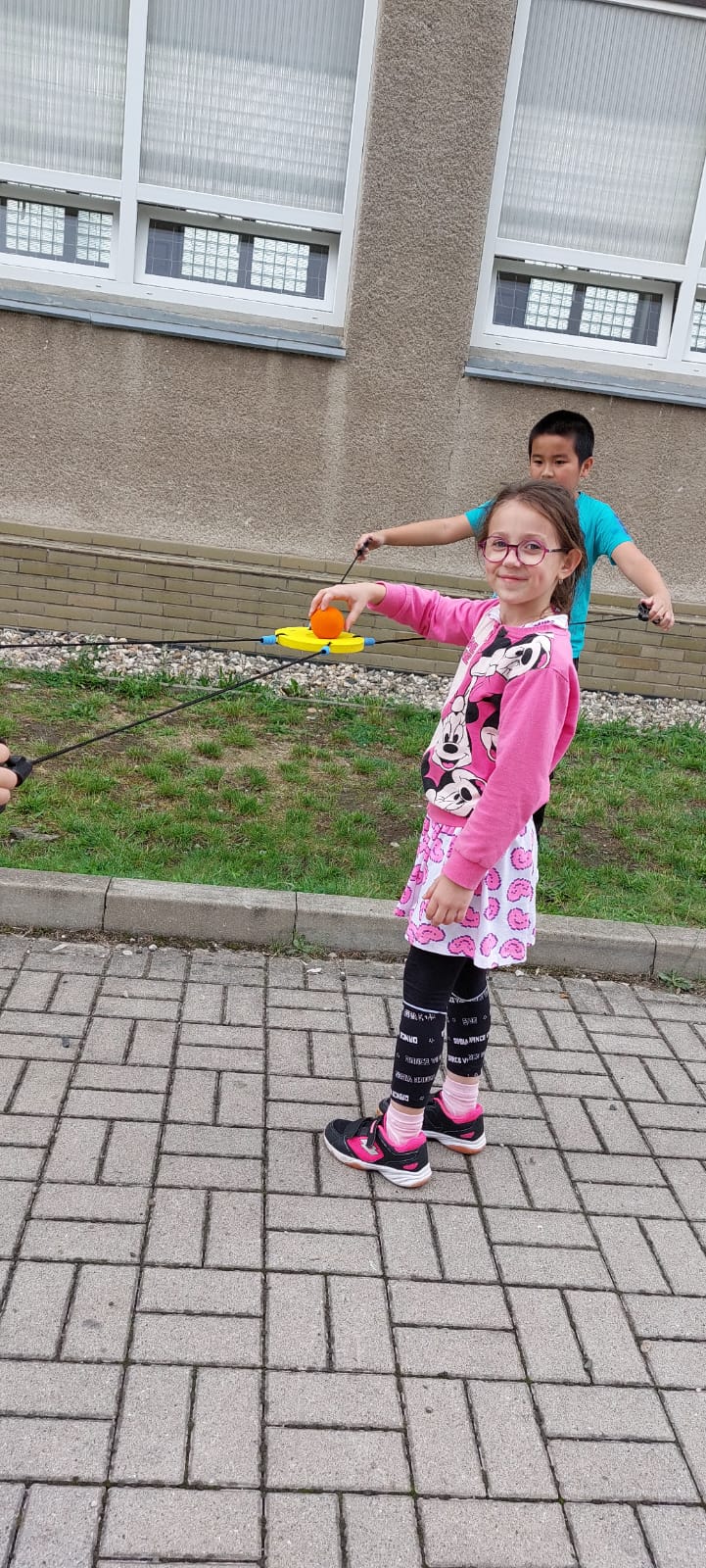 Děti si užívaly oslavy také venku, kde měly na výběr plno možností vyžití, například kopaná, chůze po kladině, na chůdách, hra Golf, kuželky, naše další sportovní vybavení, také tanec a zpěv při hudbě.