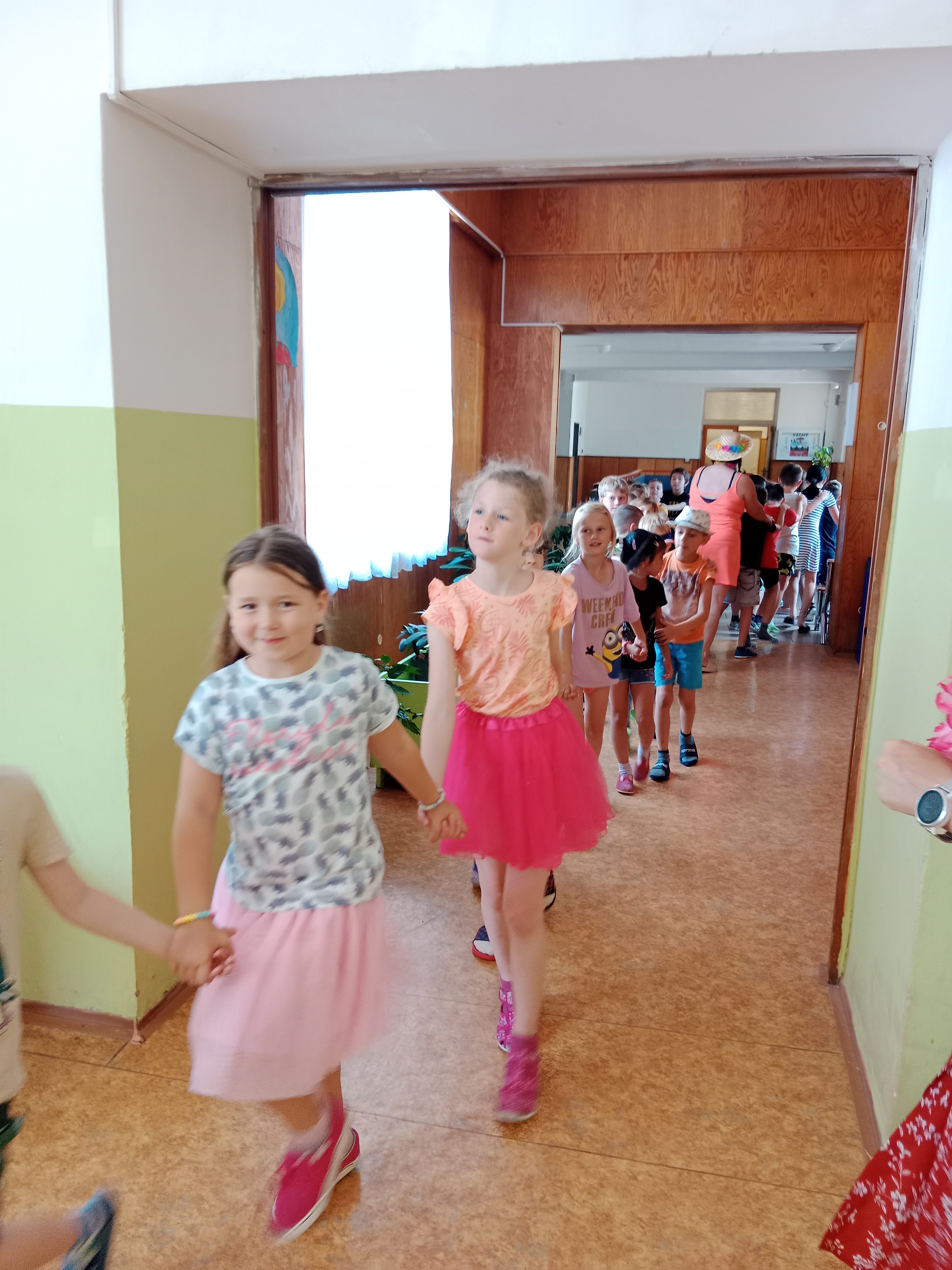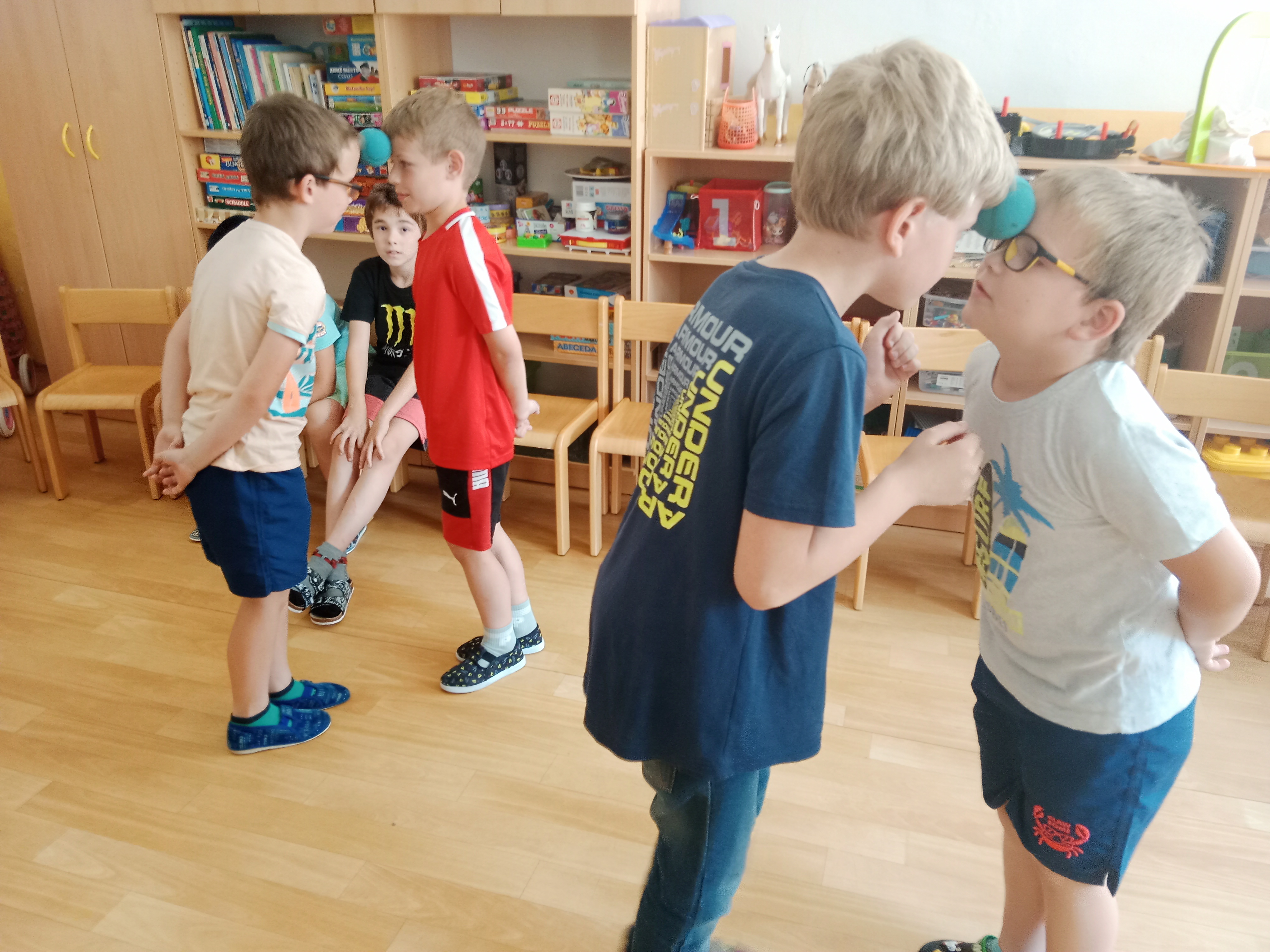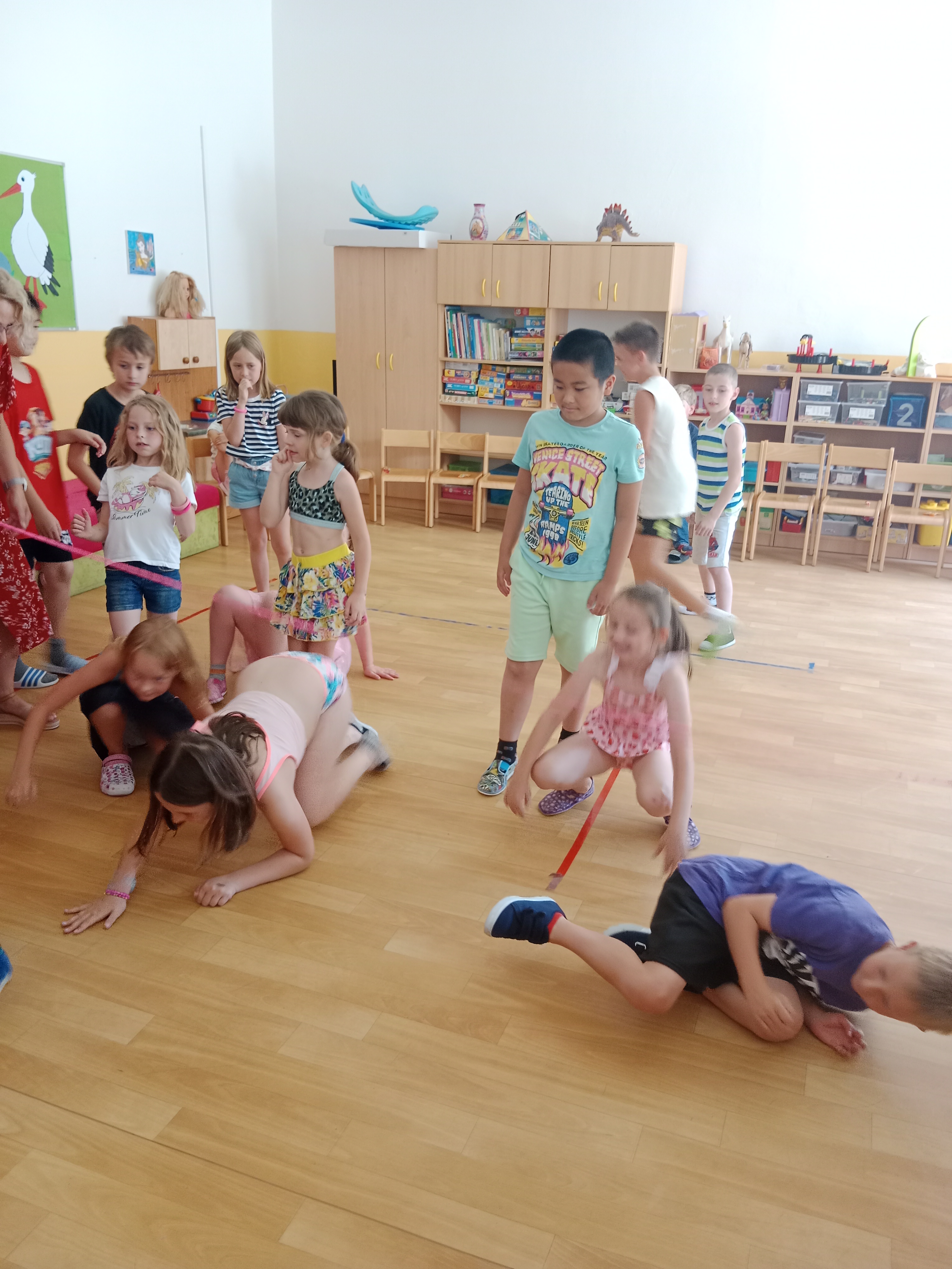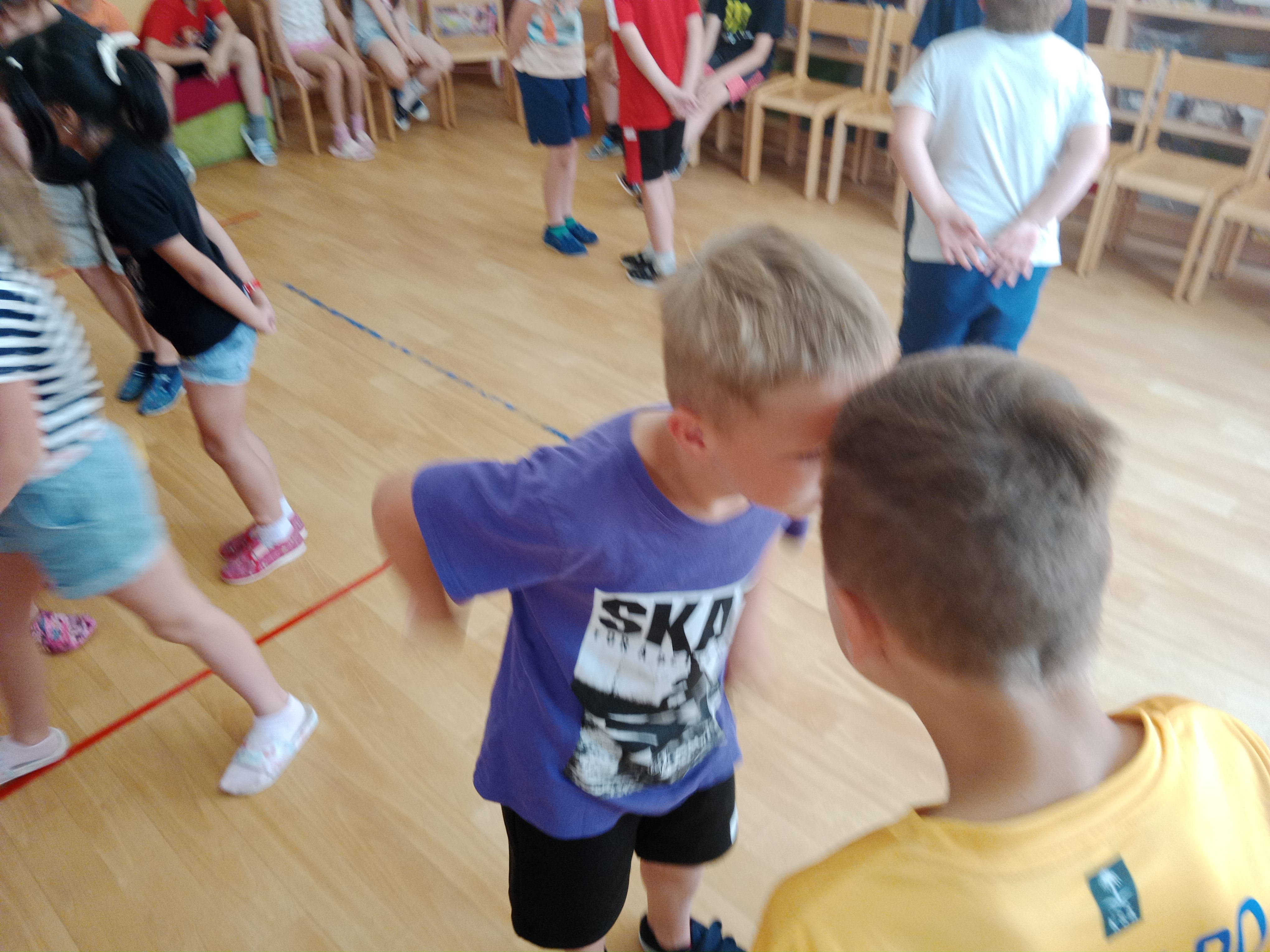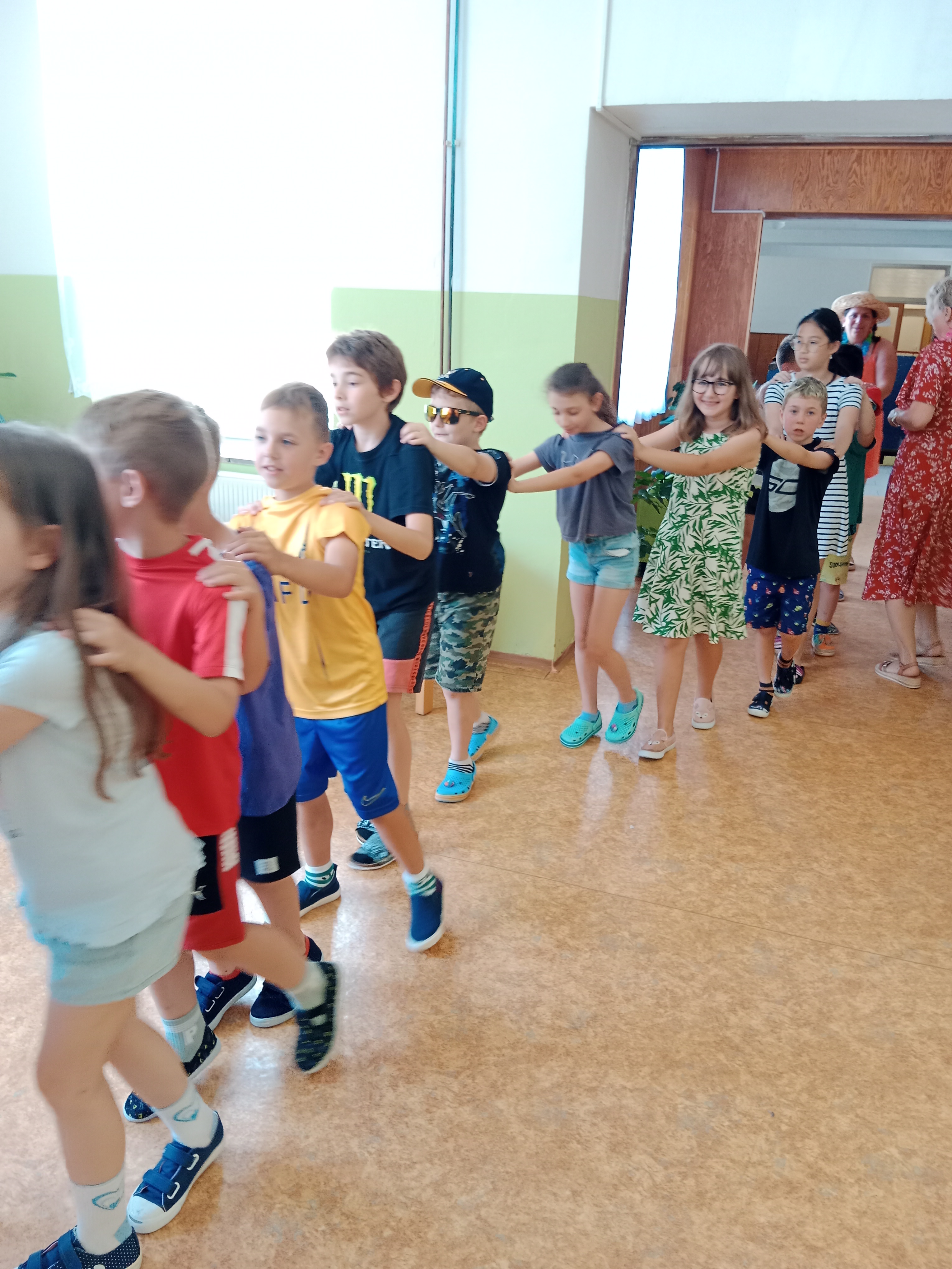 Děti se předvedly ve svých letních, prázdninových ,,outfitech." Tančili jsme a zpívali na známé hity a dětské písničky. Odpoledne jsme si zpestřili soutěží v tanci dvojic s míčkem a hrou Na sochy.