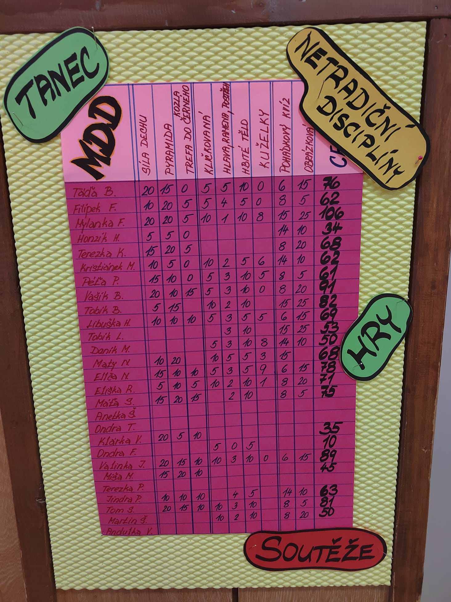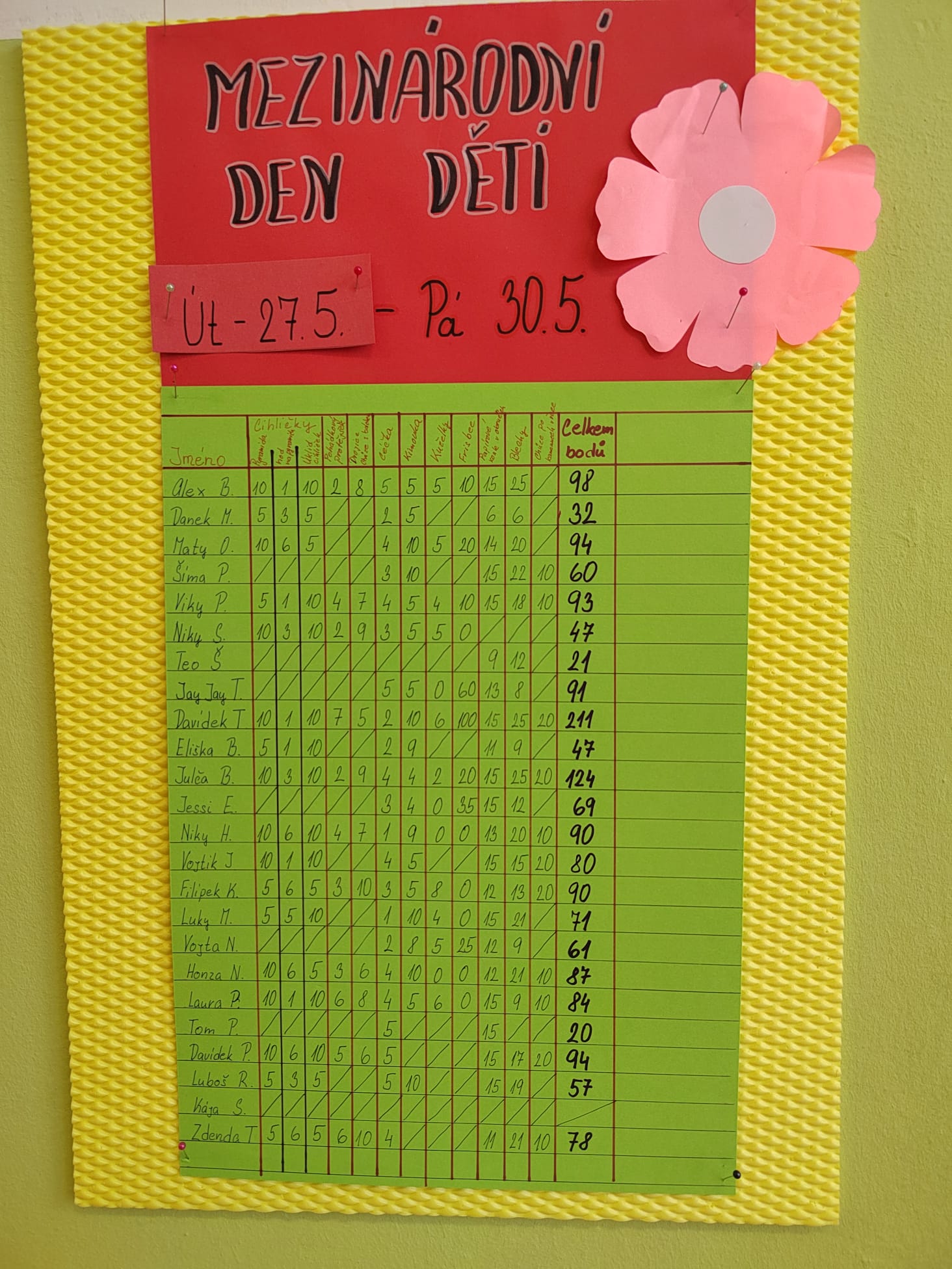 Paní vychovatelky si pro děti v každém oddělení připravily spoustu zábavných soutěží, kvízů a her, za které děti sbíraly body. Na konci týdne si své nasbírané bodíky proměnily v takzvaném krámku za pěkné věcné ceny nebo sladkosti.