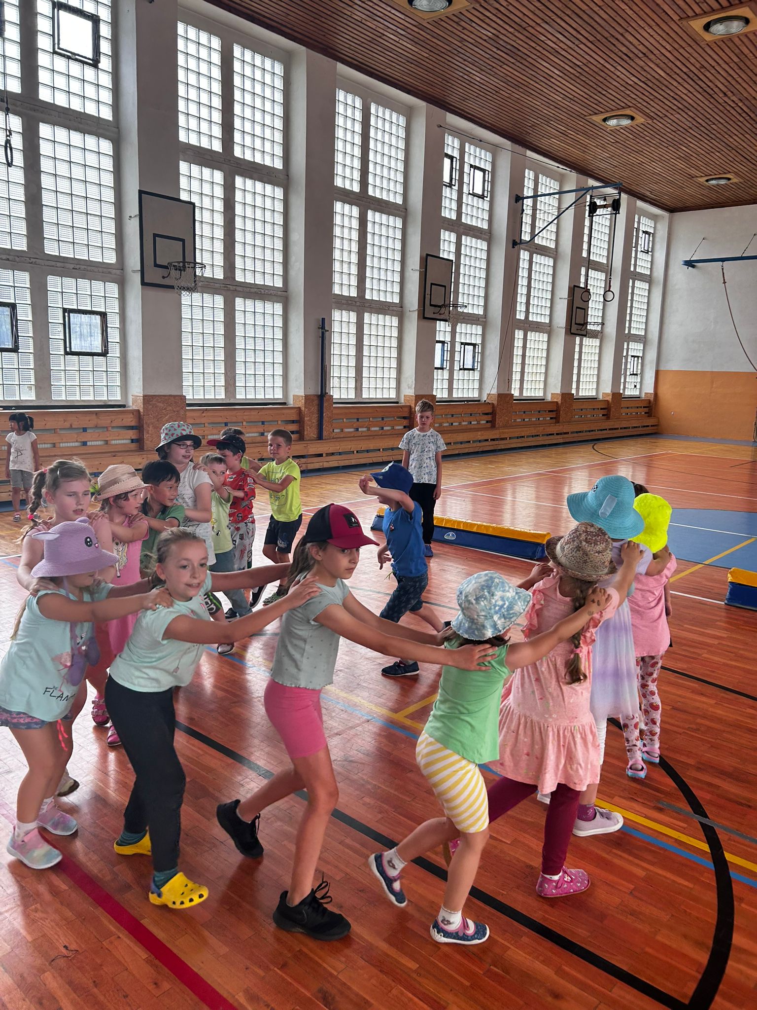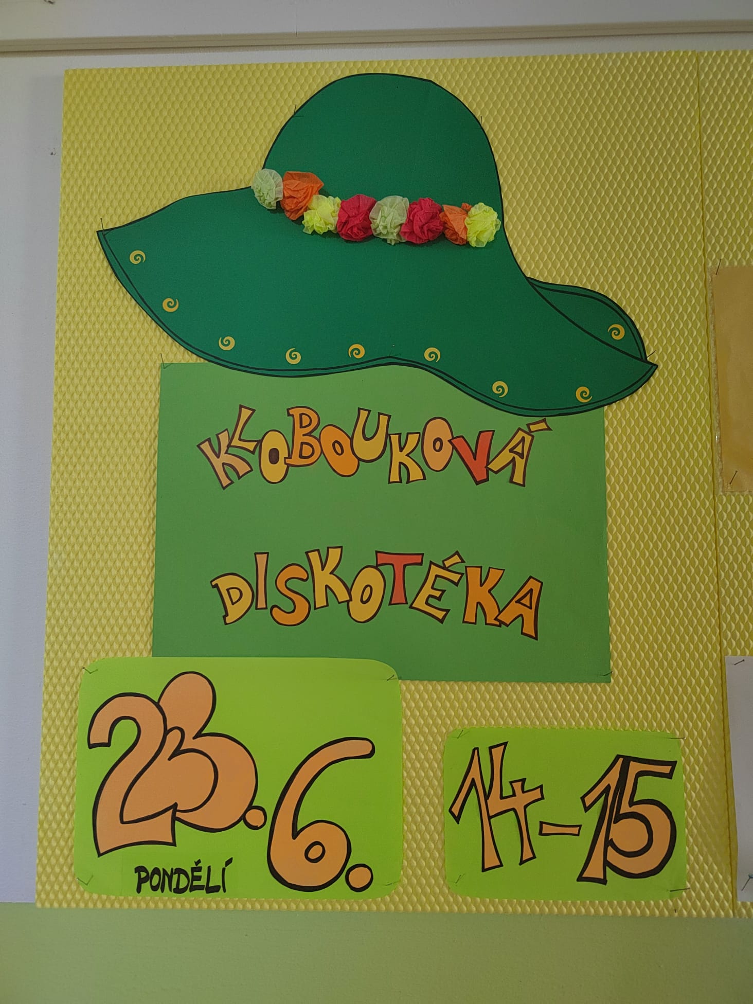 V pondělí 23. června jsme se rozloučili s letošním školním rokem v tělocvičně při KLOBOUKOVÉ DISKOTÉCE. Děti si přinesly své oblíbené kšiltovky, čepice nebo kloboučky. Tančili jsme a zpívali na známé hity a dětské písničky. Diskotéku jsme si moc užili. Všem přejeme KRÁSNÉ PRÁZDNINY!!!