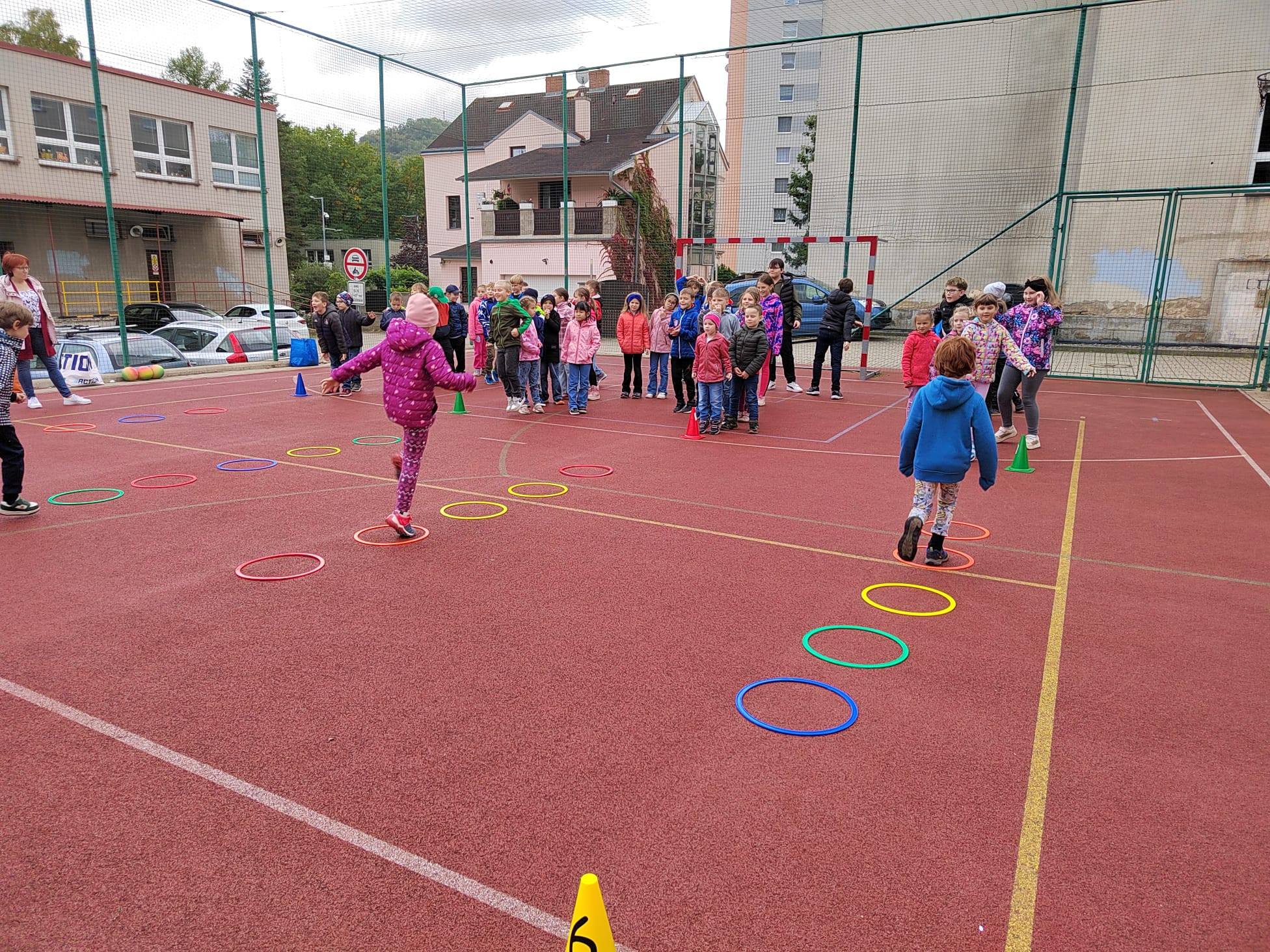 Děti byly rozděleny do čtyř týmů a soutěžily v disciplínách jako například běh ke kuželu, kutálení míče, skoky v kruzích. Rozvíjely svou rychlost, obratnost a koordinaci.