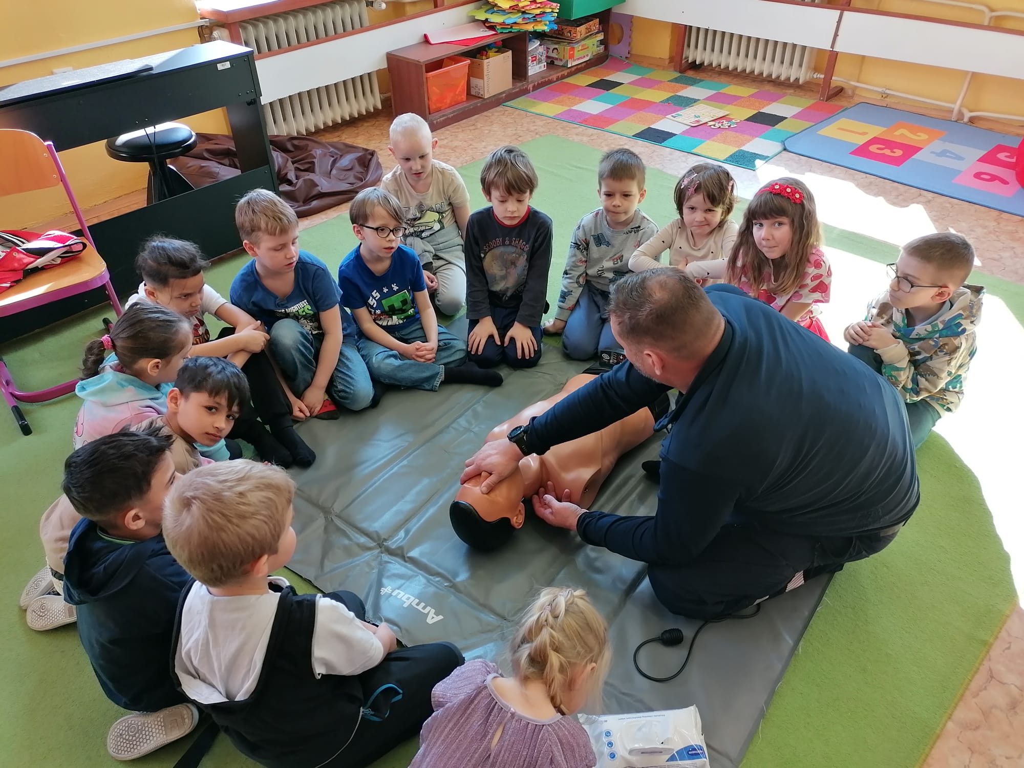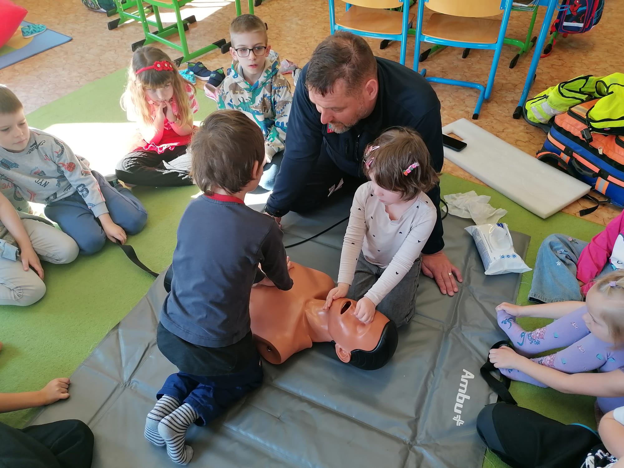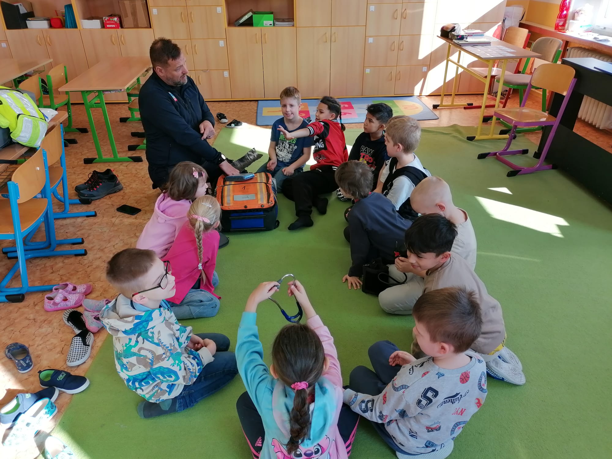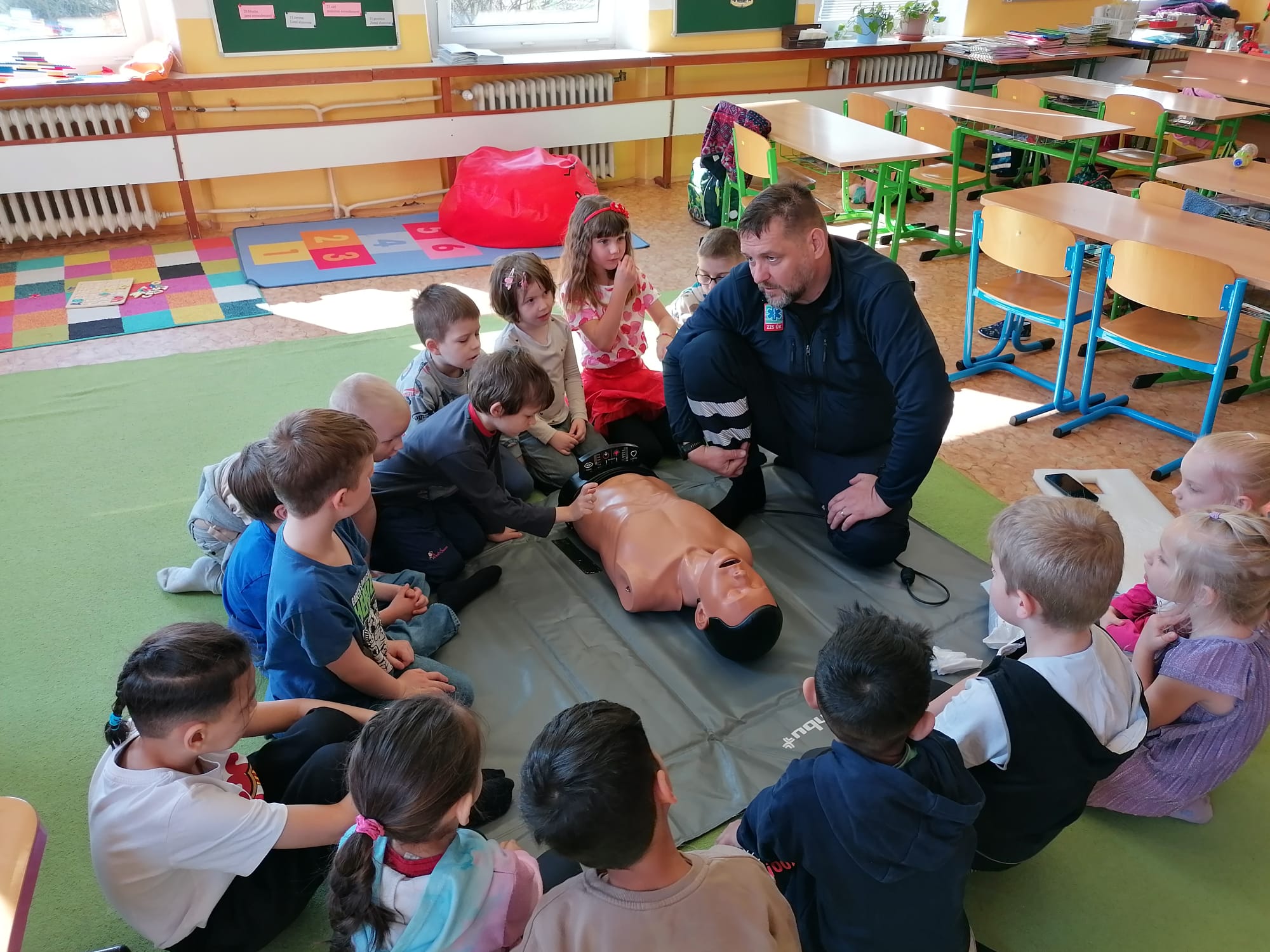 Jan Charvát, záchranář děčínské záchranky s cca 20letou praxí, přišel za našimi dětmi, aby jim ukázal základy první pomoci a zodpověděl jim zvídavé otázky ohledně práce záchranáře.