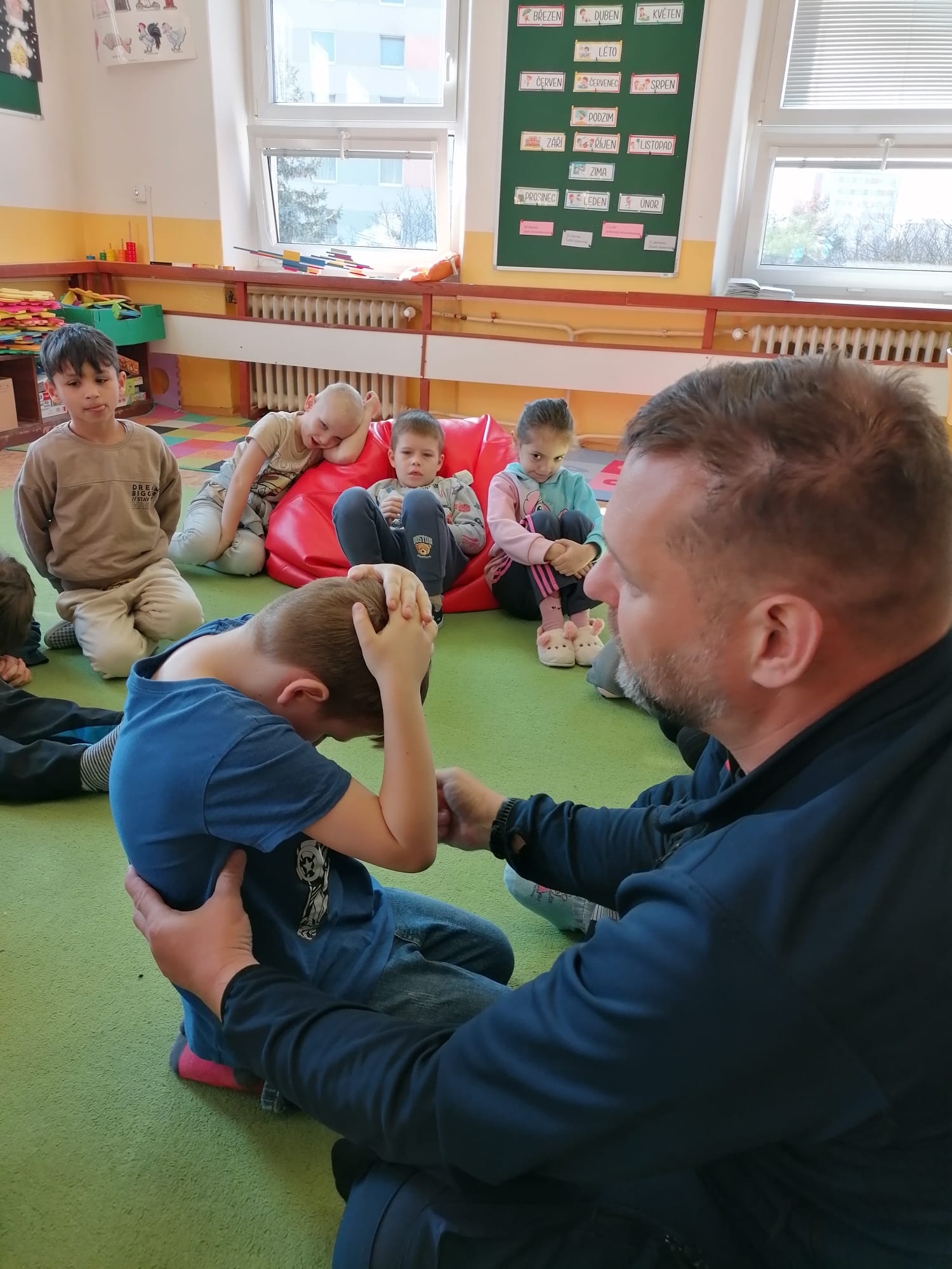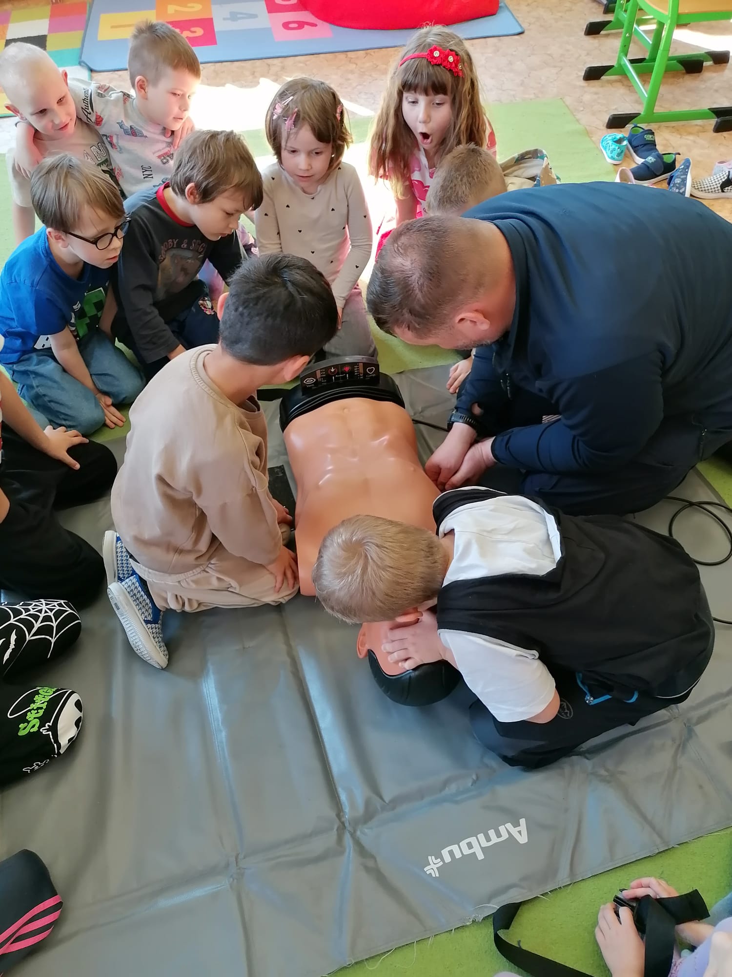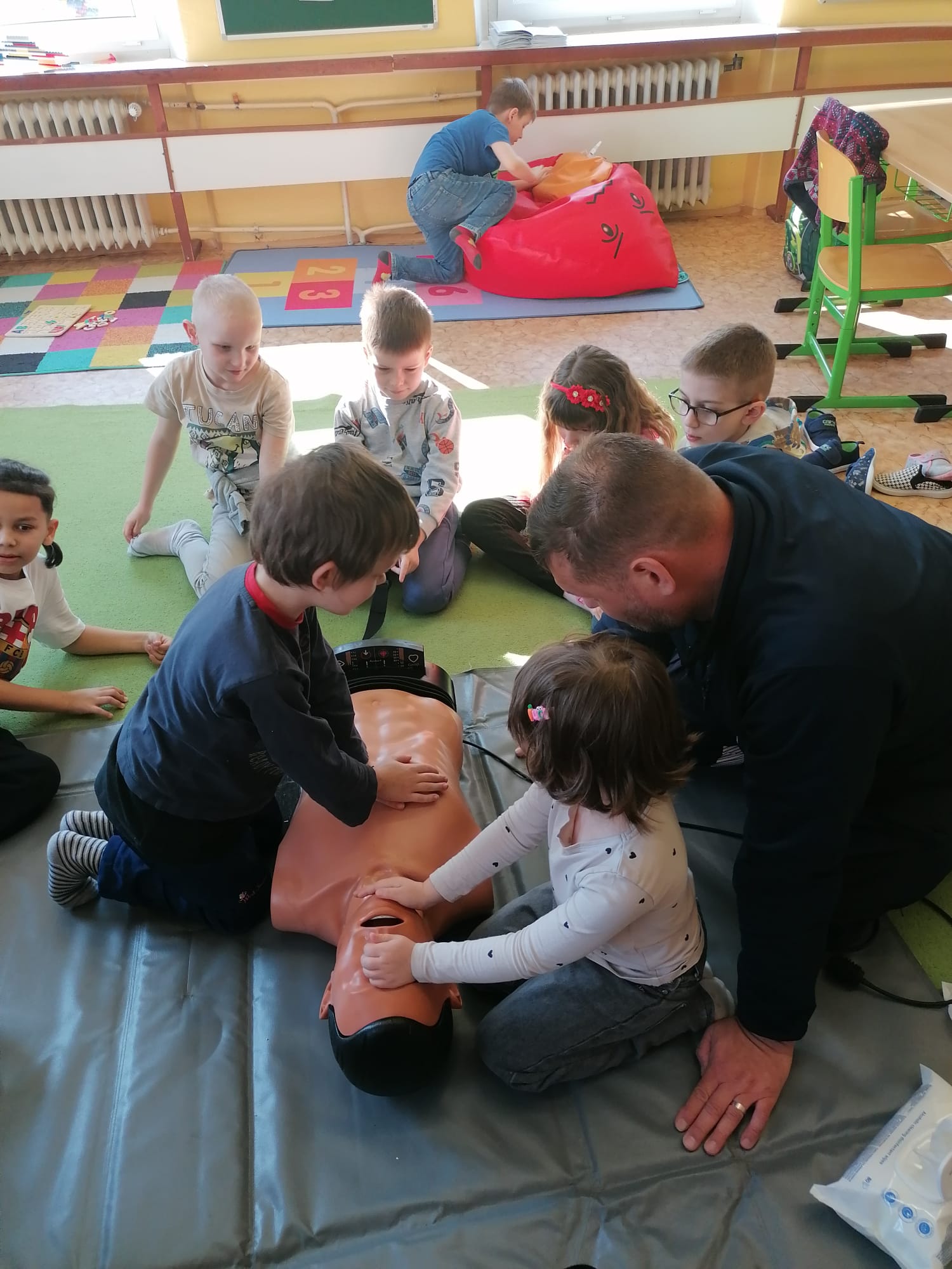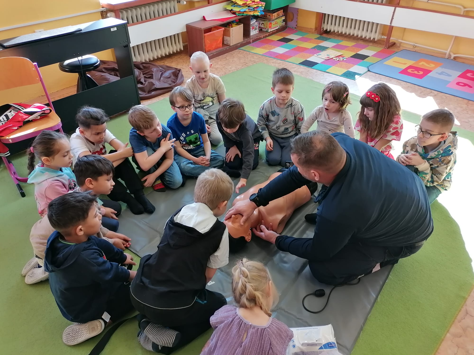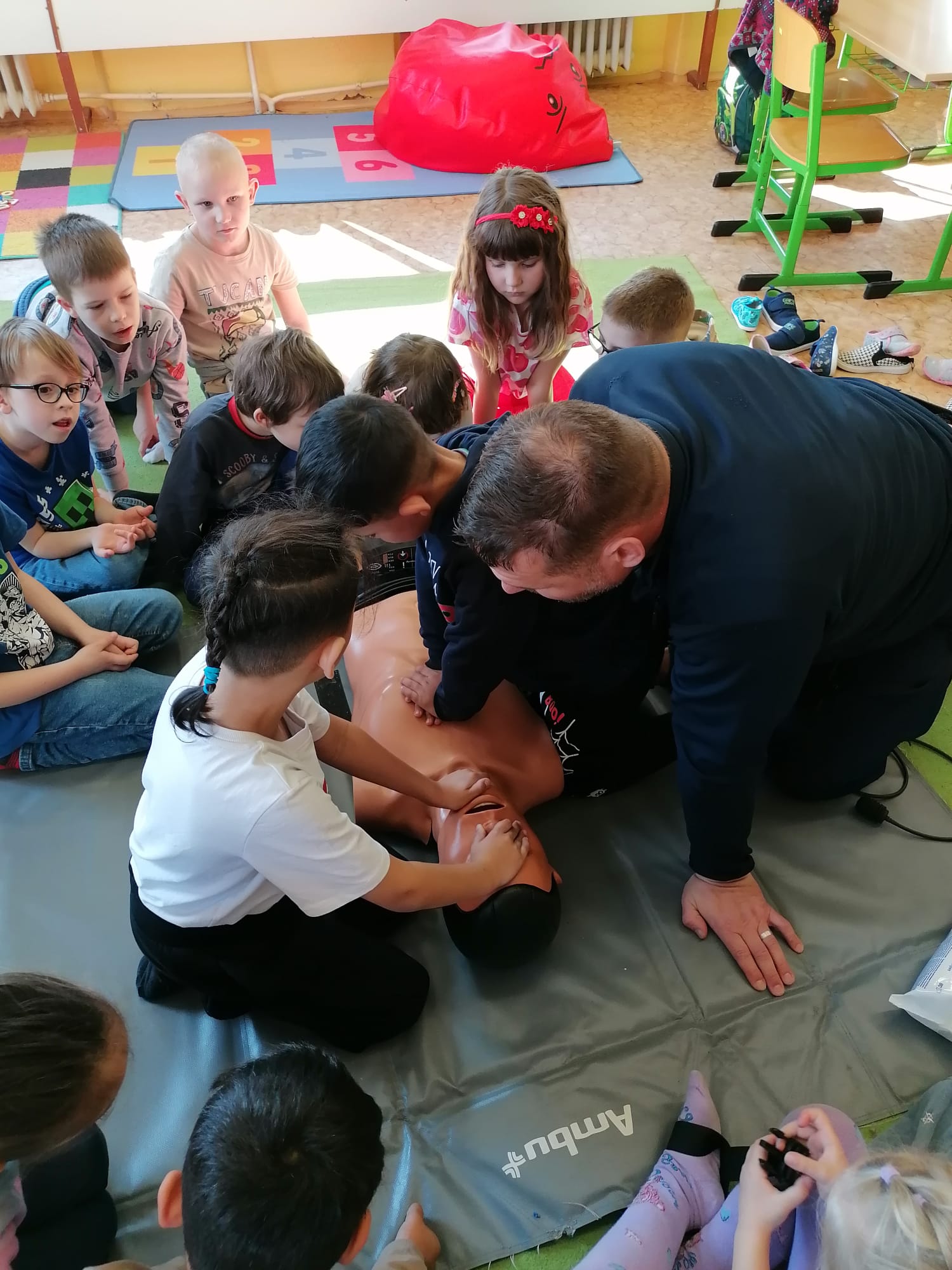 Jan Charvát, záchranář děčínské záchranky s cca 20letou praxí, přišel za našimi dětmi, aby jim ukázal základy první pomoci a zodpověděl jim zvídavé otázky ohledně práce záchranáře.