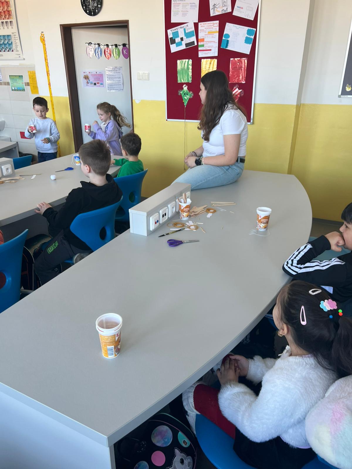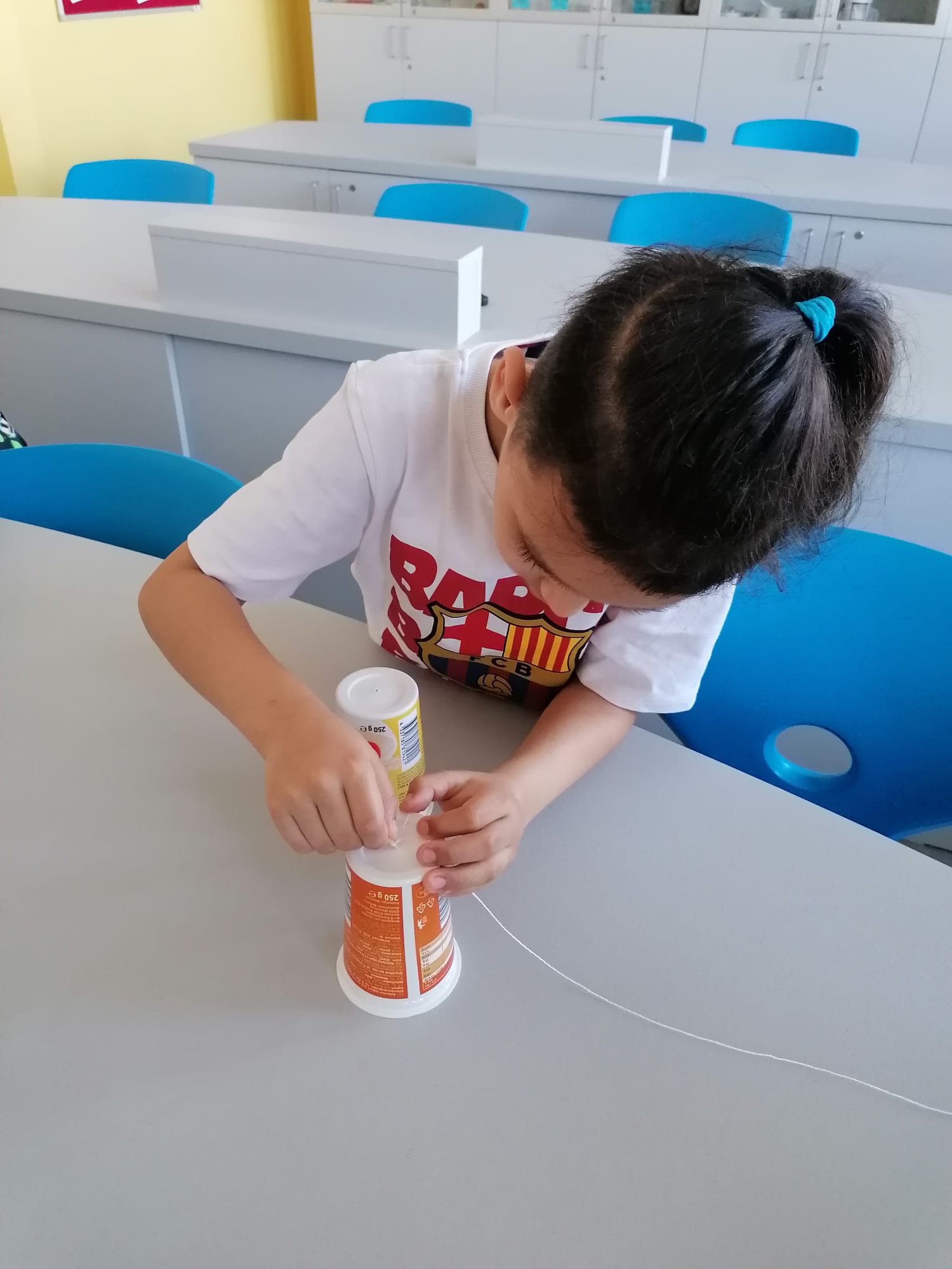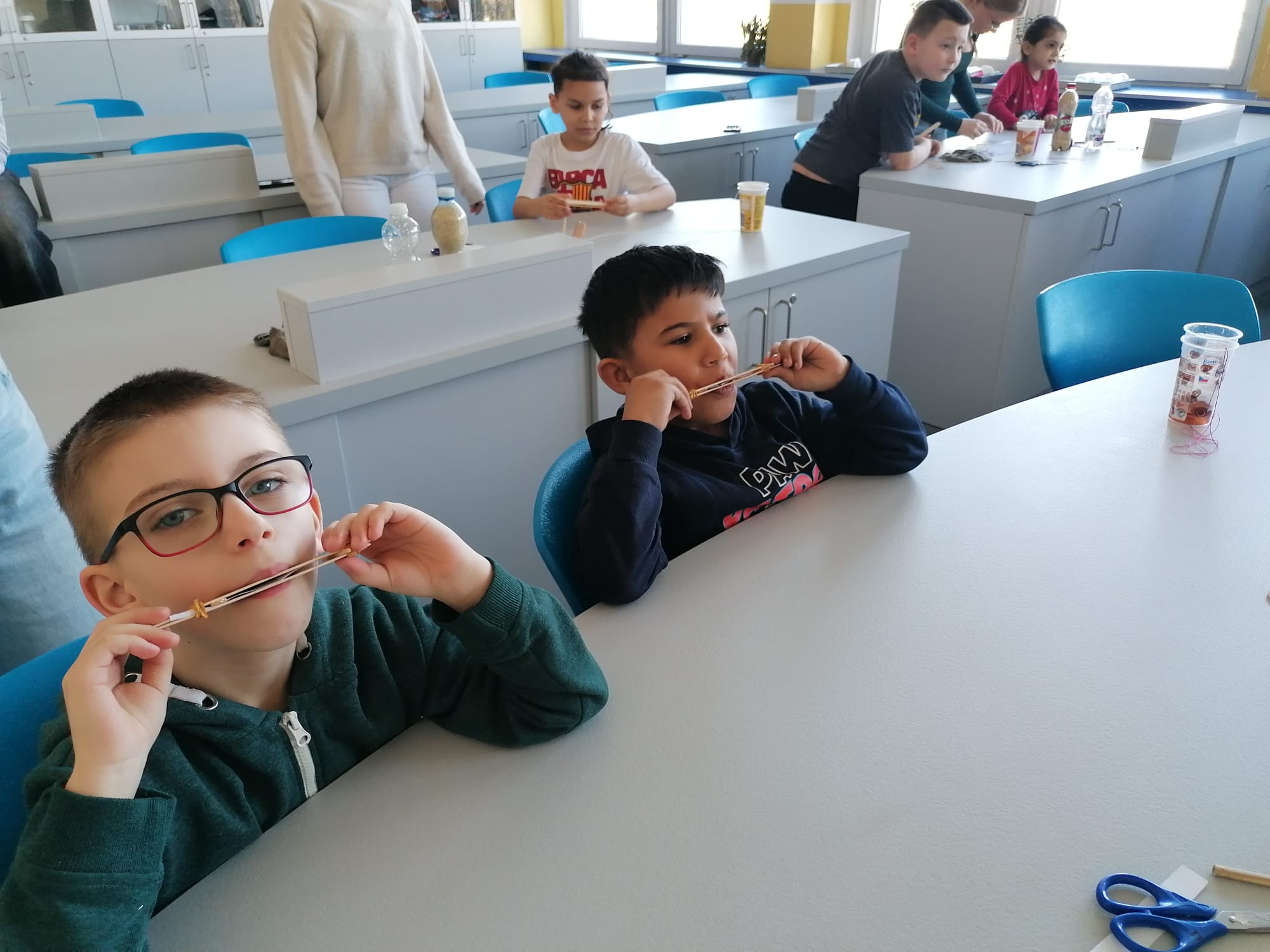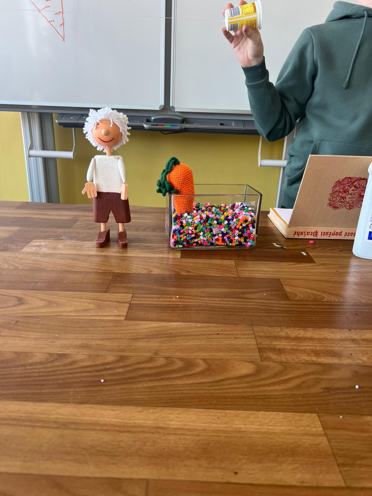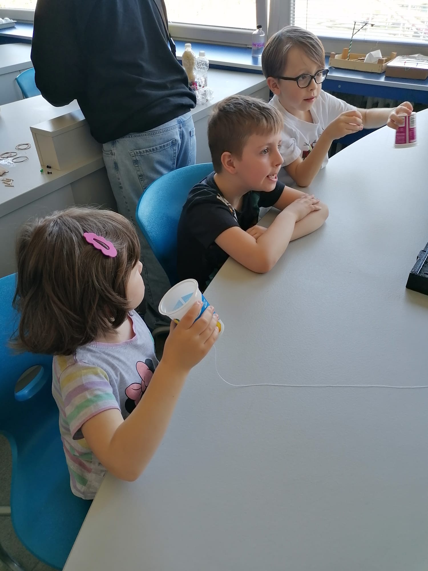 Děti si také vyrobily a odnesly domů kelímkový telefon a píšťalku, pomocí těchto výrobku mohli žáci přivolat dědečkovi na pomoc babičku, pejska, kočička a myšku a společně tak vytáhnout velkou mrkev :-)