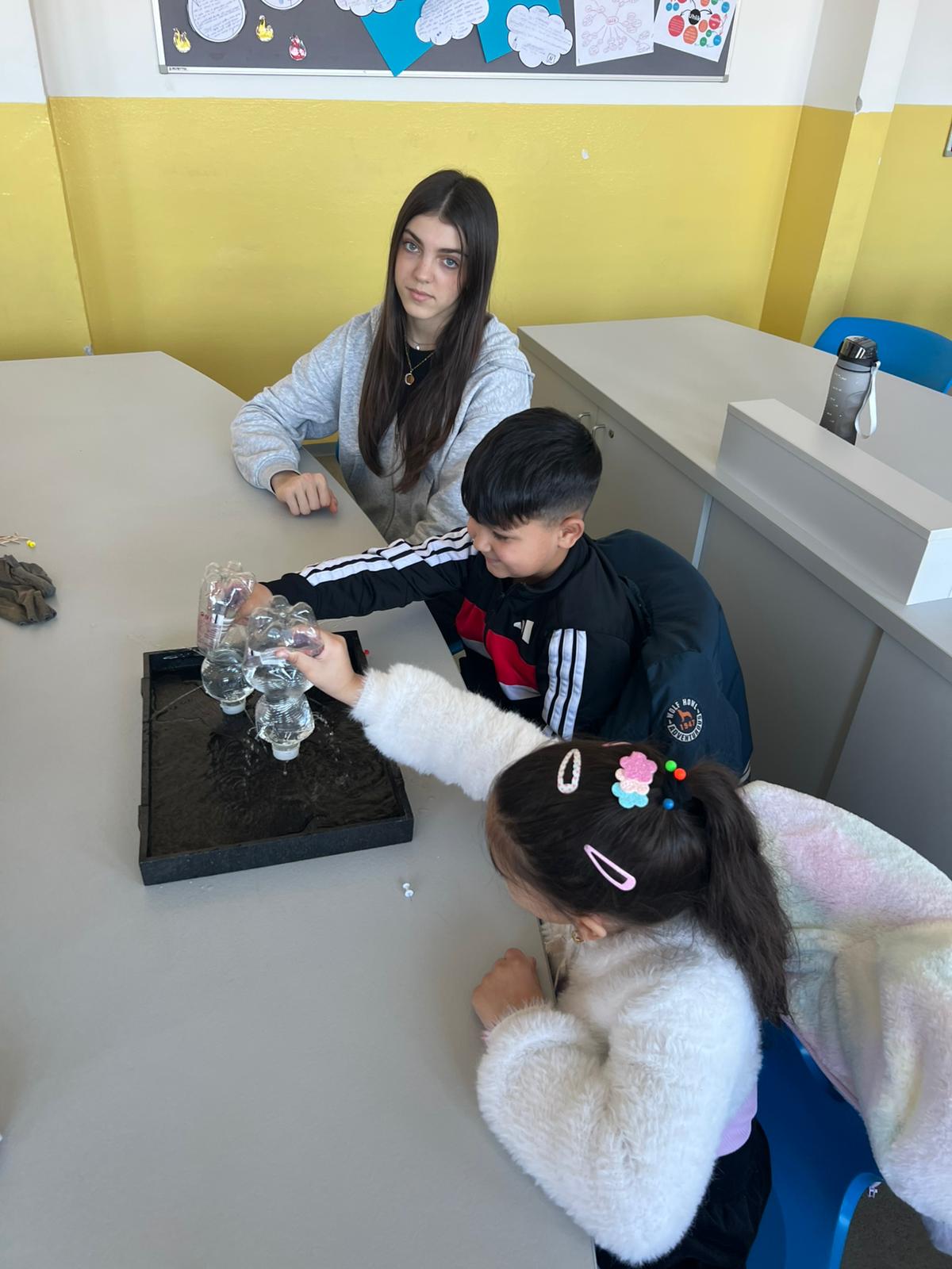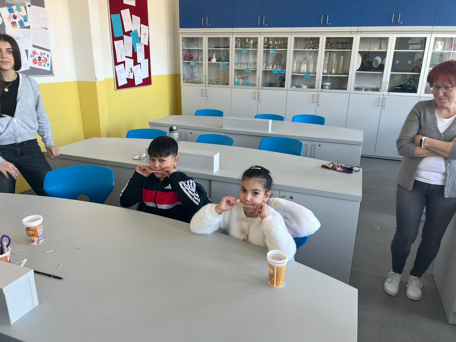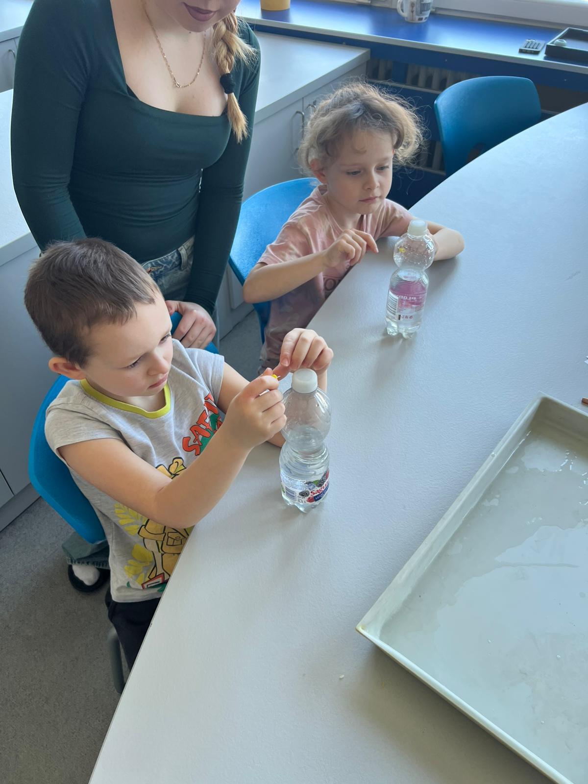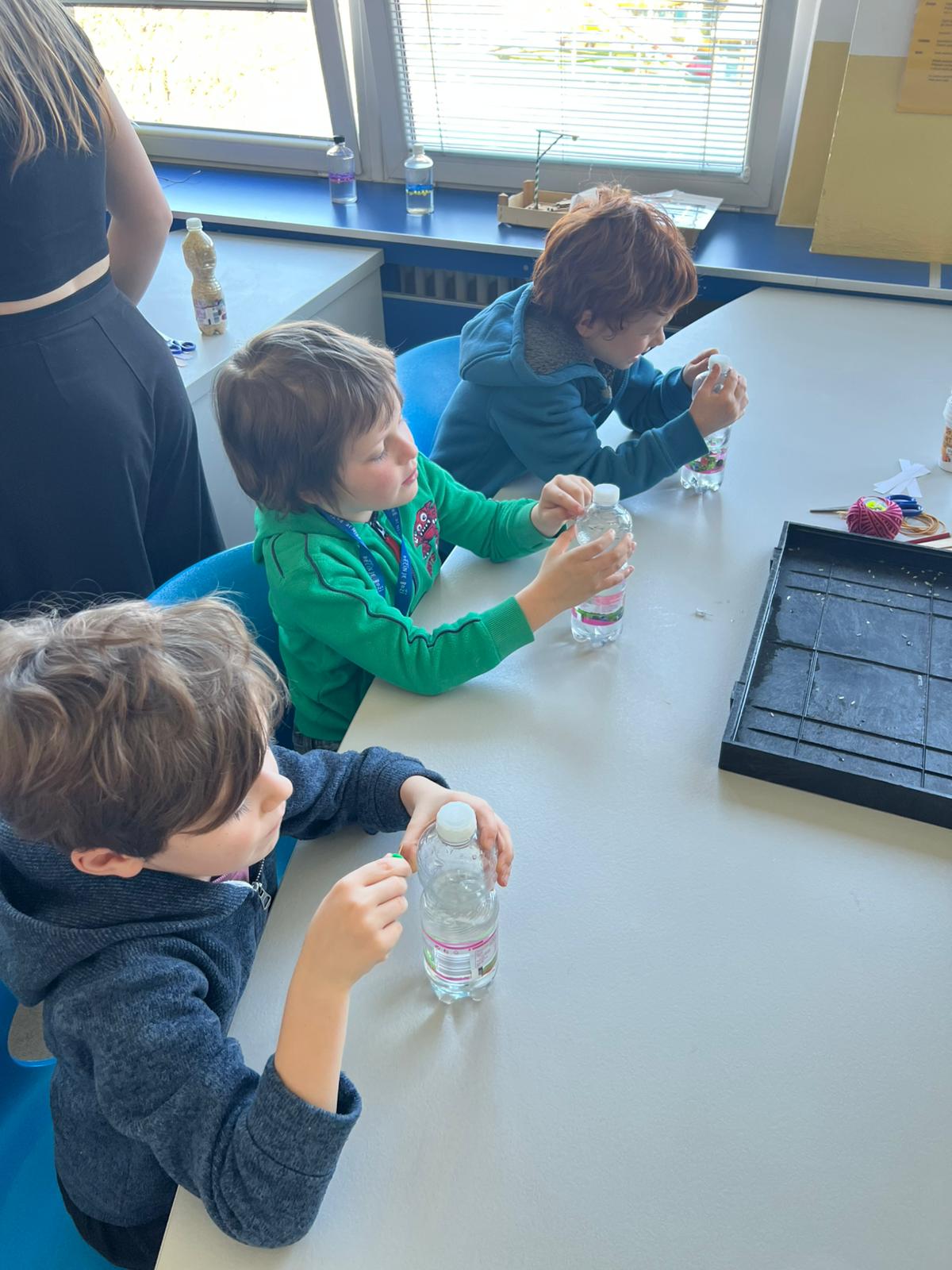 Paní učitelka Štěpánka Řežábková, která na 2. stupni učí chemii a fyziku si pro naše malé prvňáčky připravila pásmo pokusů. Jako pomocníci jí sloužili někteří naši deváťáci.