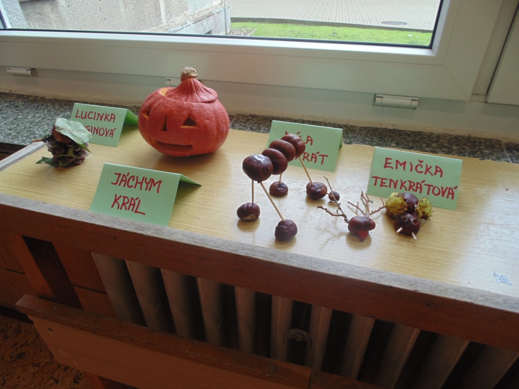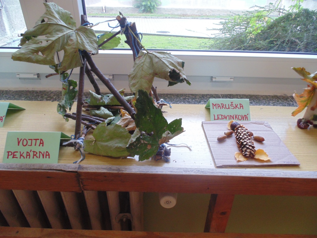 První rukodělná akce školní družiny s názvem Tvoření z přírodnin oživila prostory u ŠD výstavkou výrobků našich dětí. Děti, které rády něco tvoří, mohly v daném čase využít plodů přírody v tomto období a něco vytvořit dle vlastní fantazie. Ke své práci využily kaštany, žaludy, šípky, listy, klacíky, dýně, šišky a další plody doplněné špejlemi, provázky, roličkami. V pátek, kdy se všechna oddělení schází, naši umělci získali diplom a krásné ceny. Děkujeme všem za pěkné výrobky a těšíme se na další práce.