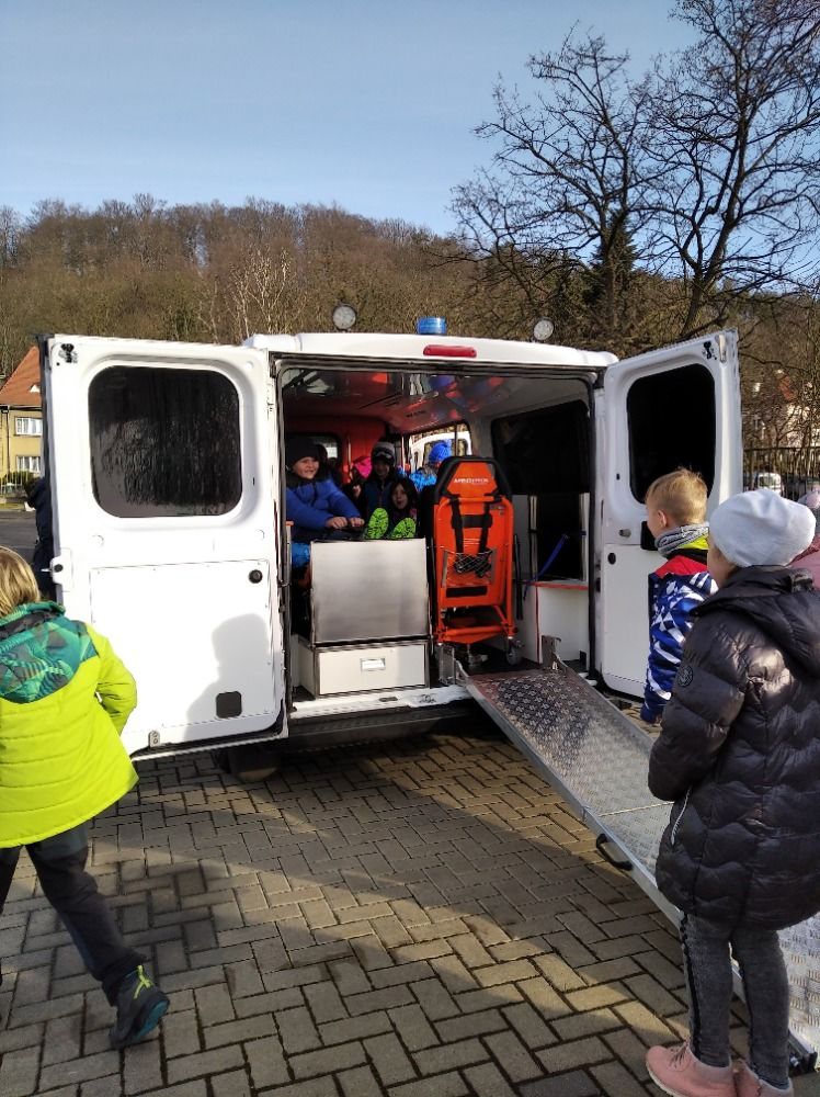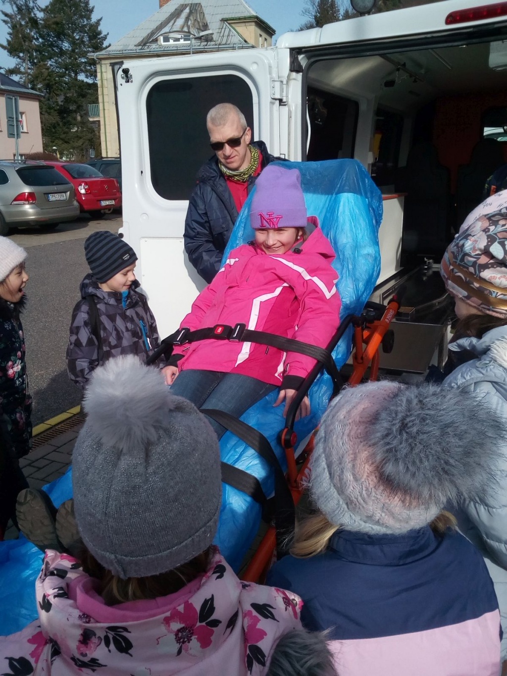 Ve čtvrtek 13. 2. 2020 jsme absolvovali exkurzi po areálu děčínské nemocnice společně s přednáškou cílenou na děti a odbourávání jejich strachu z lékařů a lékařského prostředí. Nejvíce času jsme strávili ve společnosti zdravotního bratra Tomáše Škody, který si pro nás připravil perfektní program s zdravotnickou tematikou, dále se nám velmi ochotně věnovali zaměstnanci dispečinku přepravních sanitek (včetně pana řidiče), laboratoře a prádelny. Všichni jsme odcházeli z nemocnice plni dojmů a spokojenosti.