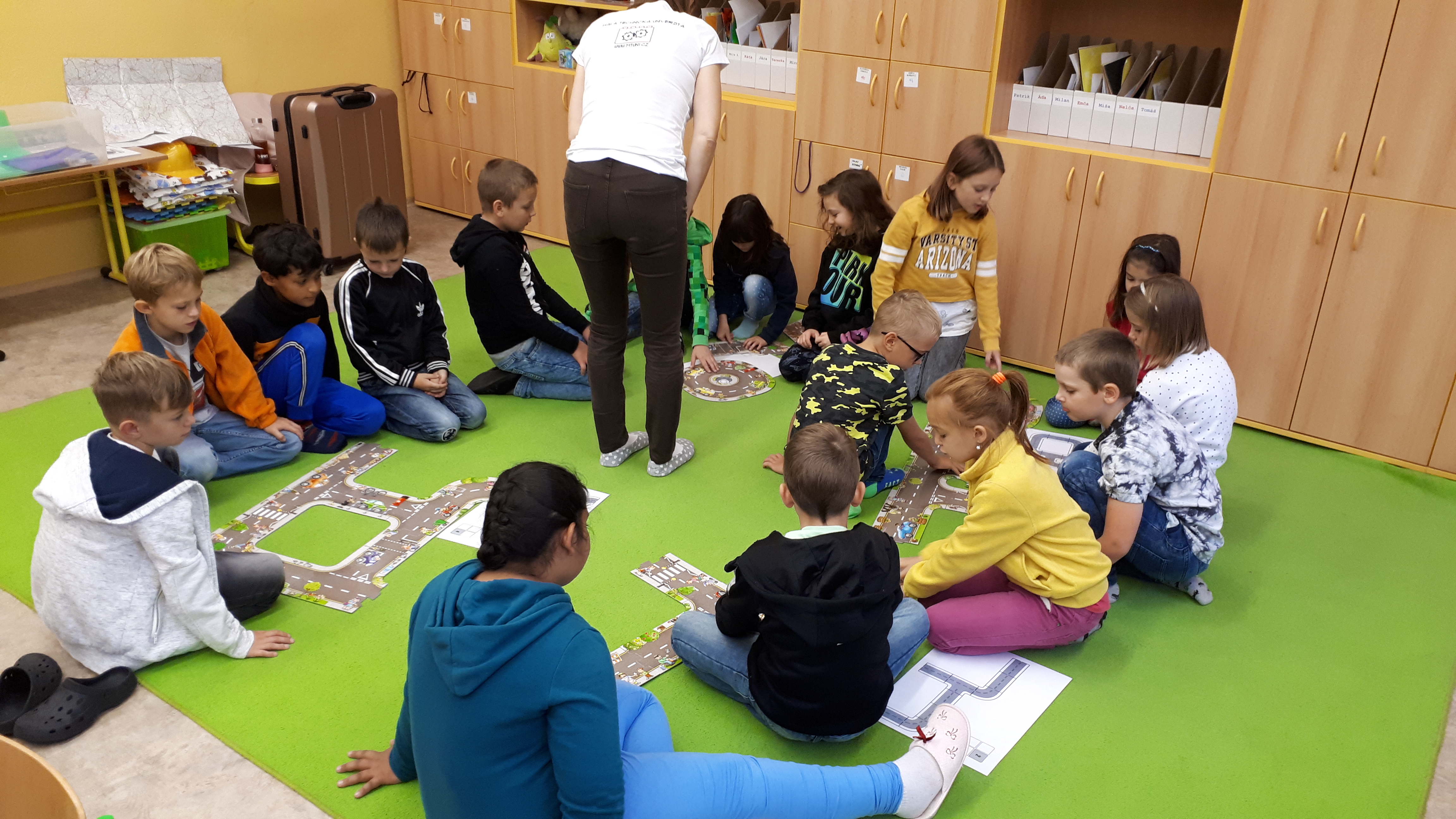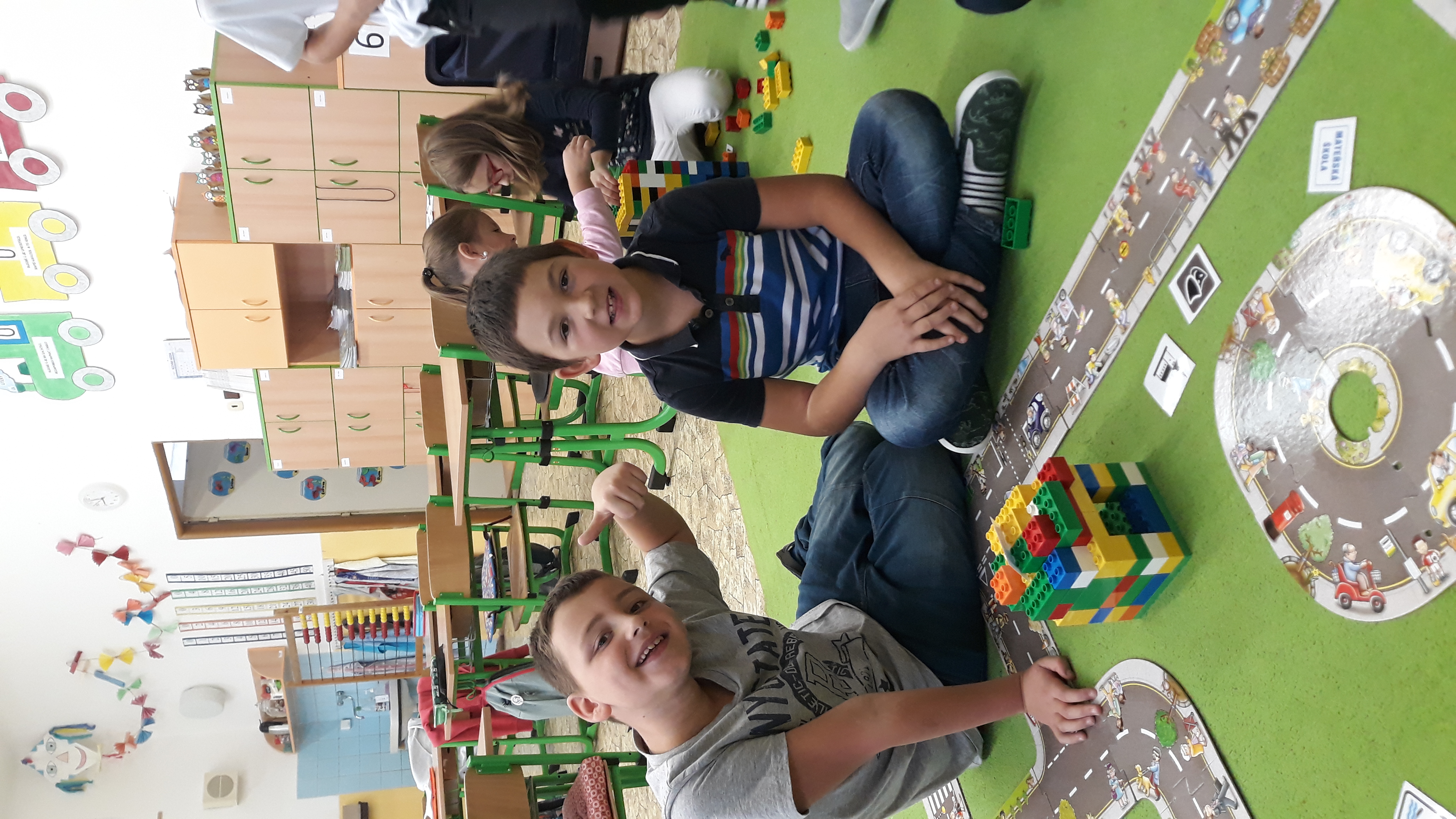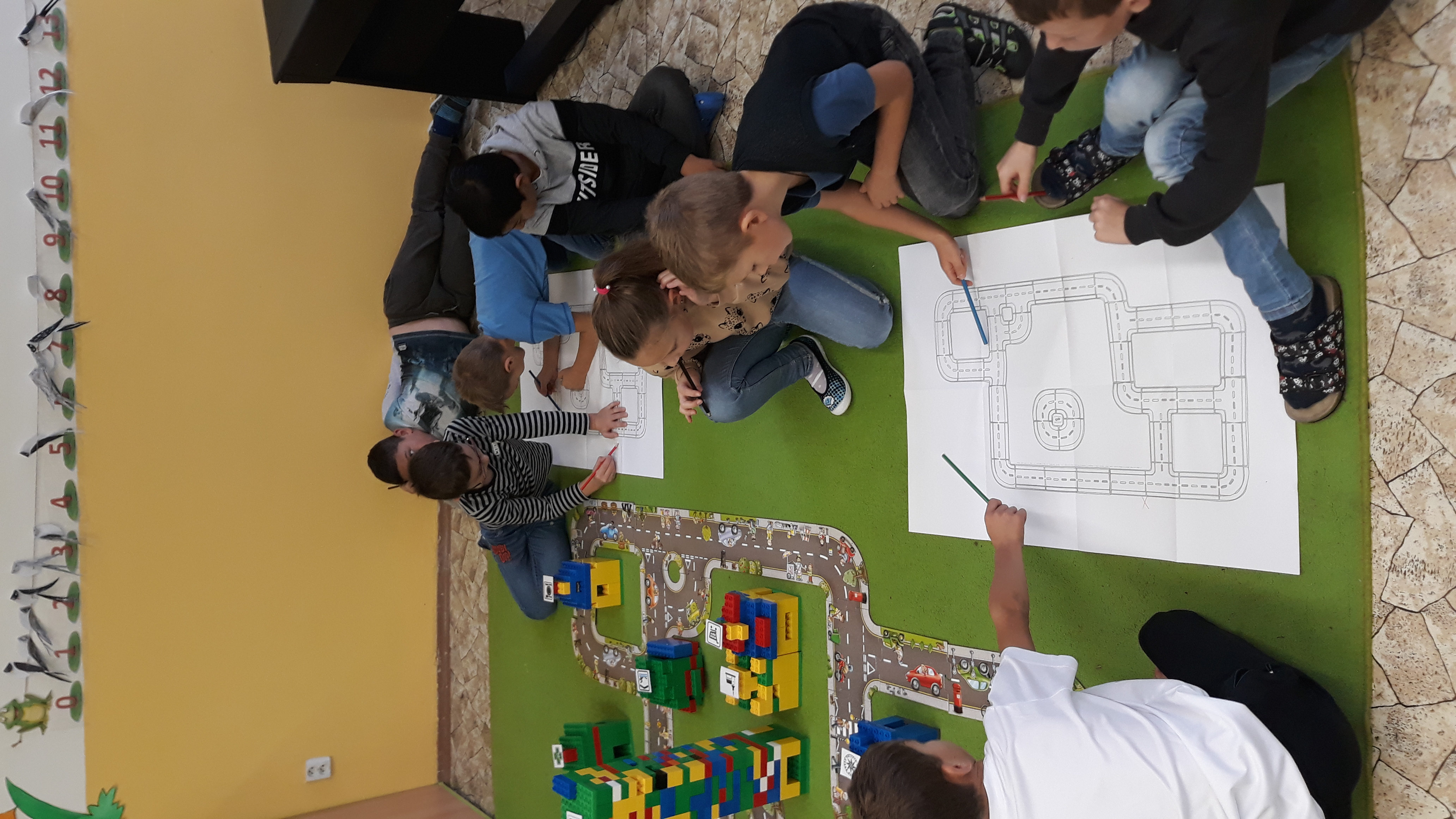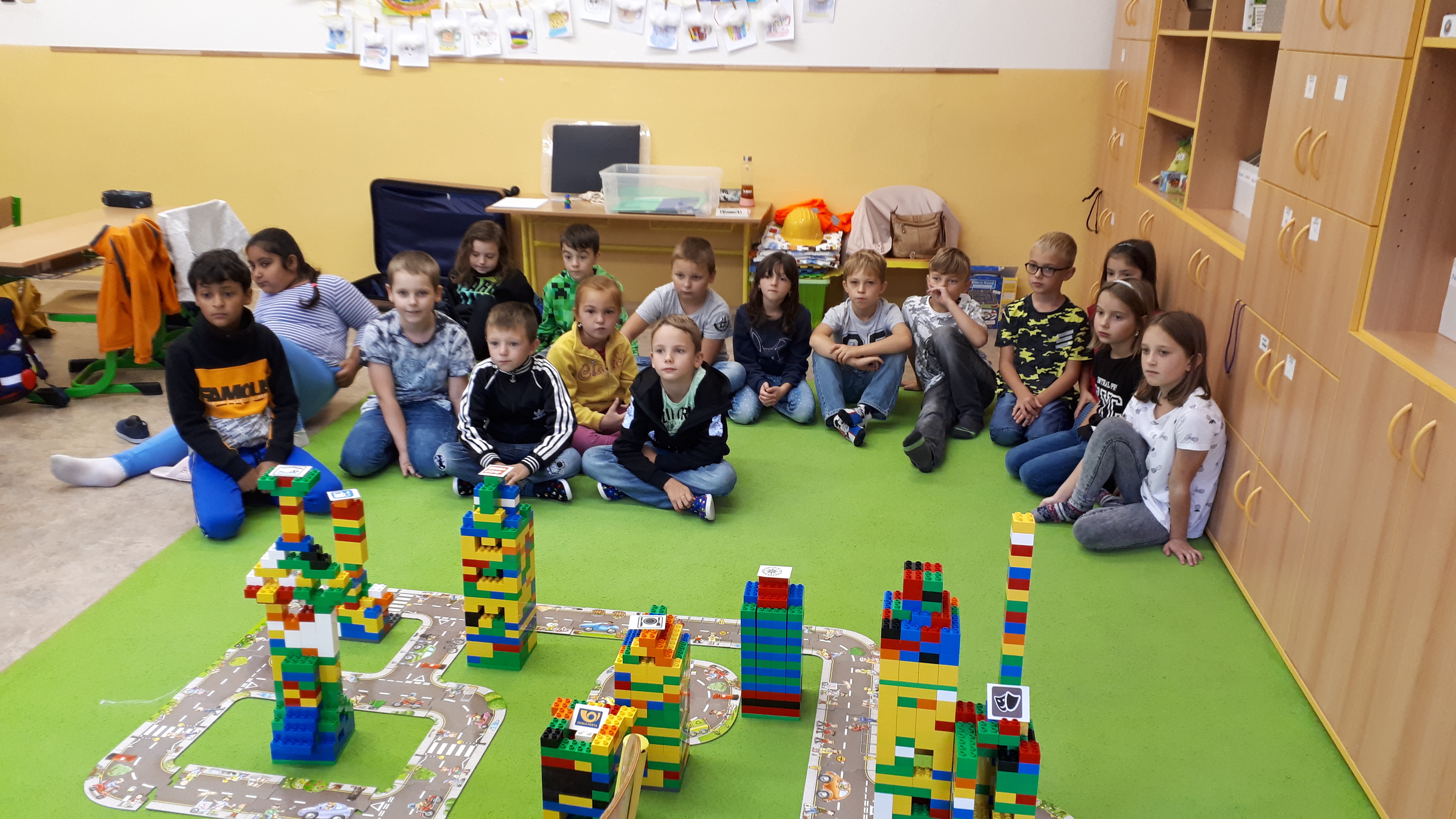 Žáci se v průběhu dne seznámili se stavbami ve městě, přiřazovali ke stavbám piktogramy, stavěli město i silnice. Učili se zorientovat mapu podle stavby, zakreslovali stavby do plánku. Stavěli vlastní stavby. Hráli hry zaměřené na rozvoj prostorové představivosti a orientace.