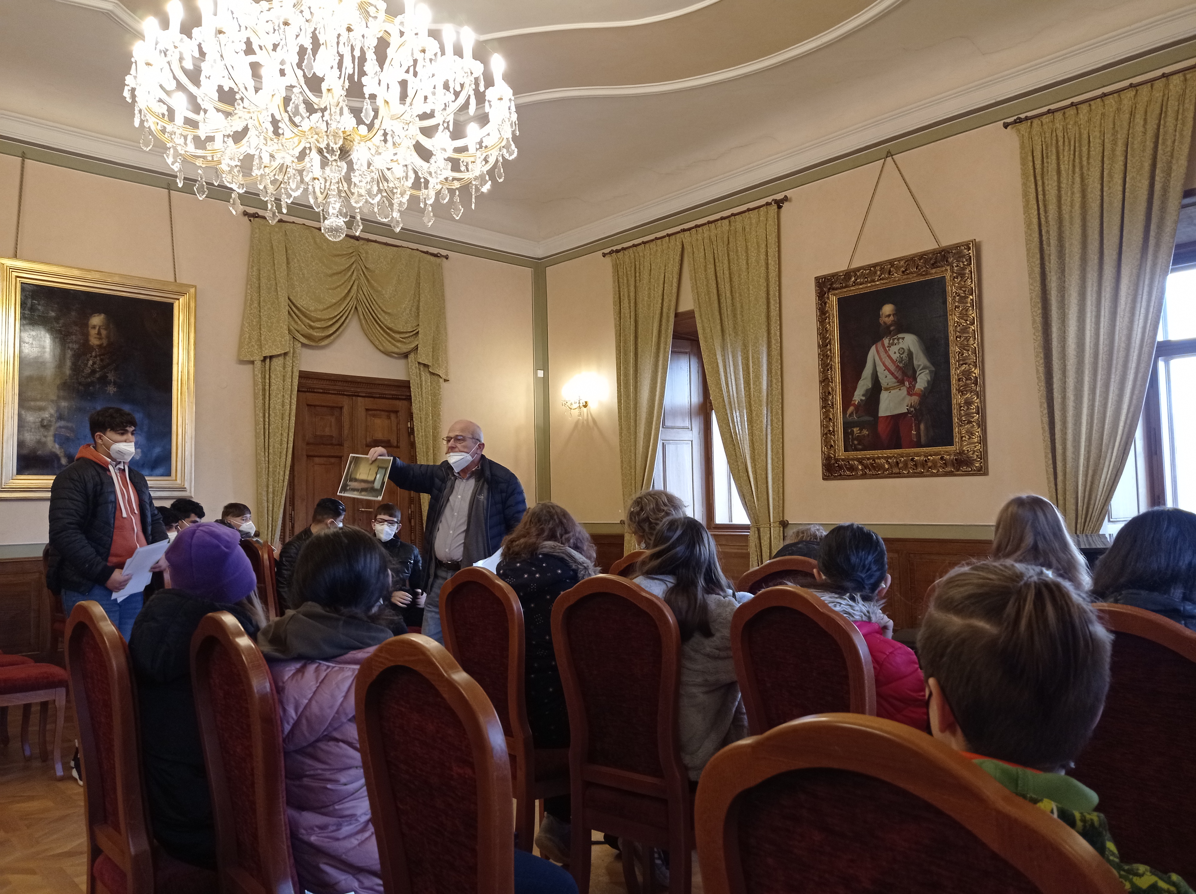 Pan průvodce žáky provedl neklasickým zámeckým prohlídkovým okruhem. Součástí jeho zajímavého přednášení byly i ukázky dobových fotografií, díky čemuž se žáci podrobněji seznámili s barvitou minulostí nejen Zámku Děčín, ale i samotného města.