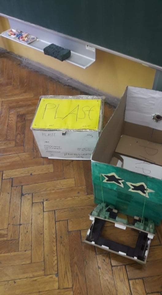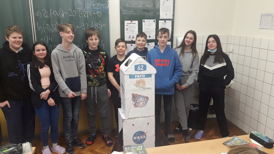 V novém pololetí měli žáci možnost zúčastnit se mezitřídní soutěže o nejzajímavější nádobu na tříděný odpad. Ve čtvrtek 3. 3. 2022 se vydali porotci, paní učitelka Adéeová a pan učitel Michajličenko, do tříd, aby zhodnotili, jak si jednotlivé třídy s úkolem poradily.