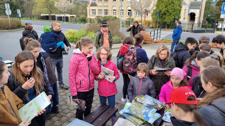 Po několika úvodních slovech ředitele národního parku pana Pavla Bendy přišla drobná soutěž o ptačí odznáček. Účastnící měli určit ptáky, které organizátoři přinesli v podobě vycpanin. Dva naši žáci – Lukáš Hartig a Andrea Braunová – správně určili po jednom druhu a tak si tuto drobnou upomínku s sebou odnesli.