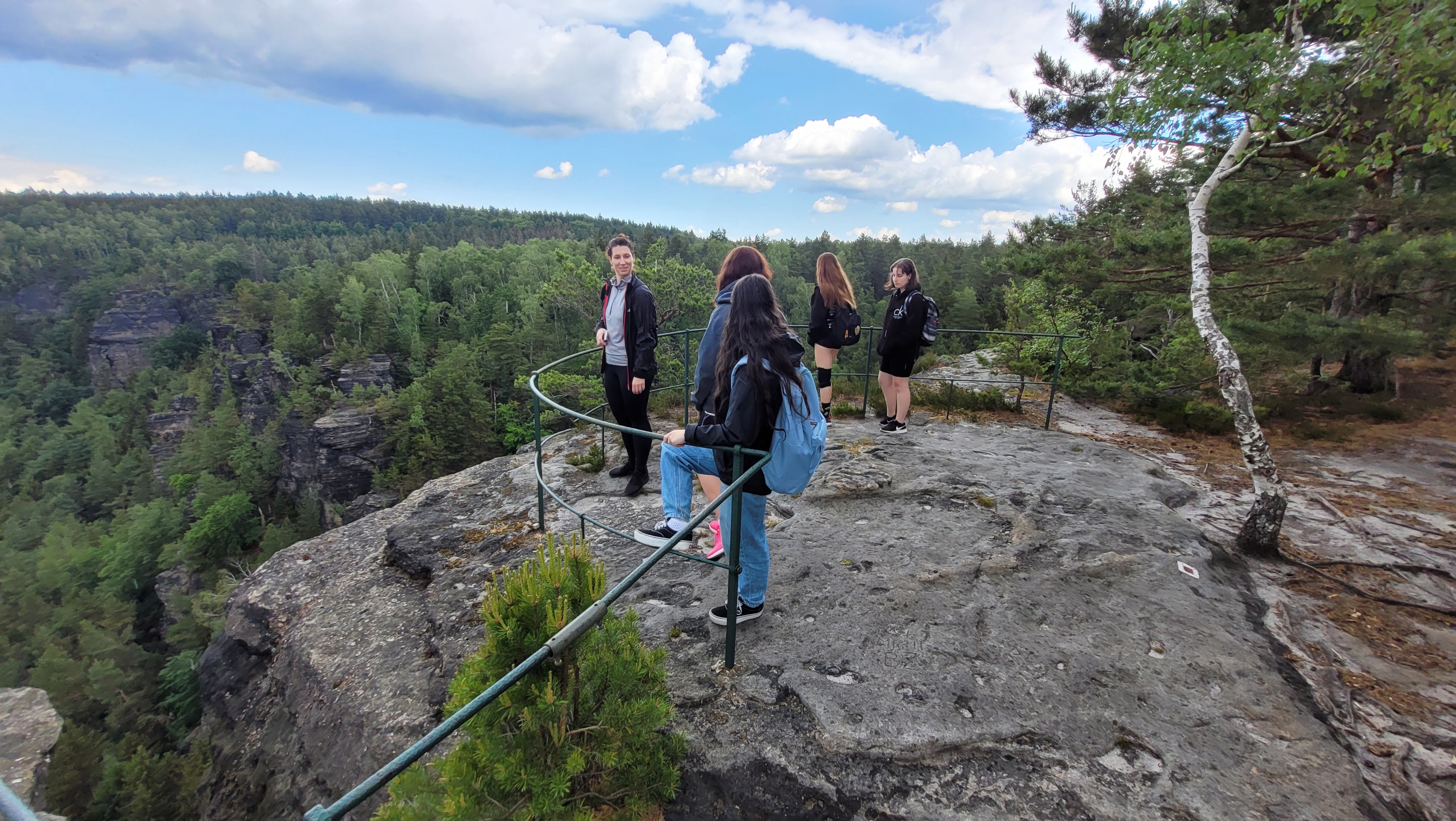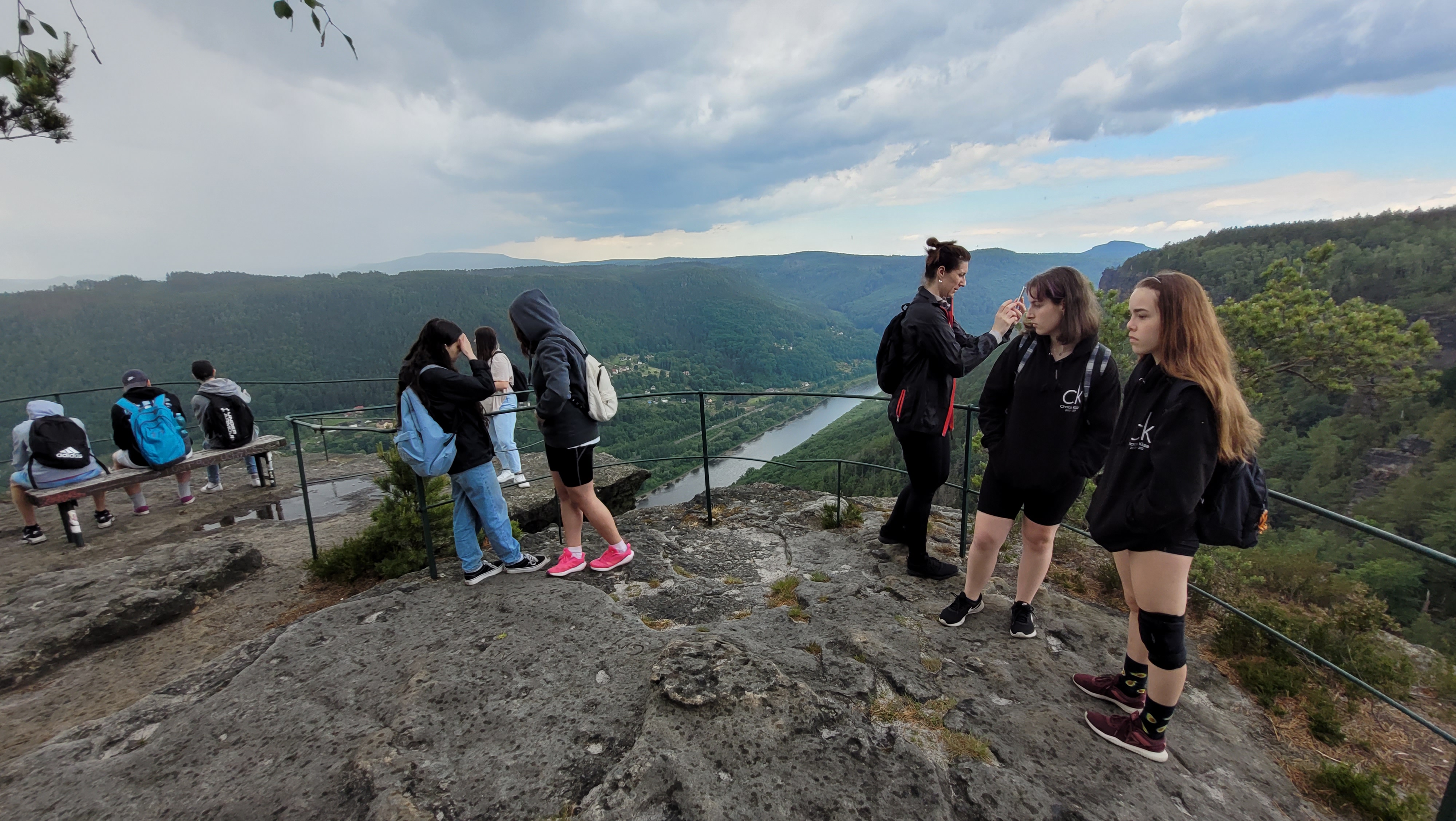 Naše skupina se vydala od školy směrem na Kvádrberk, ze kterého se pokračovalo dále do labského kaňonu až k Růžové vyhlídce, která poskytuje asi nejhezčí výlet na nejhlubší pískovcový kaňon Evropy.