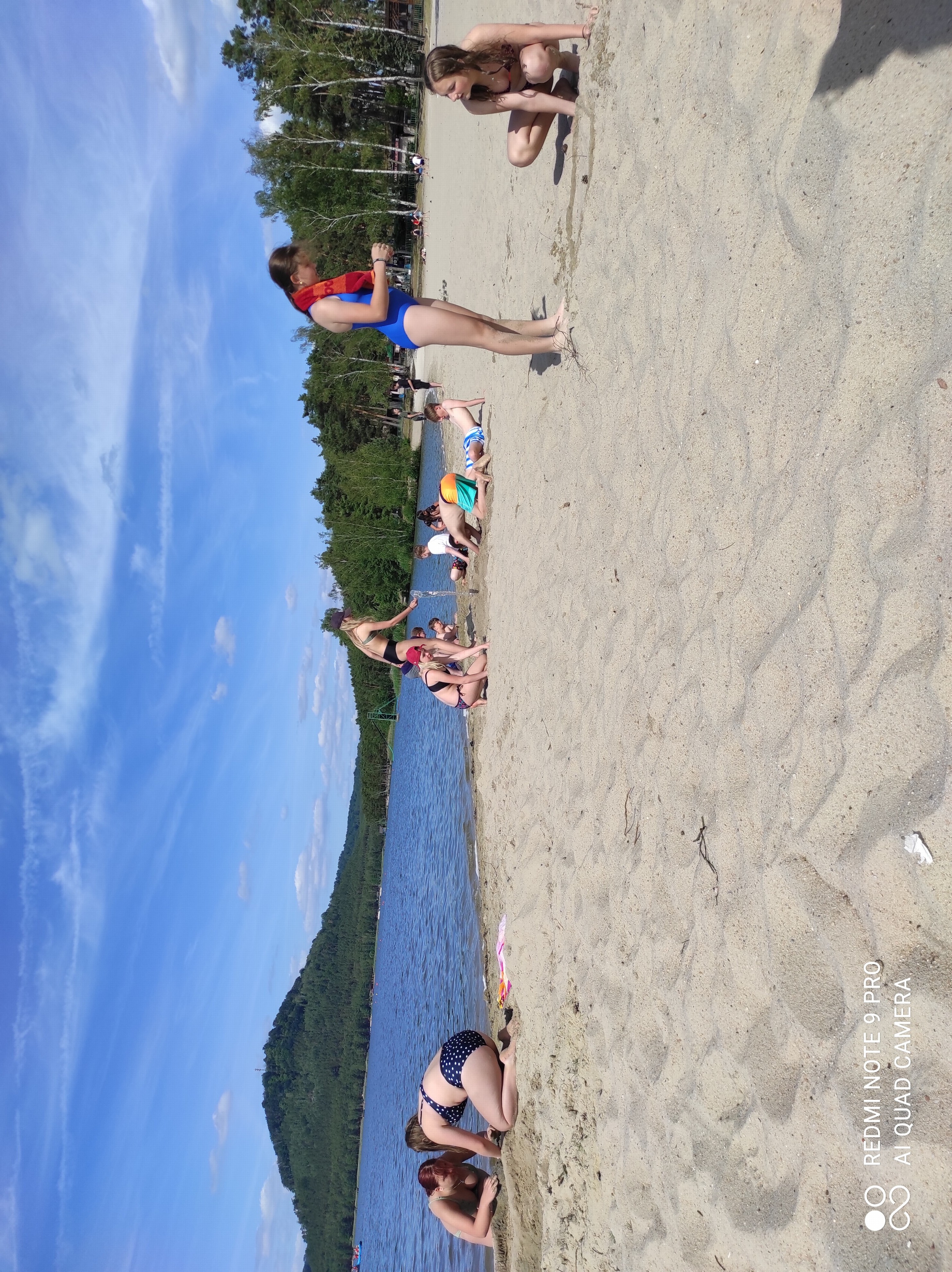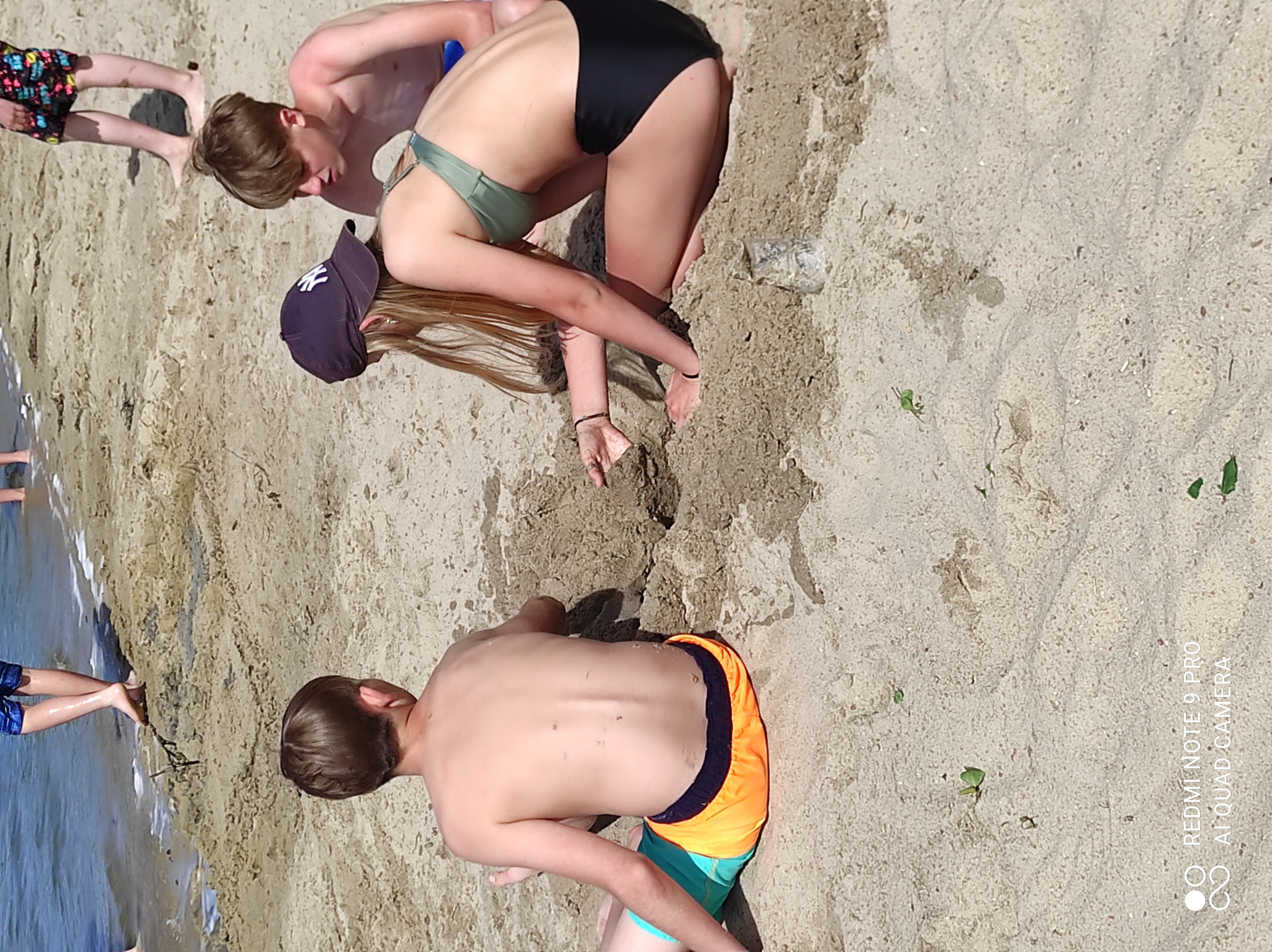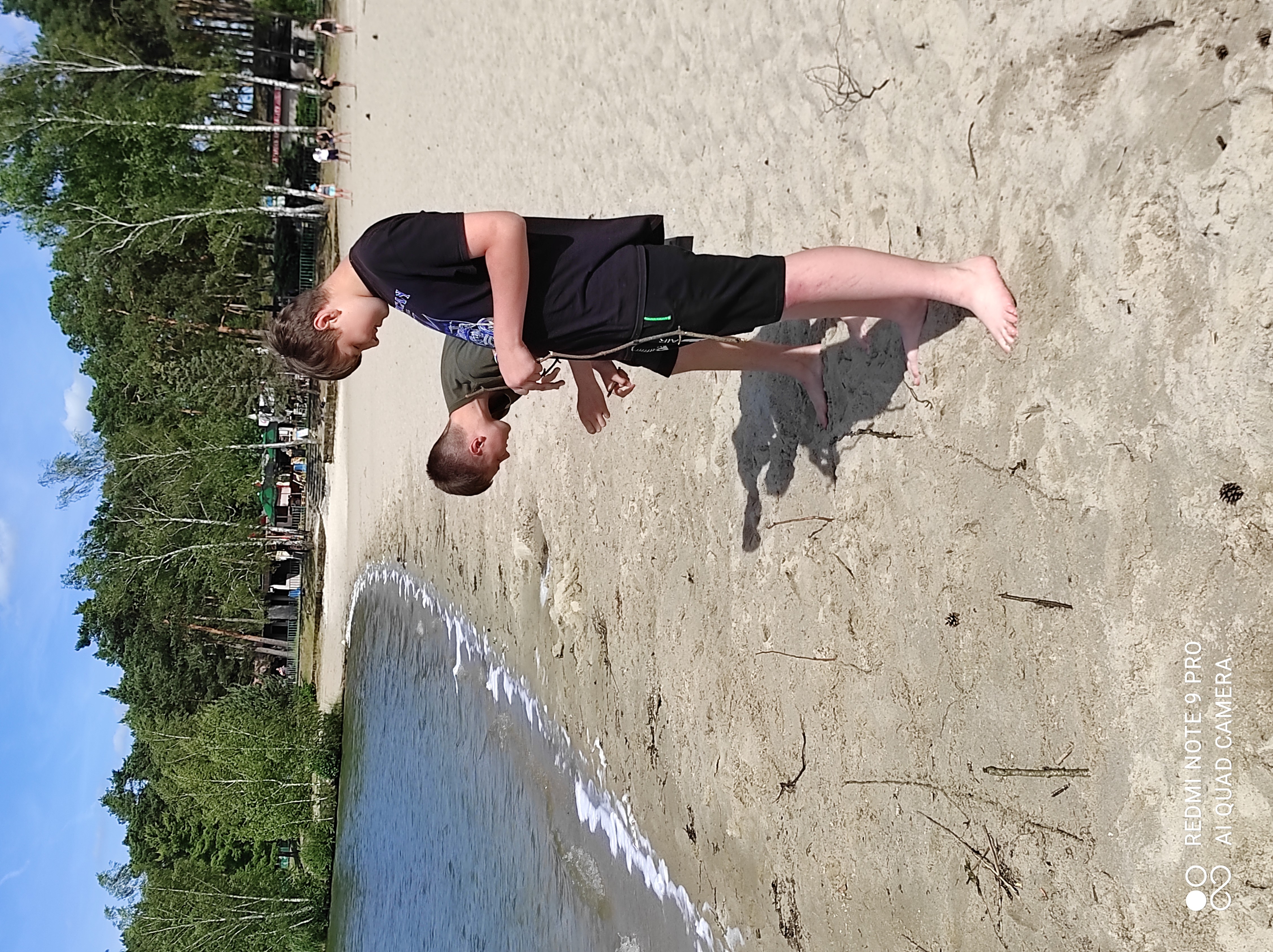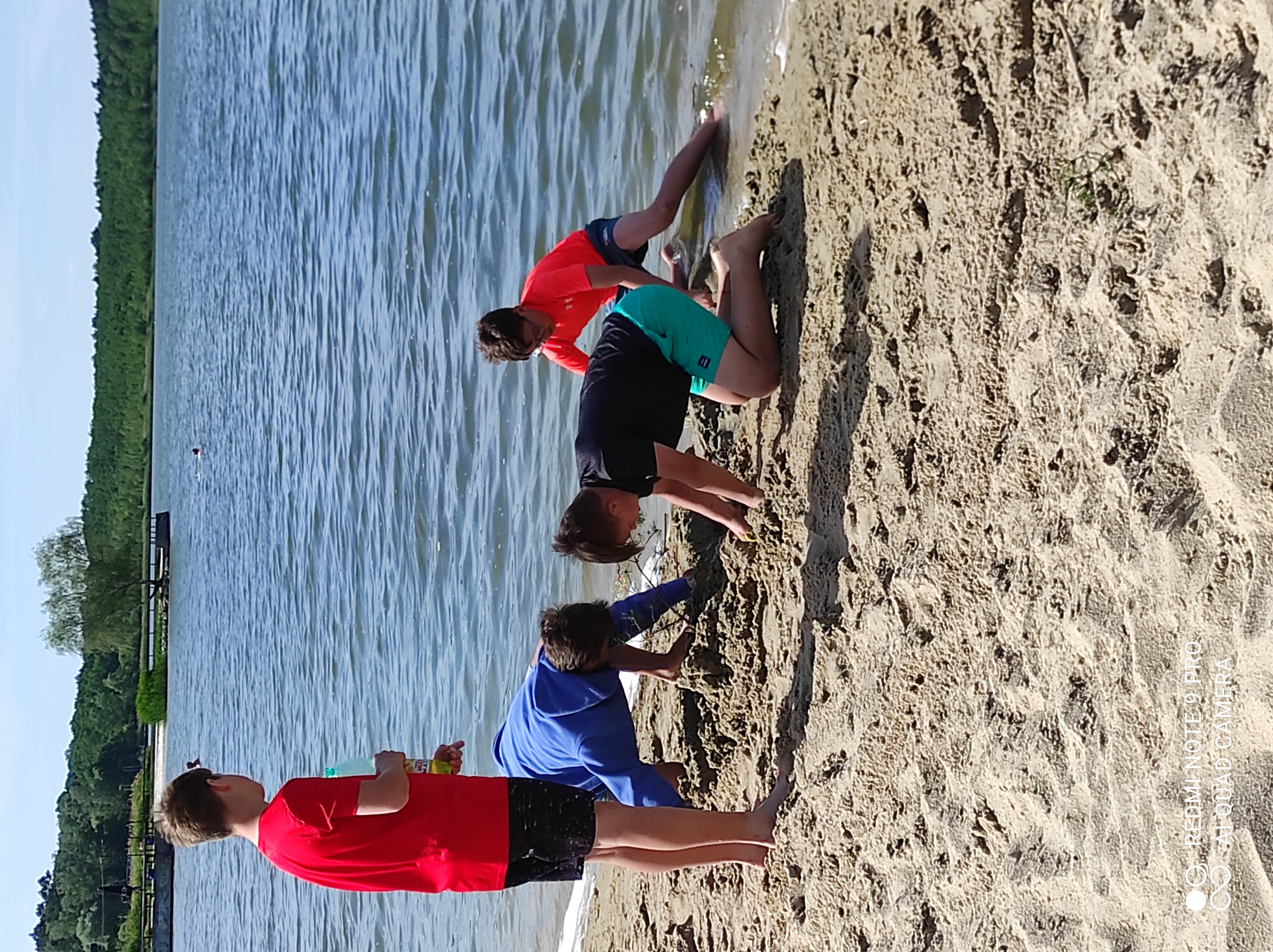 Po ranní snídani jsme hned vyrazili na beachvolejbalové hřiště a odehráli třídní turnaj v přehazované. Poté ještě došlo na fotbalový zápas, stolní tenis, koupání v bazénu a dobrý oběd. Zabalili jsme a vyrazili ještě jednou k Máchovu jezeru. Bylo výrazně tepleji než předešlý den, a tak děcka ve vodě řádila opravdu dlouho. Mezitím jsme vyhlásili soutěž o nejlepší výtvor z písku na téma „sport“. Tolik skvělých architektů a stavbyvedoucích na jednom místě jsem ještě neviděl. Nakonec vyhráli všichni a vzhledem k tomu, že nám vyzbyly ještě nějaké penízky, každý si mohl vybrat jednu větší sladkost. Udělali jsme ještě společné foto a vyrazili na doksanské nádraží. Úsměvy a dobrá nálada značily, že se výlet opravdu vydařil.