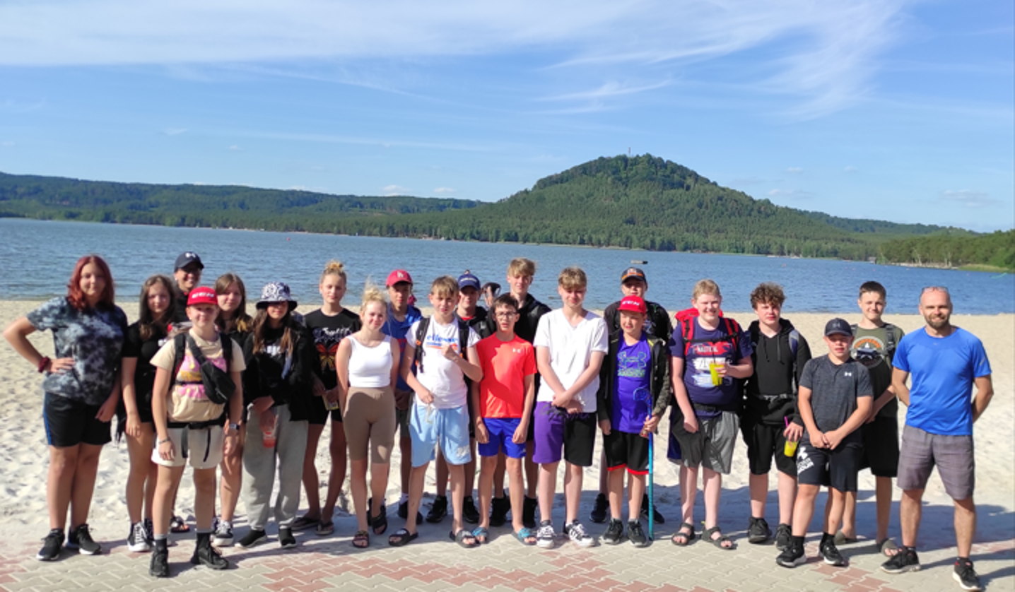 V pondělí 13. června jsme se 7.B vyrazili na dlouho očekávaný dvoudenní školní výlet k Máchovu jezeru. 19 žáků a 2 dospělí s krosnami či méně pohodlnými zavazadly na zádech čekalo krátce po osmé hodině ranní před Hlavním vlakovým nádražím v Děčíně. Cesta probíhala naprosto klidně, až těsně před cílem začalo poměrně hustě pršet a my jsme se trochu zděsili. Po zhruba 15 minutách čekání na nádraží v Doksech se vypršelo a my jsme mohli pěšky pokračovat směr rekreační a sportovní areál Termit 25. Cestou jsme se ještě zastavili na doksanském náměstí, kde si naši „velcí“ sedmáci zakoupili umělohmotné pistolky do vody. Po dalších 15 minutách jsme byli na místě. Celkem rychle jsme se ubytovali a okamžitě vyrazili okusit veškerá sportoviště v areálu. Kluci si s sebou vzali hokejky a florbalky a hned rozehráli velké bitvy na hokejbalovém hřišti. Další si šli zahrát na fotbalové, beachvolejbalové hřiště, někteří cvičili na workoutovém hřišti. Holky se šly smočit do bazénu.