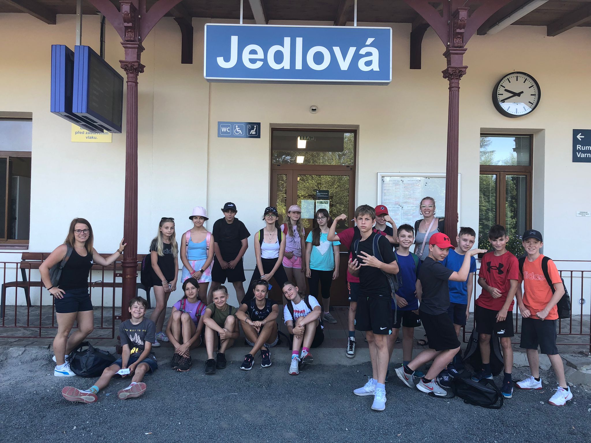V pátek 24.června se žáci 6. B sešli po osmé hodině ranní v budově hlavního nádraží v Děčíně a v půl 9 už seděli ve vlaku směr Jedlová. Po necelé hodině naprosto klidné a bezproblémové jízdy jsme dorazili do naší cílové stanice.
