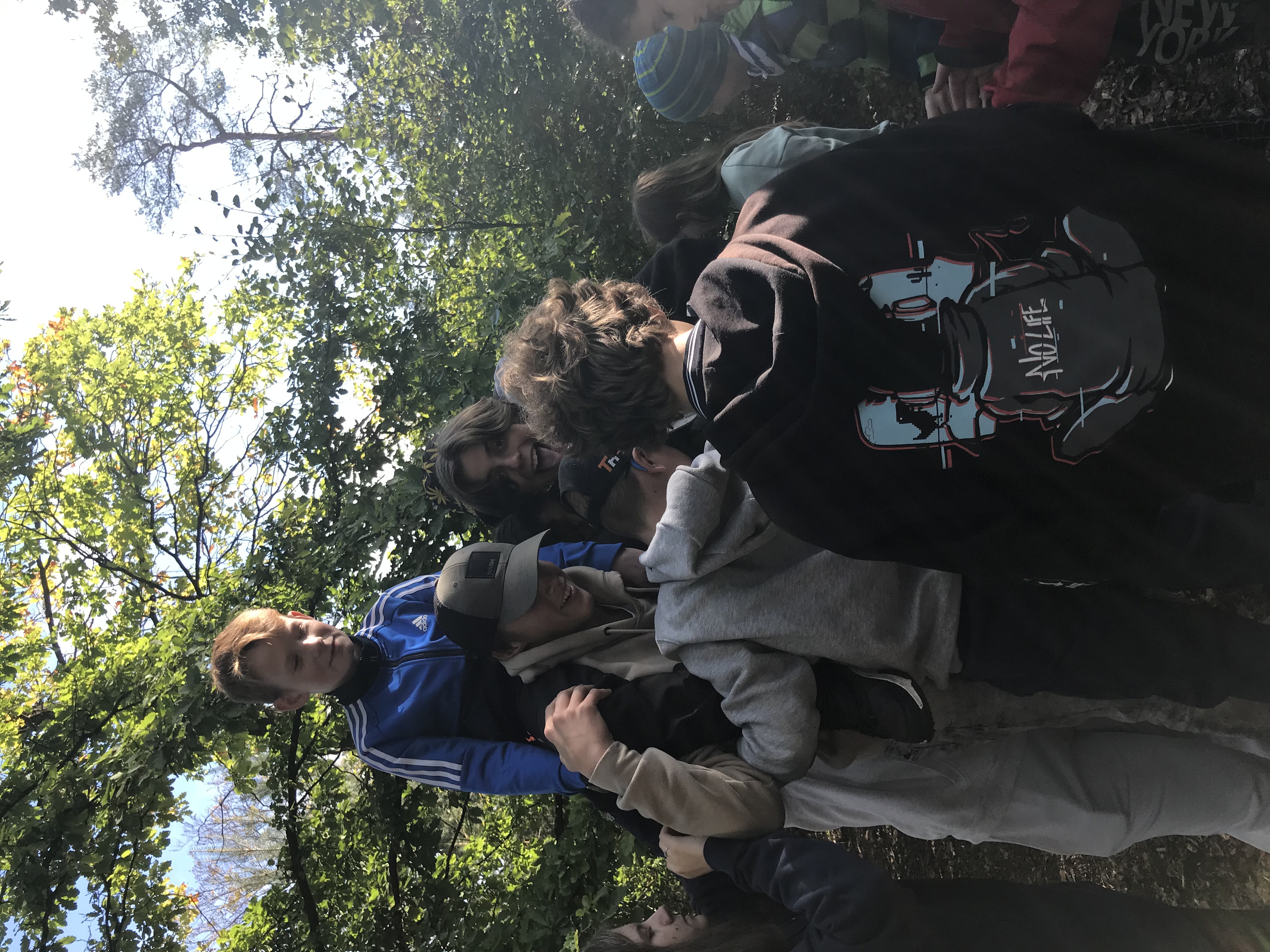 Po srazu na dvoře školy jsme se mlžným ránem vydali směrem na Kvádrberk, kde jsme plánovali podniknout seznamovací aktivity. Už pod vrcholem na vedoucí Báru a Maky čekal první úkol. Ostatní parlamenťáci se rozdělili do dvou skupin, zavázali si oči a Bára s Maky je měly dovést bezpečně až na
