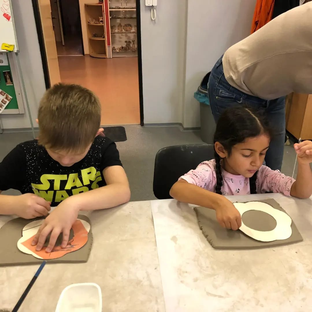 Děti byly moc šikovné, pracovaly s keramickou hlínou a každý si vyrobil svůj vánoční věnec. Ty budou žáci samozřejmě prodávat na našich vánočních trzích.