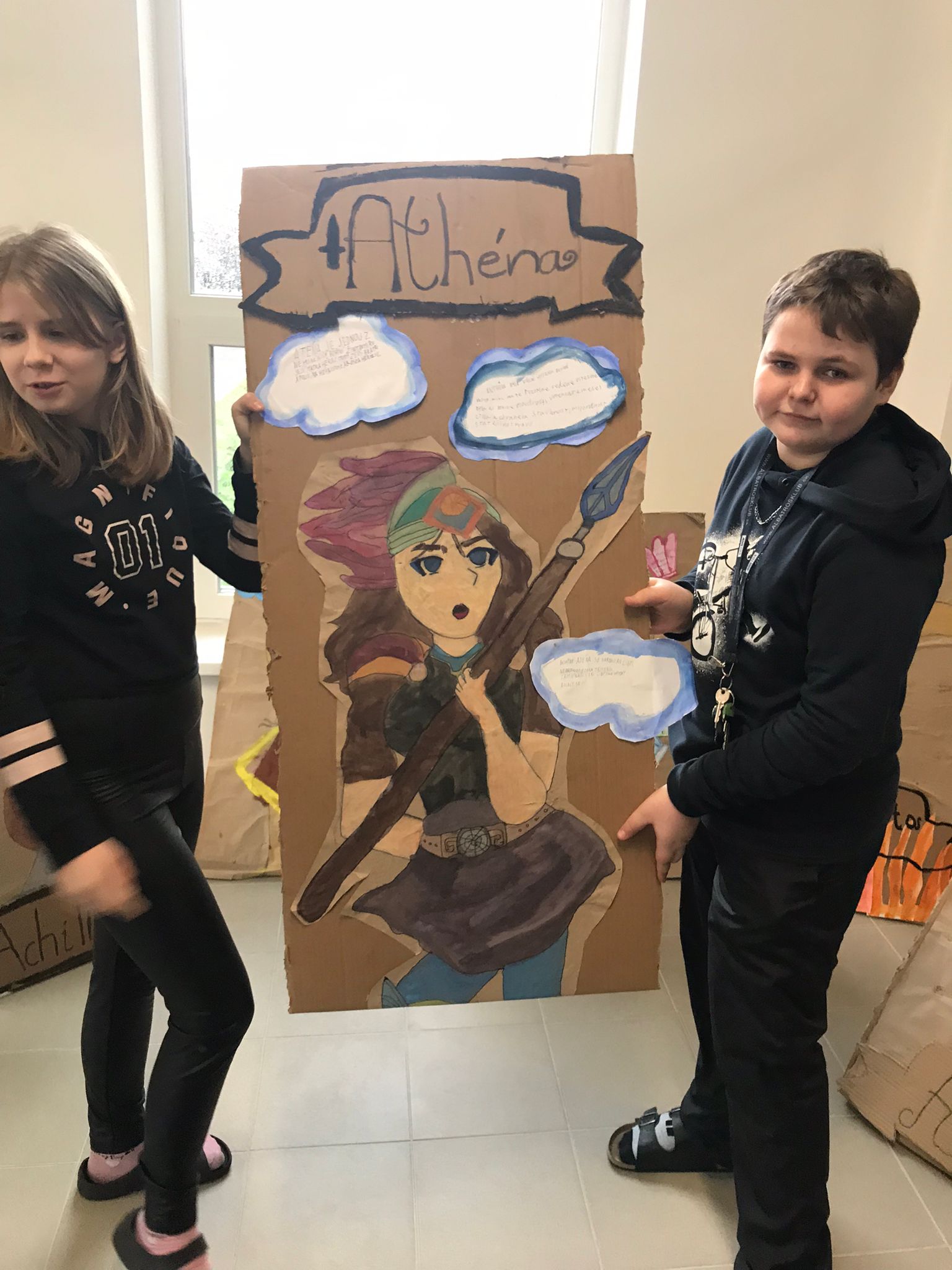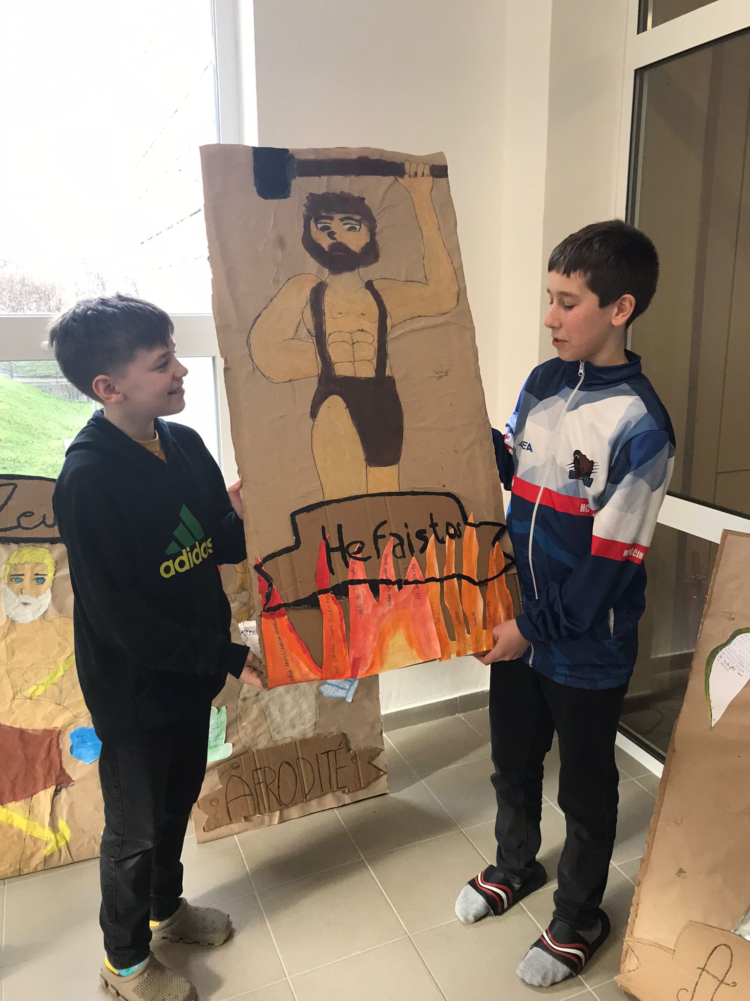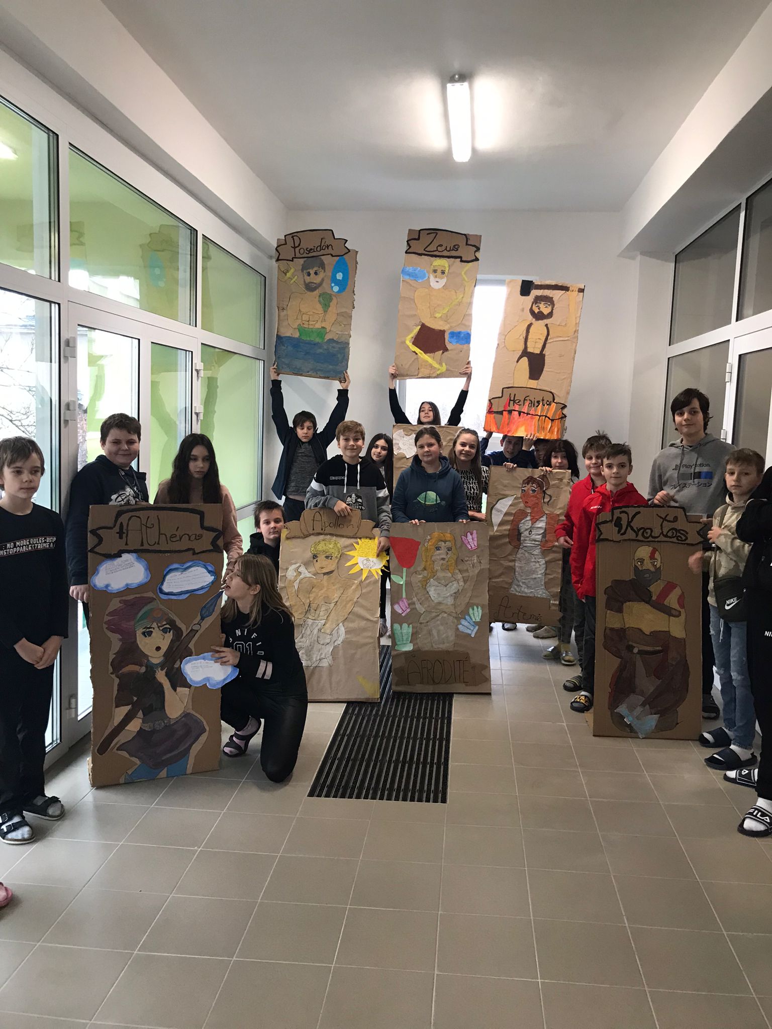 Už v předvánočním období začali žáci 6. A zpracovávat projekt zaměřený na antickou mytologii. Vytvořili portréty některých olympských bohů, ale i polobohů, ke kterým připojili stručné medailonky. Během ledna se jim podařilo celou práci dokončit v hodinách pracovní výchovy.