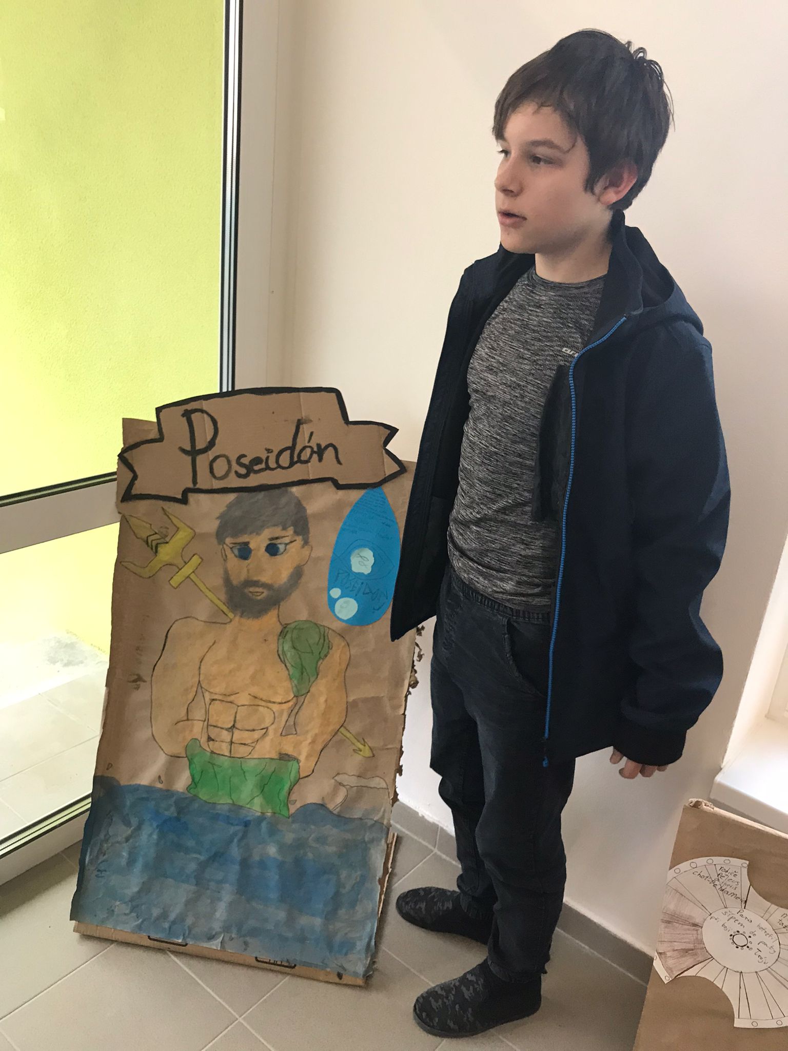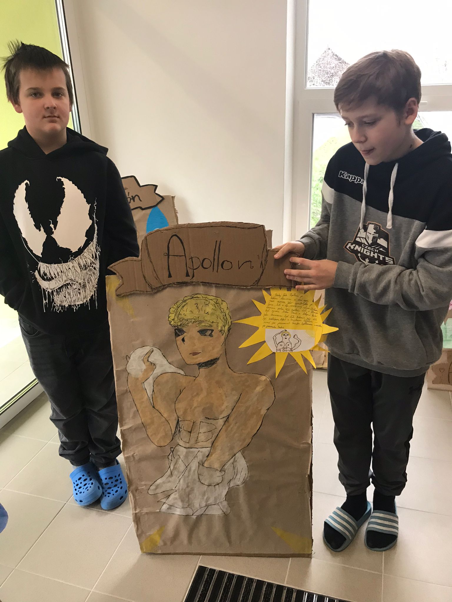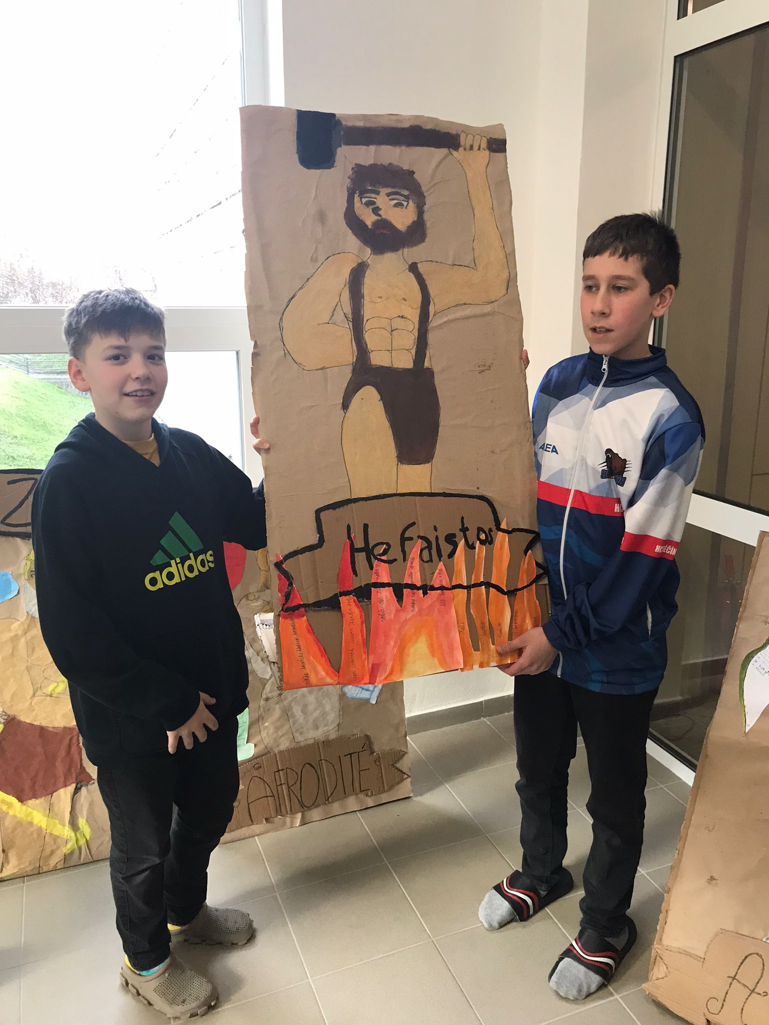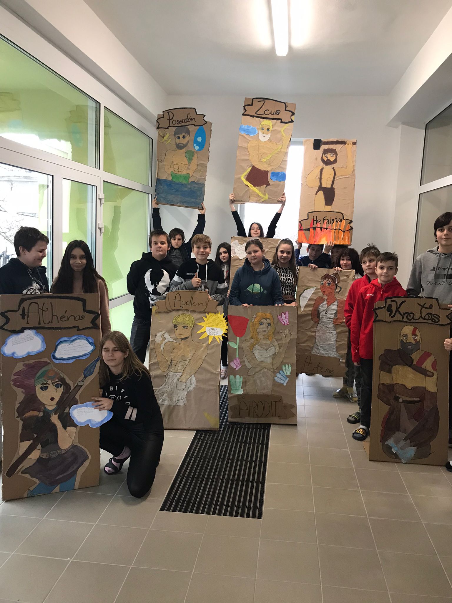 Už v předvánočním období začali žáci 6. A zpracovávat projekt zaměřený na antickou mytologii. Vytvořili portréty některých olympských bohů, ale i polobohů, ke kterým připojili stručné medailonky. Během ledna se jim podařilo celou práci dokončit v hodinách pracovní výchovy.