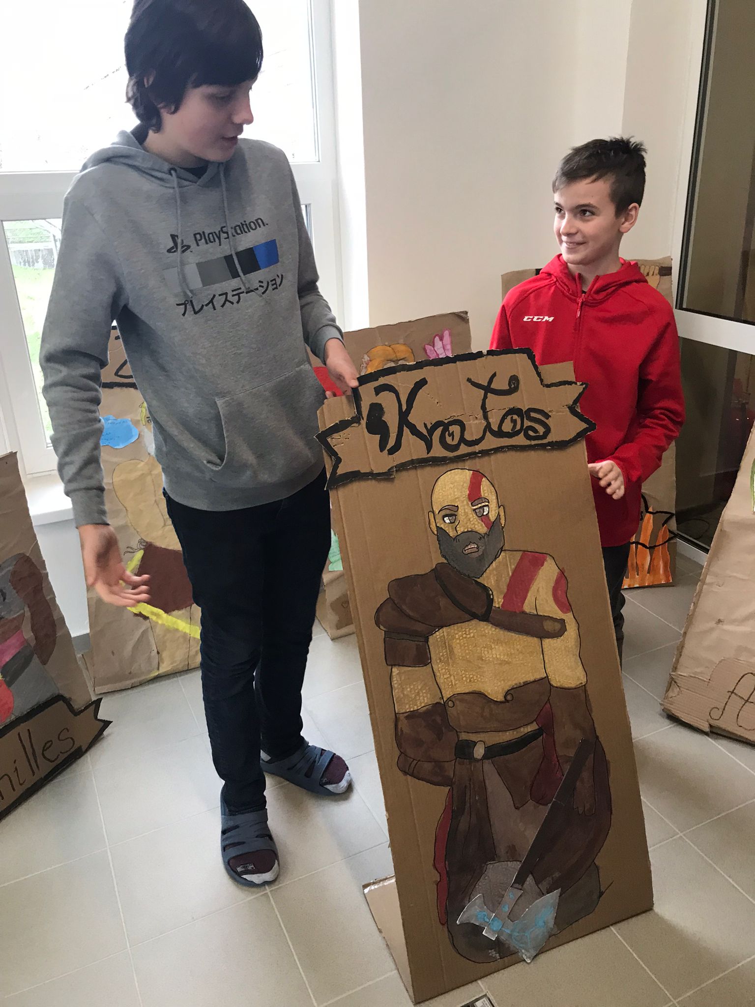 Velké poděkování patří Lee Hynkové za grafické návrhy podoby bohů, i třídní učitelce Daniele Lipenské a paní asistentce Jitce Benešové za pomoc s realizací celého projektu.