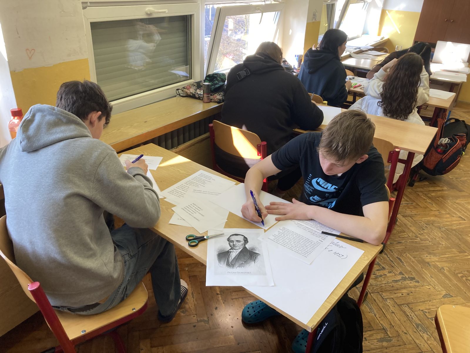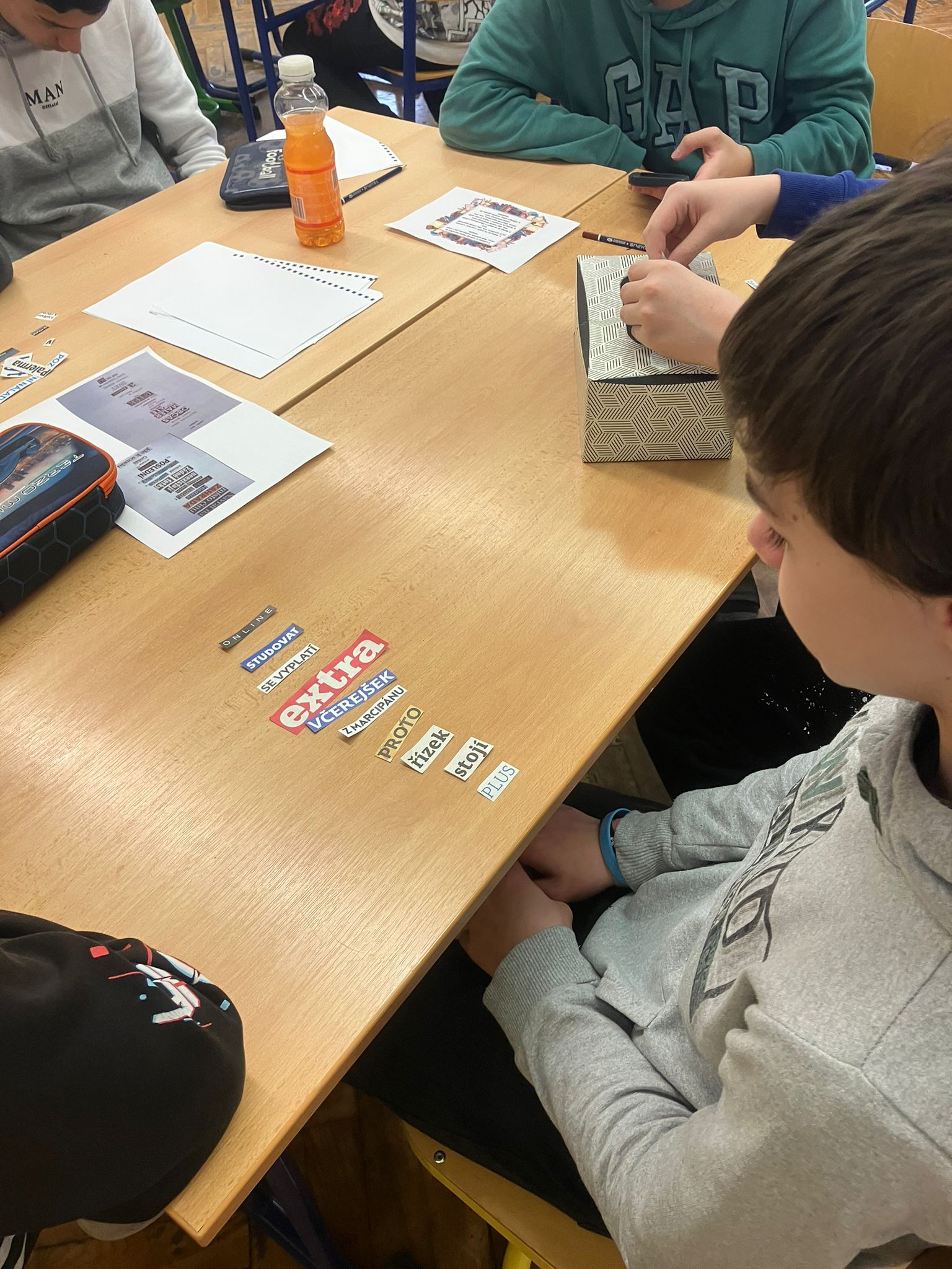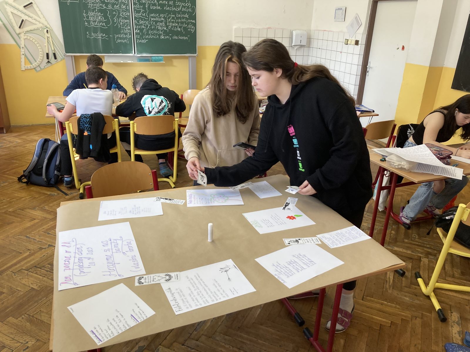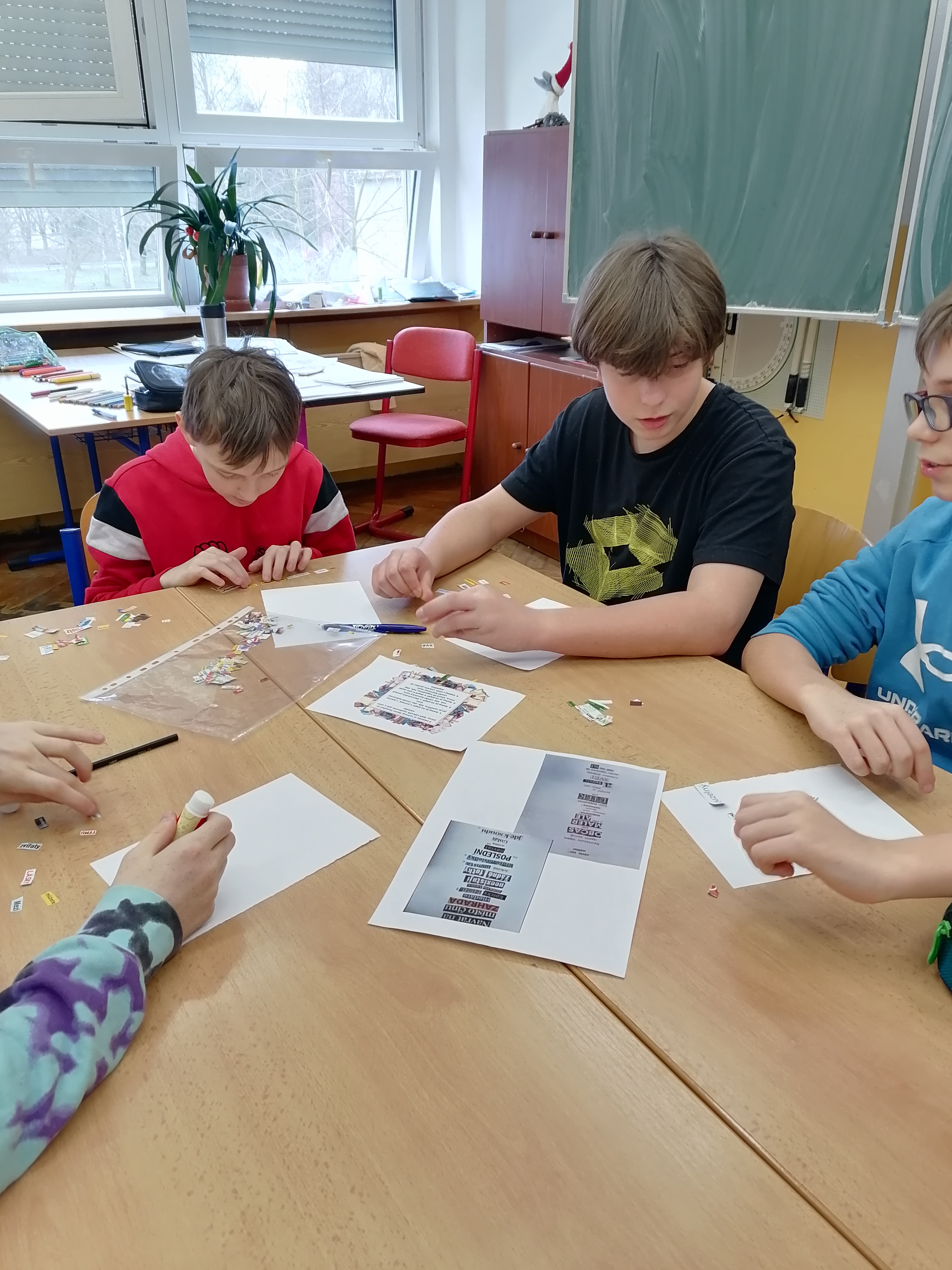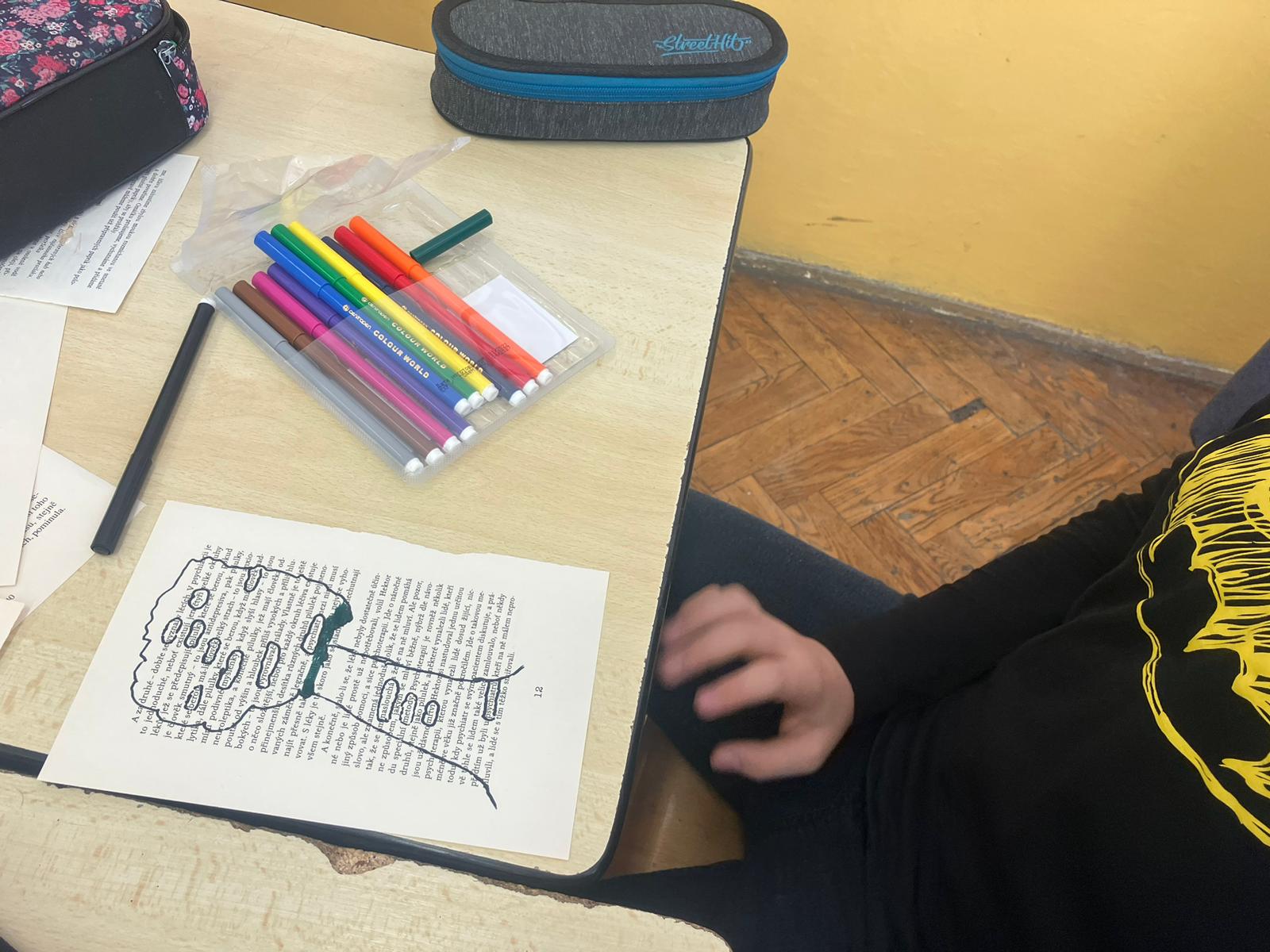 Žáci 6. a 7. tříd se pod vedením Mgr. Lucie Štěpánkové a Mgr. Jany Adéeové zaměřili na experimentální poezii, kdy si sami zkoušeli tvořit různé druhy poezie – google poetry, dada poetry, akrostich, haiku, kaligram, blackout poetry. V závěrečné části projektového dne pak vytvořili plakáty na daný druh poezie.