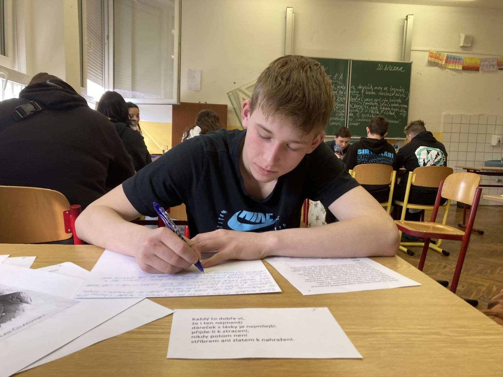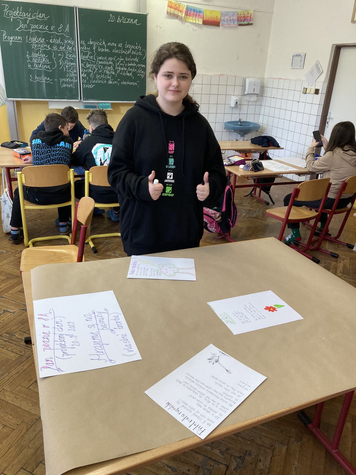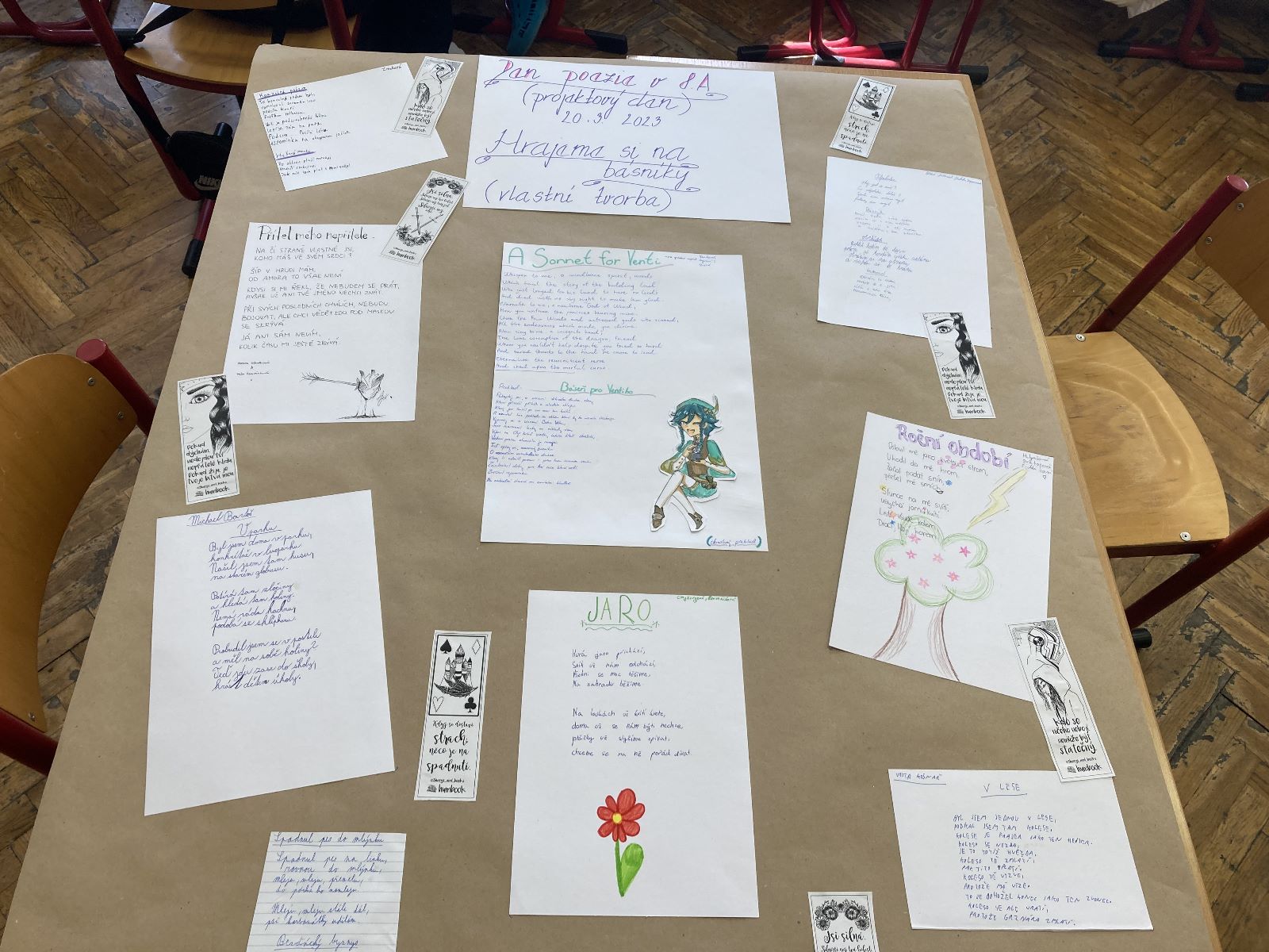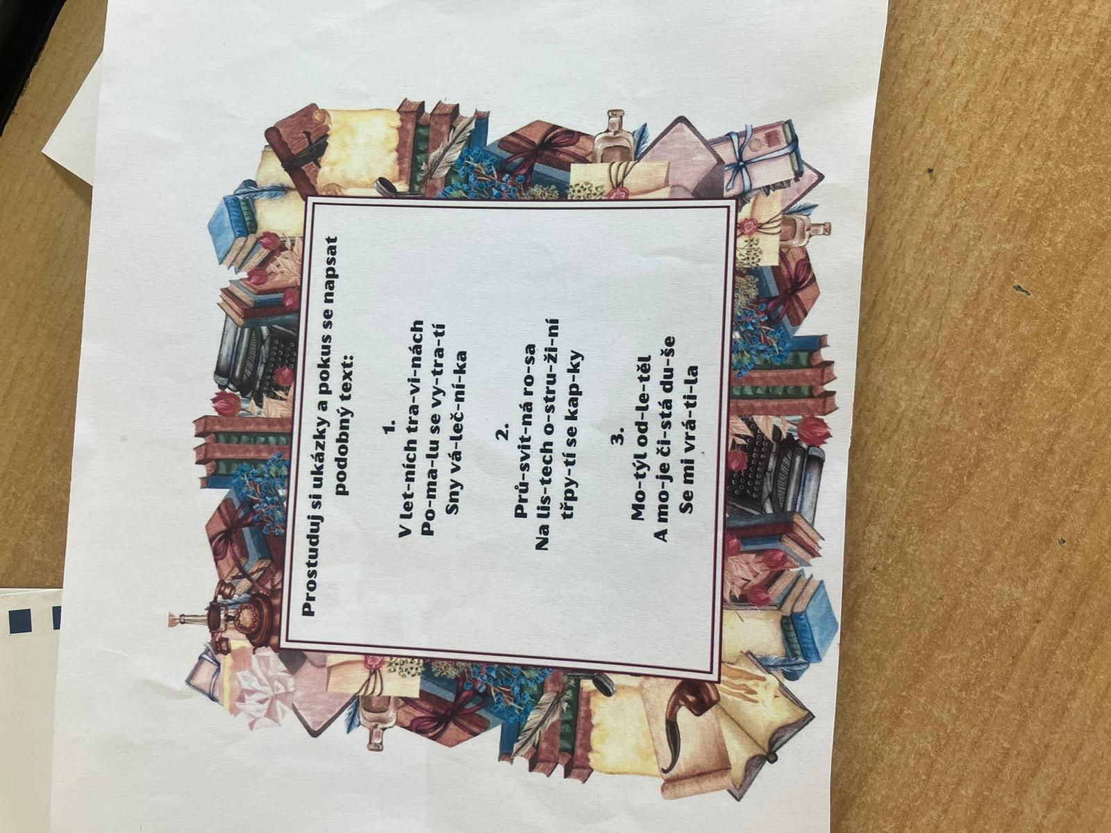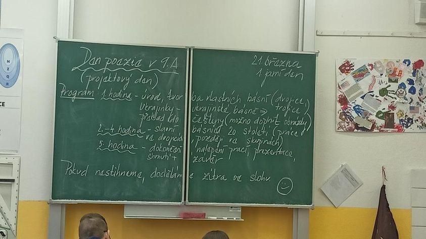 Na den 21. března připapadá Světový den poezie. Na pondělí 20. a úterý 21. 3. si tedy učitelé českého jazyka připravili pro třídy druhého stupně projektový den, který měl žákům přiblížit poezii trošku jinak, aby pro žáky nebyla takovým strašákem 😊