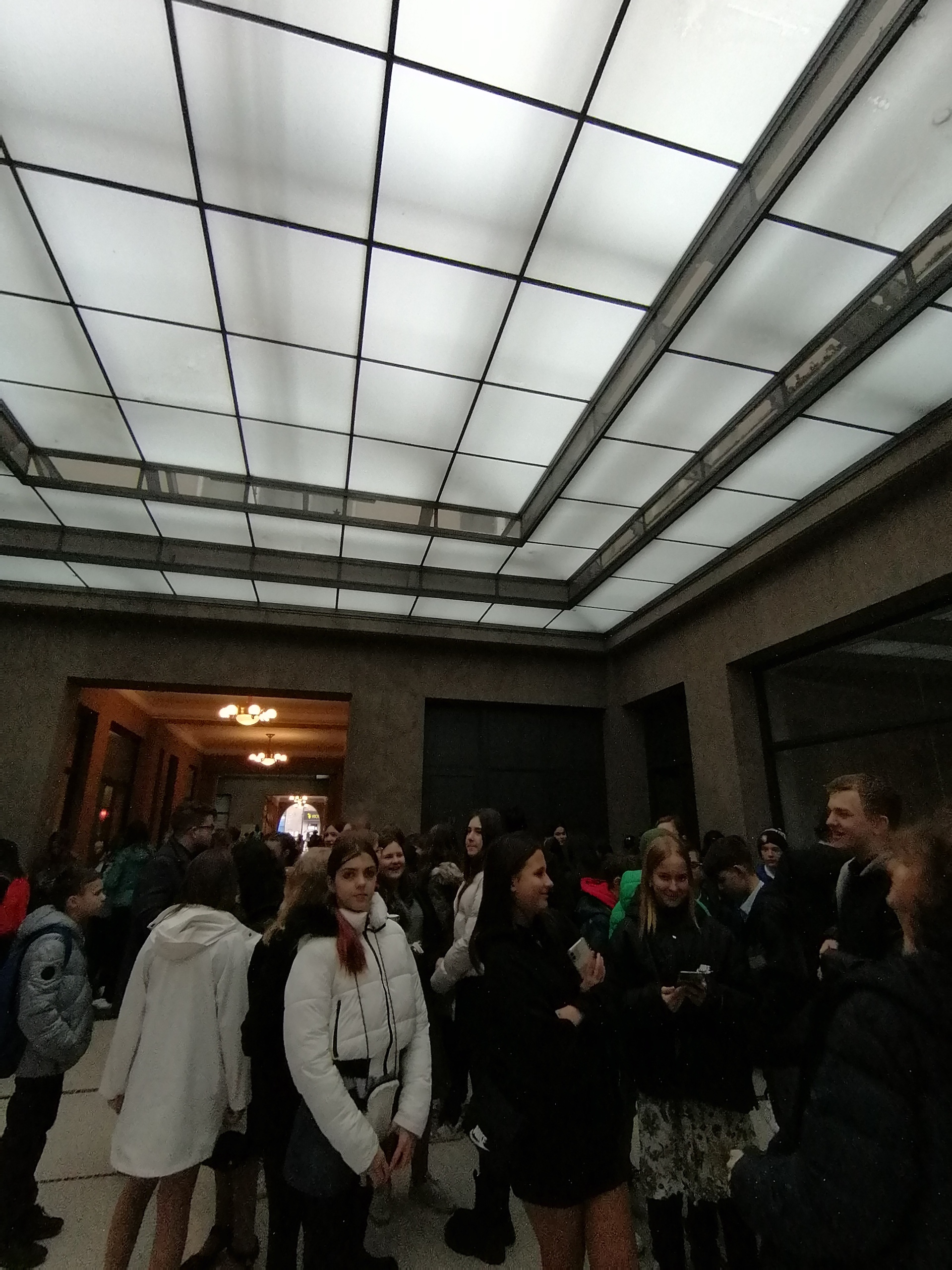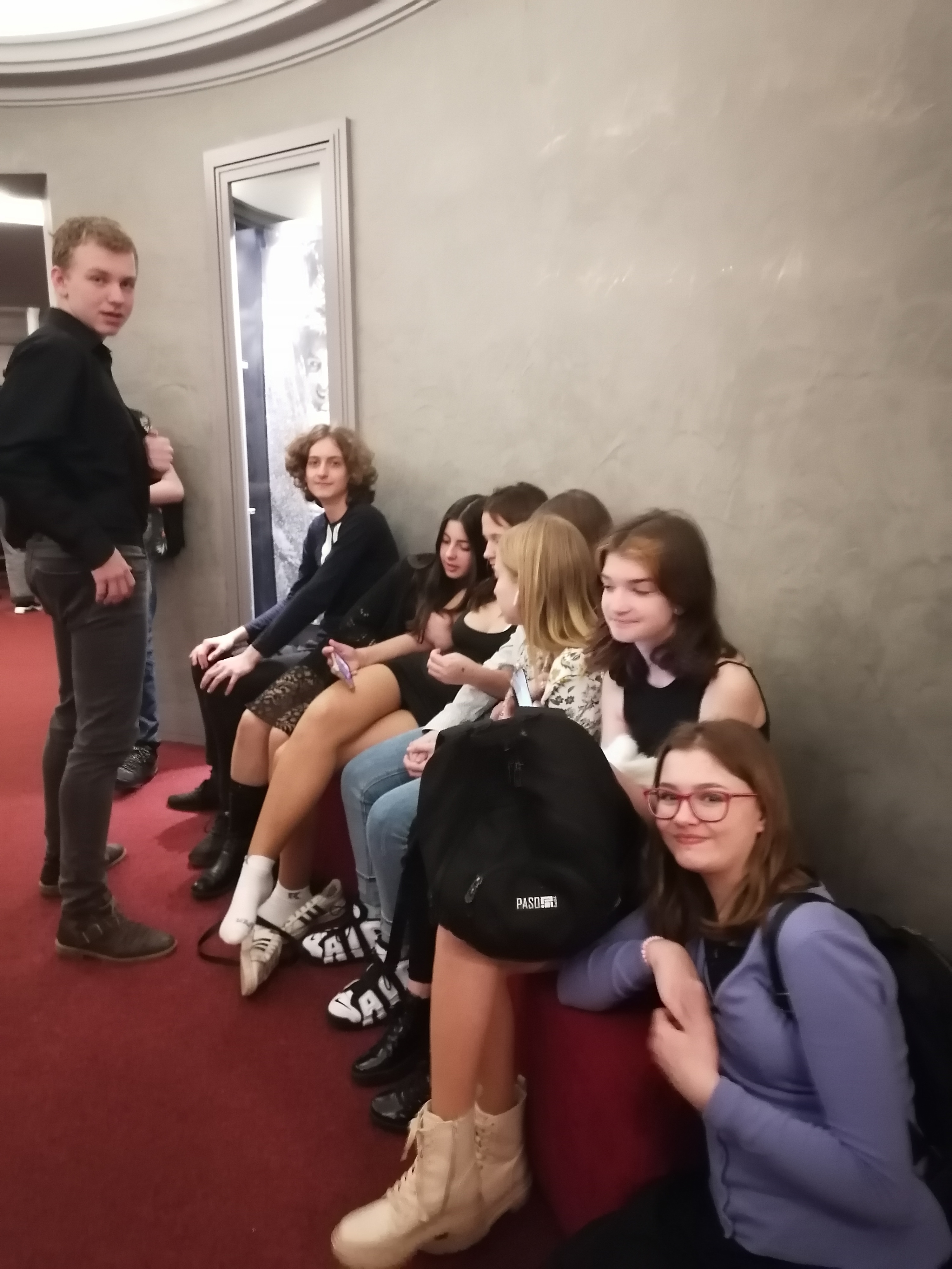 Při závěrečné děkovačce se někteří naši žáci spontánně zvedli ze sedaček a věnovali aktérům standing ovation. Plni dojmů pak ještě o představení diskutovali cestou k autobusu, a i při zpáteční cestě domů.