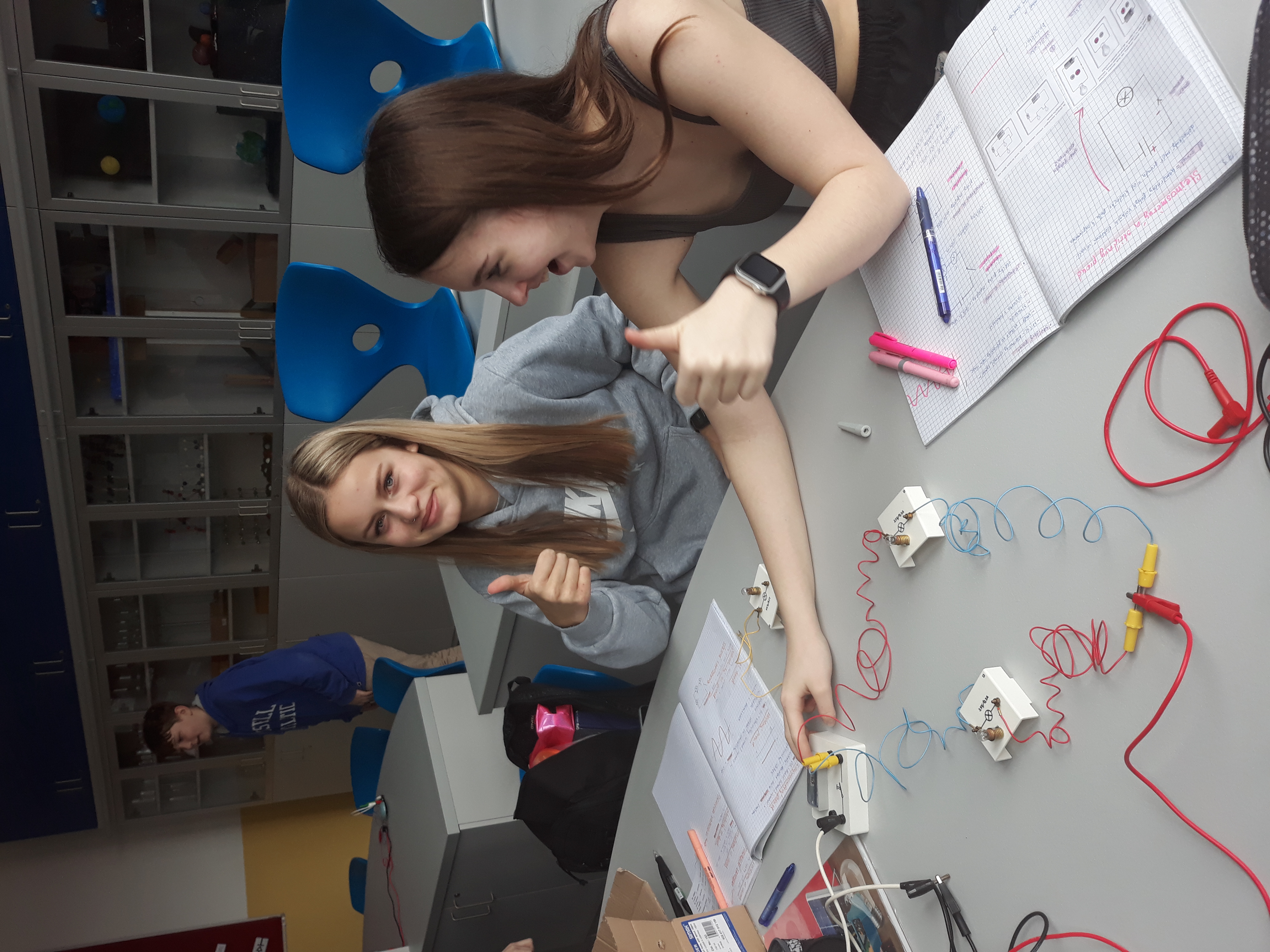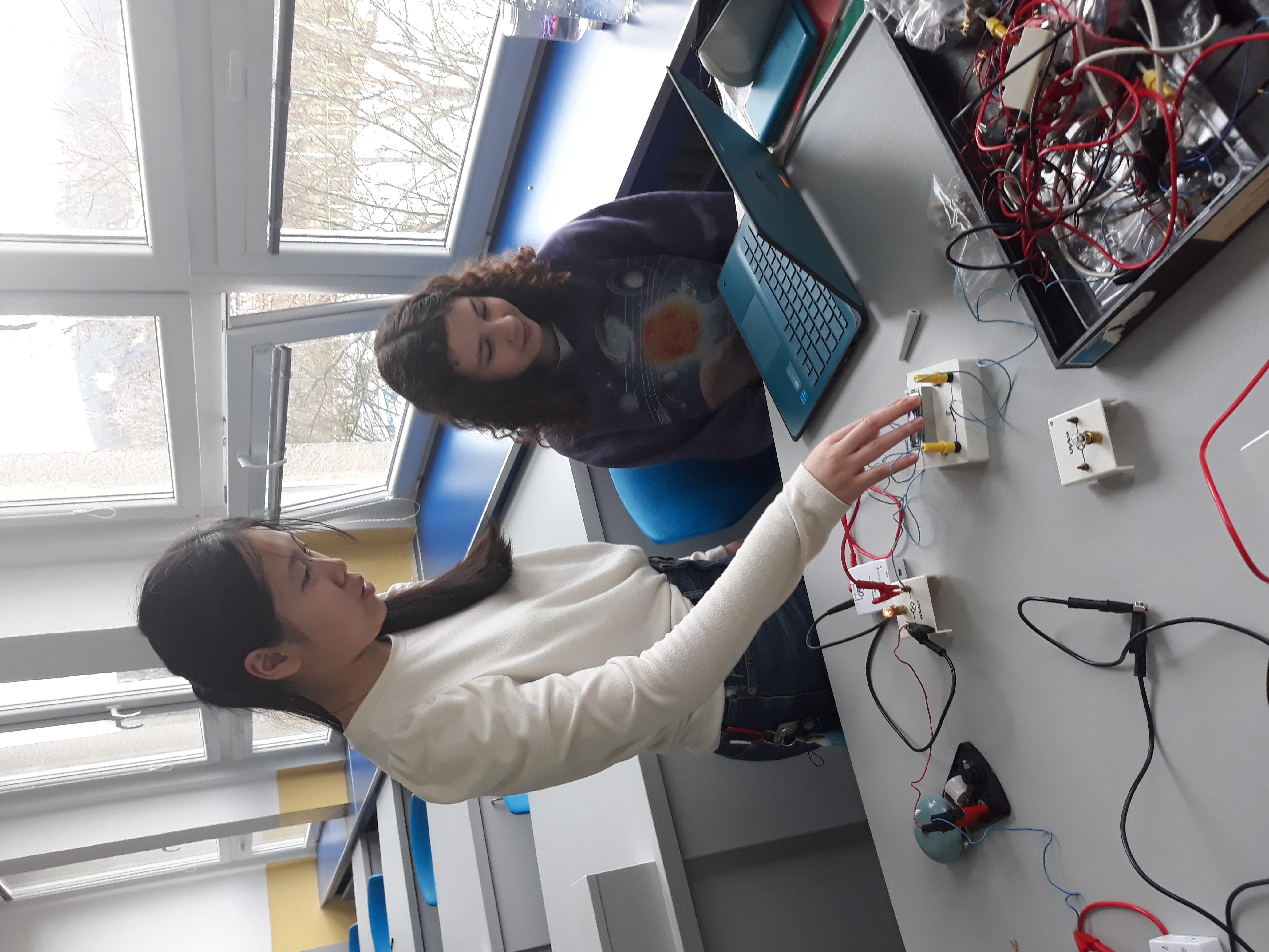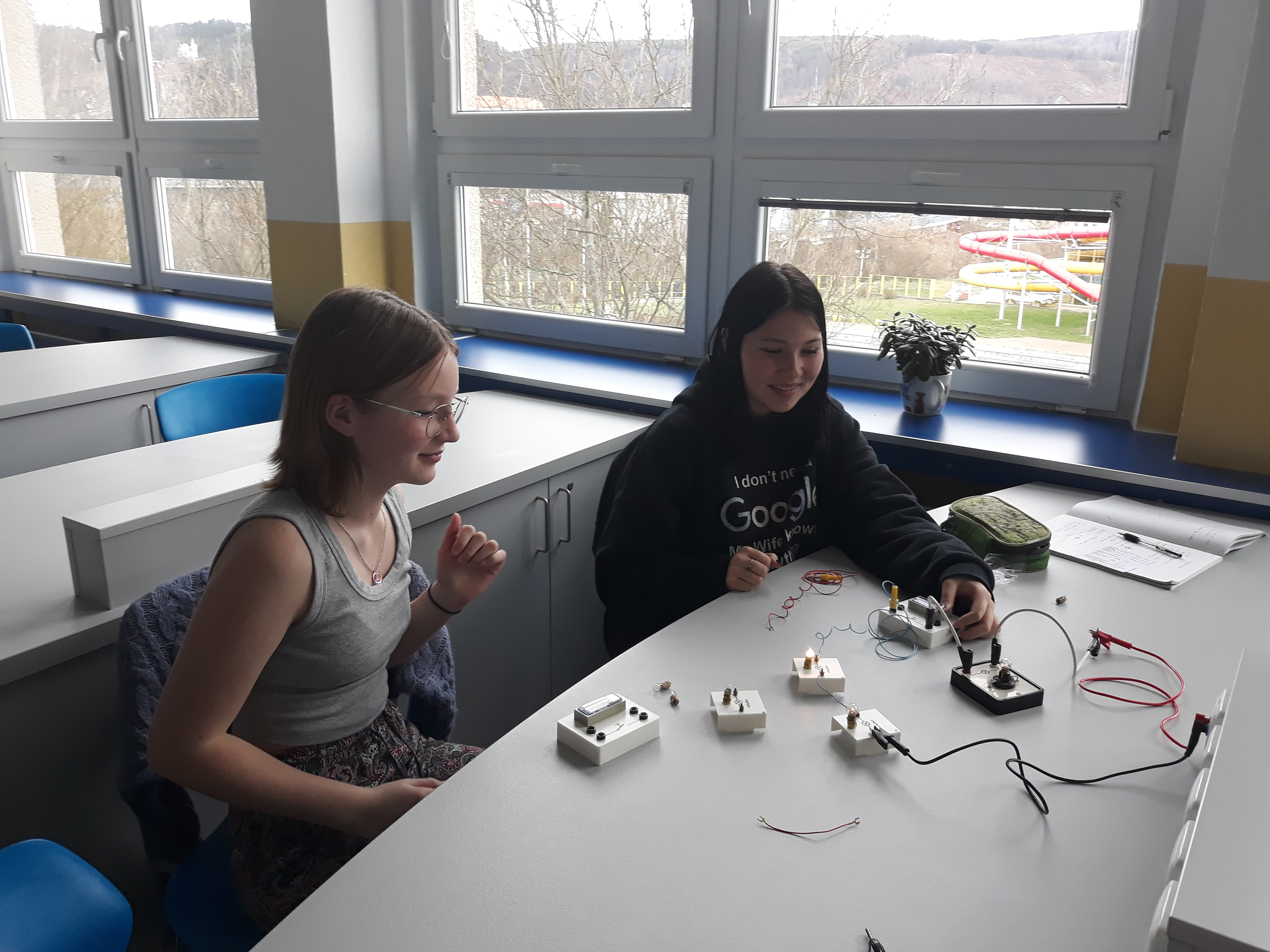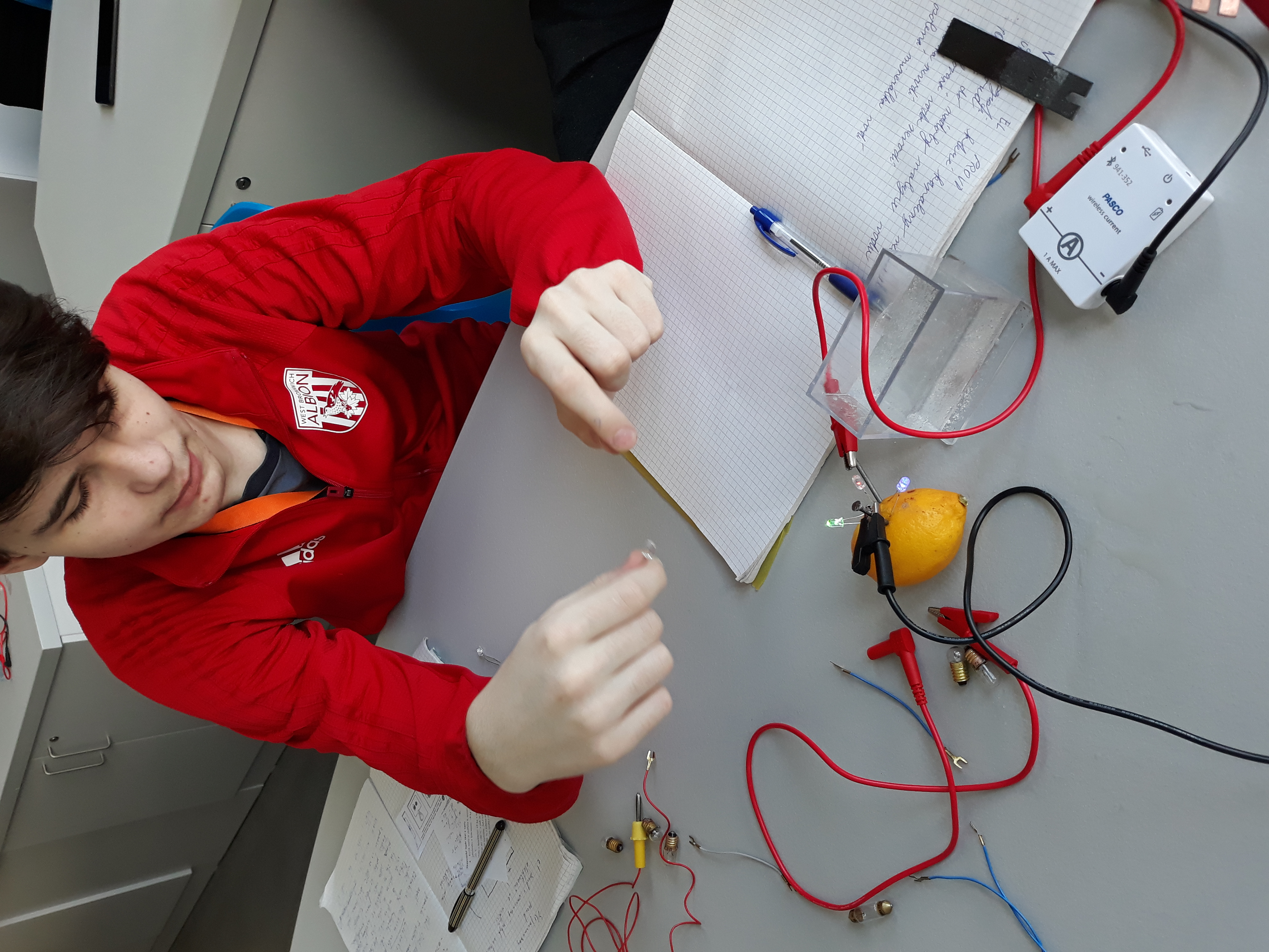 Navíc máme učebnu fyziky parádně vybavenou bezdrátovými čidly na měření elektrického proudu a napětí od firmy Pasco a k tomu notebooky s patřičným softwarem. Takže pracovat s nimi je jedna velká radost. 😊 Můžeme si krásně ukázat různé druhy zapojení a vyzkoušet je jak v počítačových simulacích na internetu, tak i v reálu.
