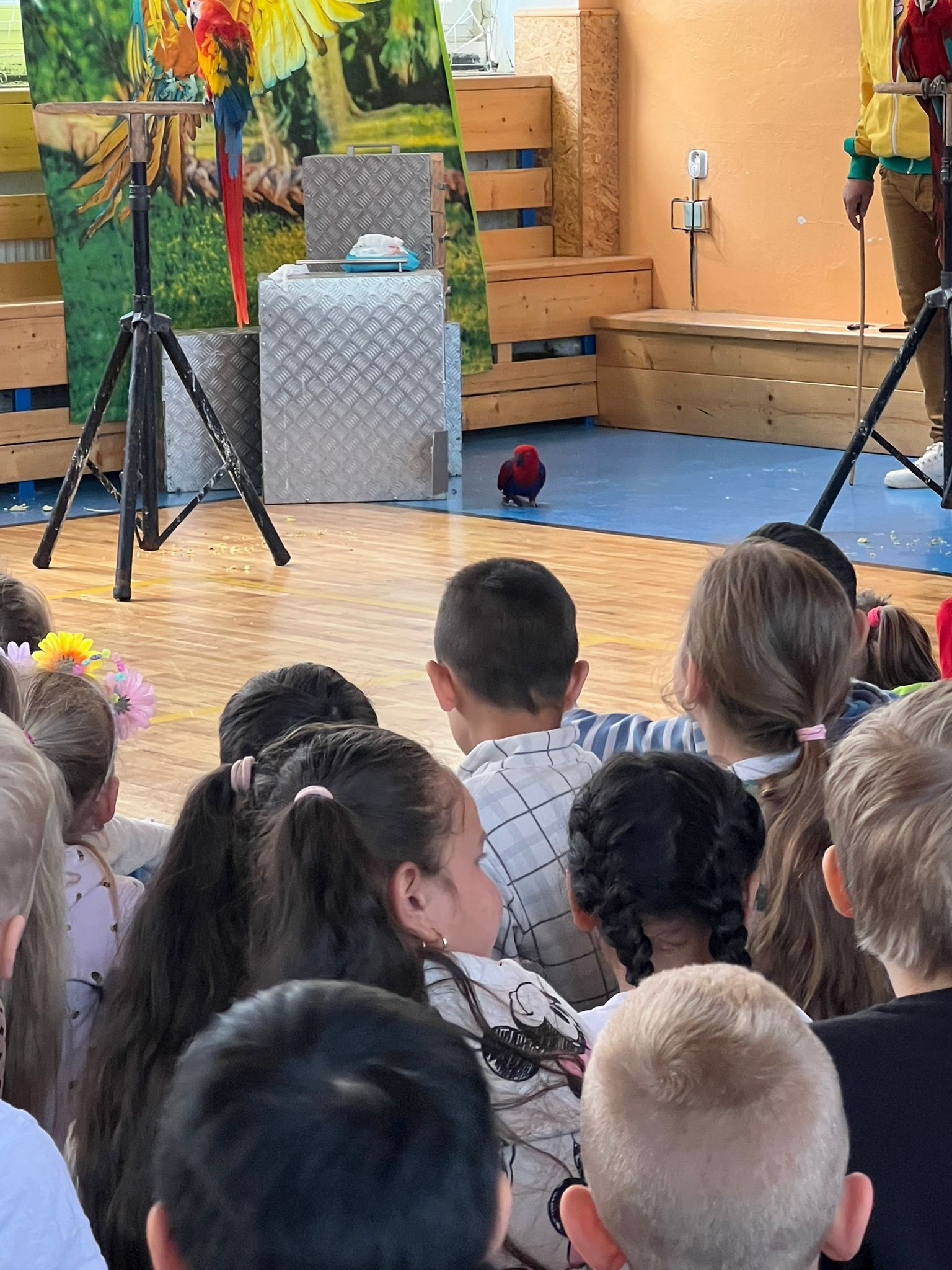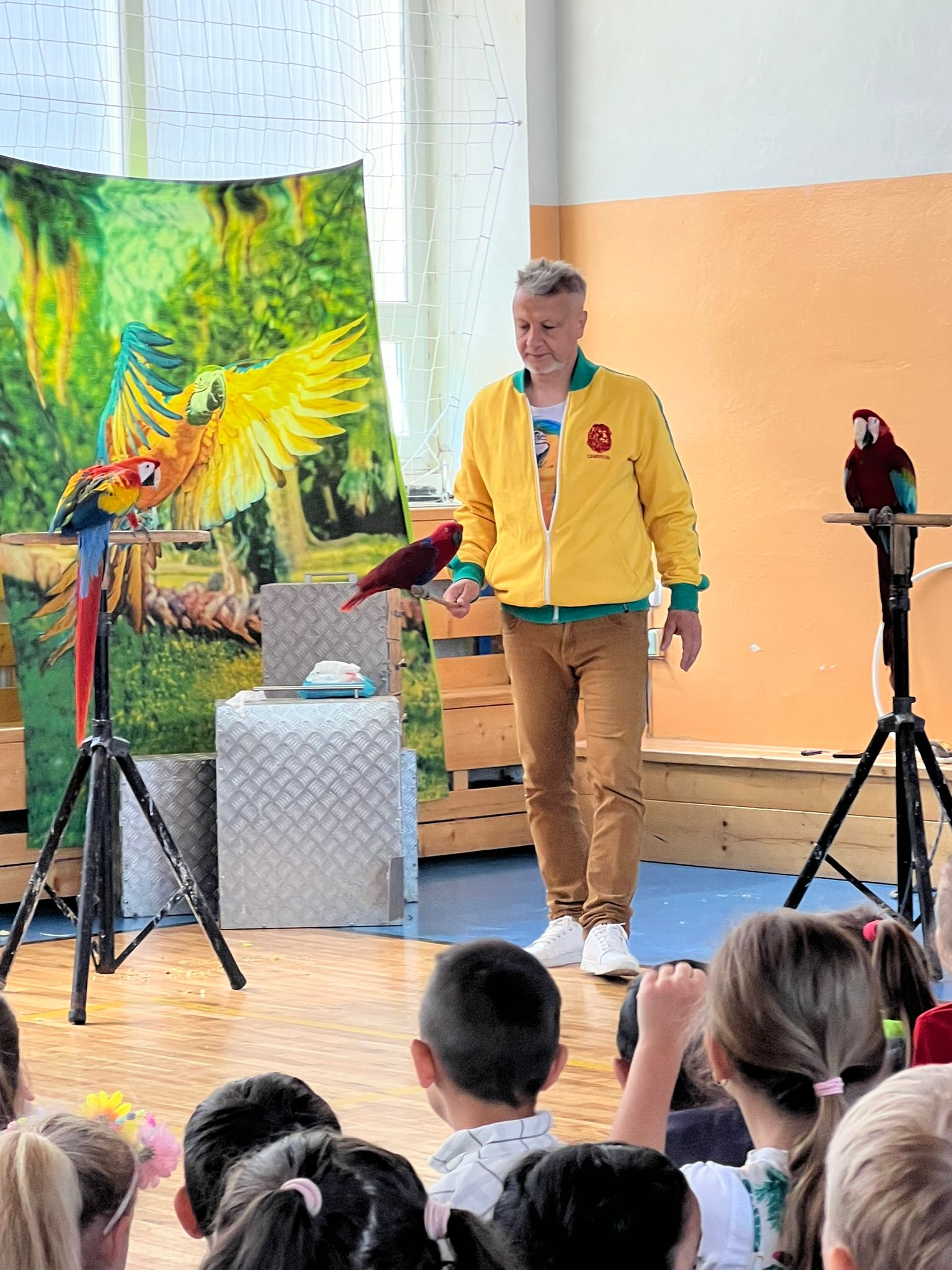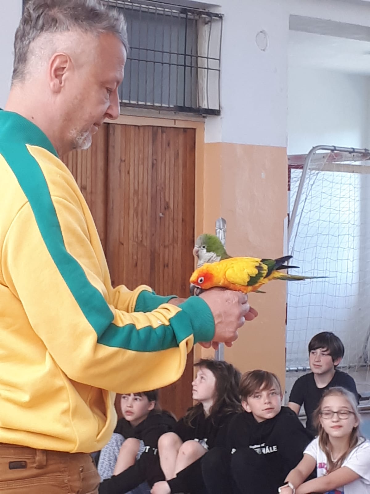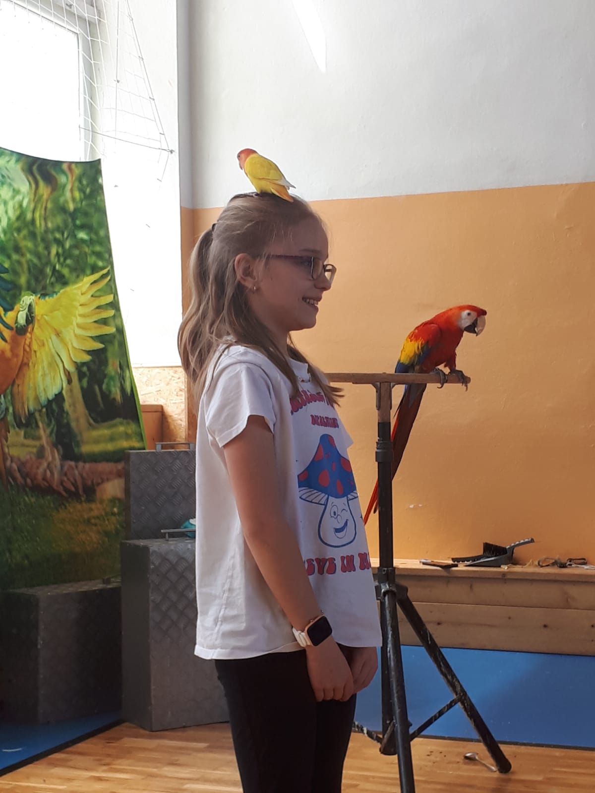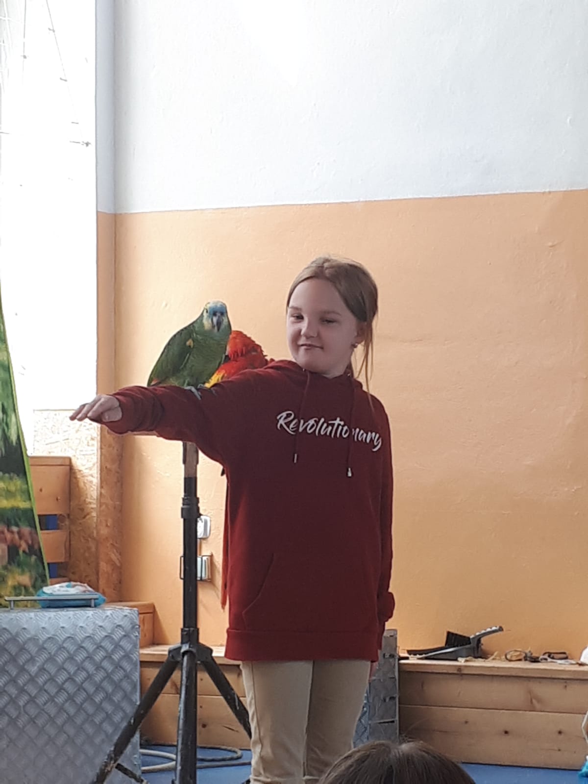 V pátek 19. května 2023 se v naší škole, pro žáky a žakyně 1. stupně, uskutečnilo představení "Papoušci z celého světa". Celým programem děti provázel pan Radek Jareš a se svým kolegou. Dětem přivezli na ukázku celkem 14 papoušků. Papoušci dětem předvedli létání, válení sudů, houpačku, šplh, namlouvání, hádku a spoustu dalších kousků. Těšíme se zase někdy příště 🖐